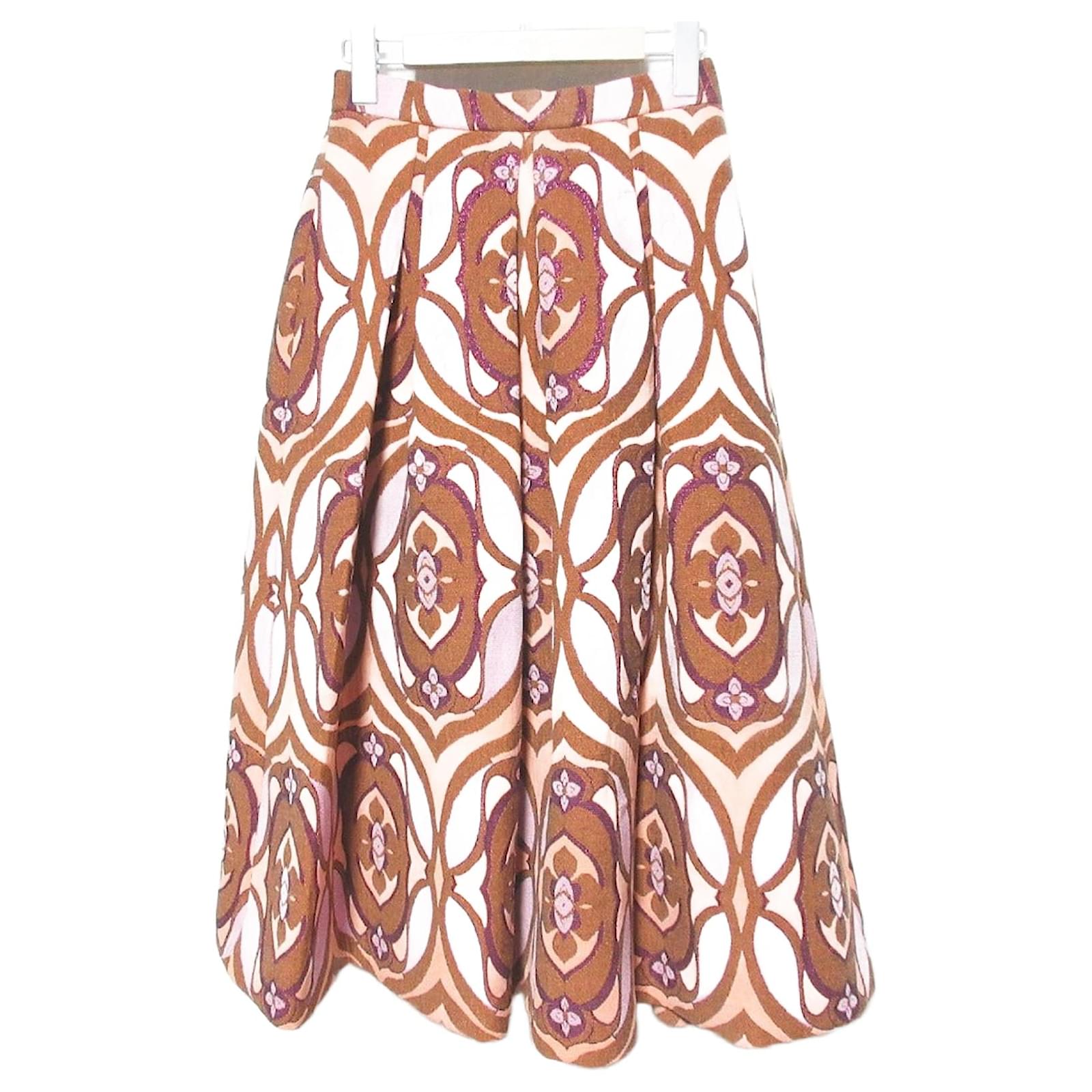 Elevate your wardrobe with the GRACE CONTINENTAL Lame Jacquard Skirt. This exquisite piece blends sophisticated design with everyday wearability, making it perfect for both special occasions and adding a touch of elegance to your daily ensemble. The shimmering lame jacquard fabric catches the light beautifully, creating a subtle yet captivating visual texture. Designed with a flattering silhouette, this skirt promises a comfortable fit that allows for ease of movement. Dress it up with heels and a blouse for a night out, or pair it with a cozy sweater and flats for a chic, relaxed look. A versatile and timeless addition to any style-conscious woman's closet. - General information -Brand : OtherItem name : GRACE CONTINENTAL Lame Jacquard SkirtModel number : 0123121032 - Design -Type : SkirtsMaterial : OthersColor : OrangeGender : Female- Size -Size : Waist : 62Length : 79Color : Orange- Inventory -Serial Number : -SKU : 120250003438072A0025948092- Included Items -Accessories : -*Before purchasing, please refer to the images of the accessories included with the item.- Condition -Condition : Pristine ConditionRank : Used A Unused. Storefront display.Condition Notice : Before purchasing, please refer to the images for the exact condition of the item.