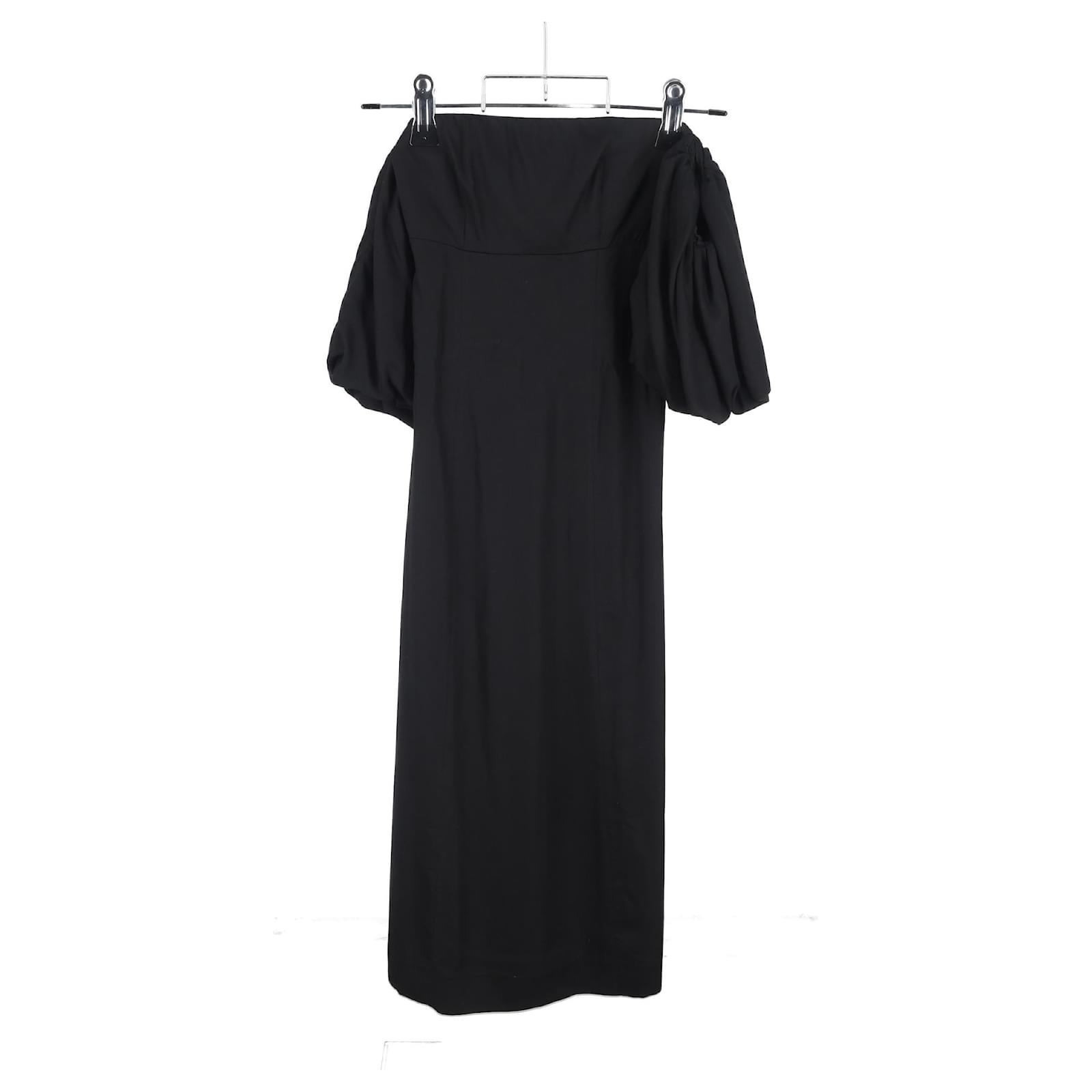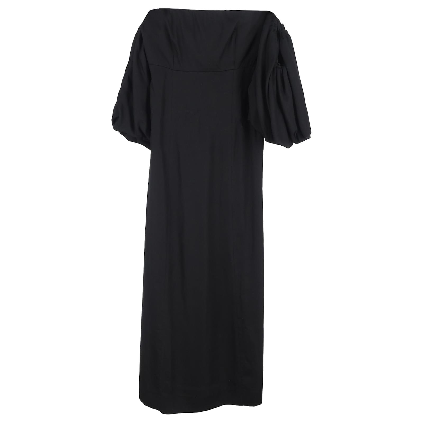 Autre Marque Mother of Pearl Off Shoulder Midi Dress in Black Polyester