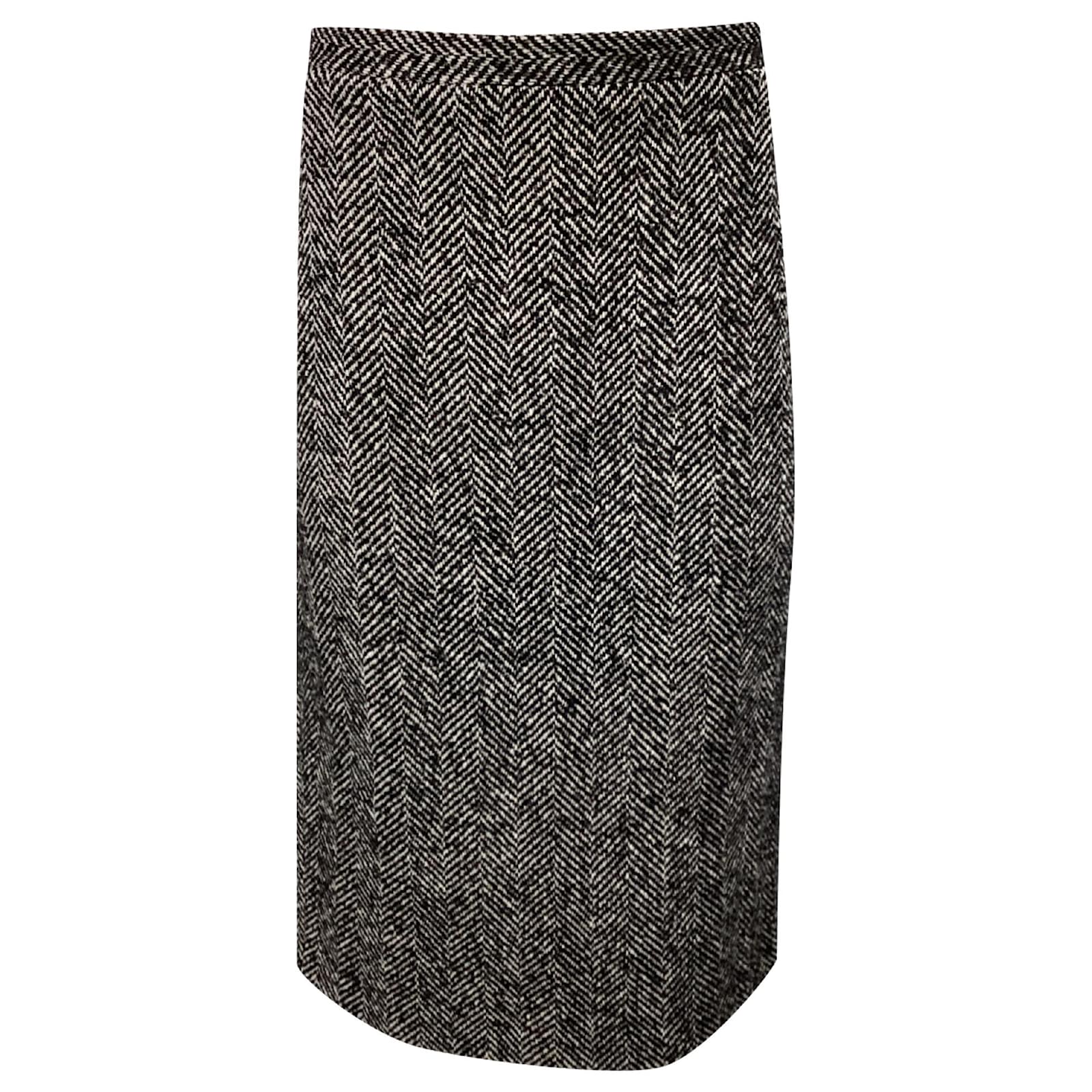 Autre Marque Nº 21 Herringbone Skirt in Black Virgin Wool