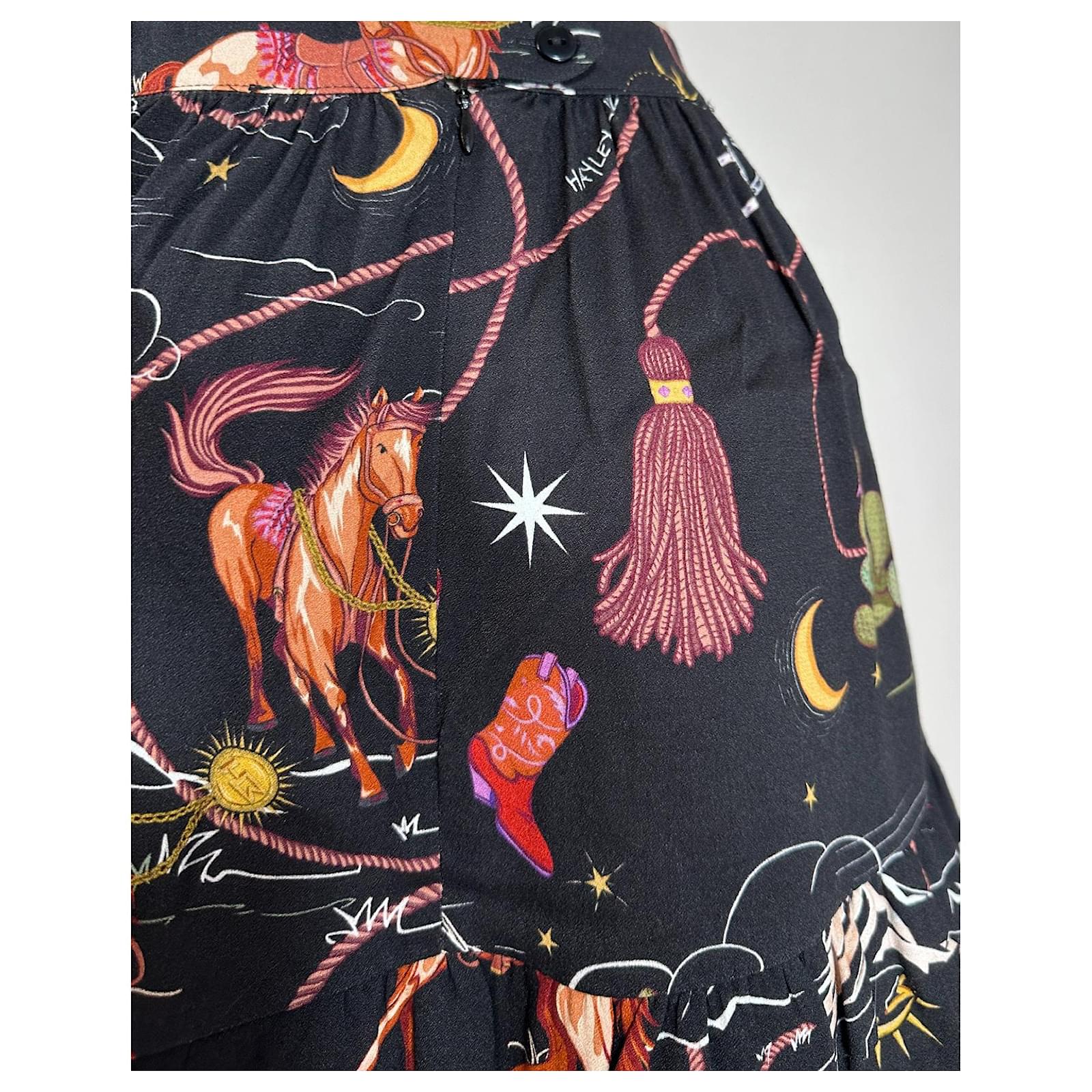 Hayley Menzies Sundance Midi Horse Frill Skirt Size S Waist 36 cm. Length 48 cm. 58% Viscose, 42% Rayon New with tags