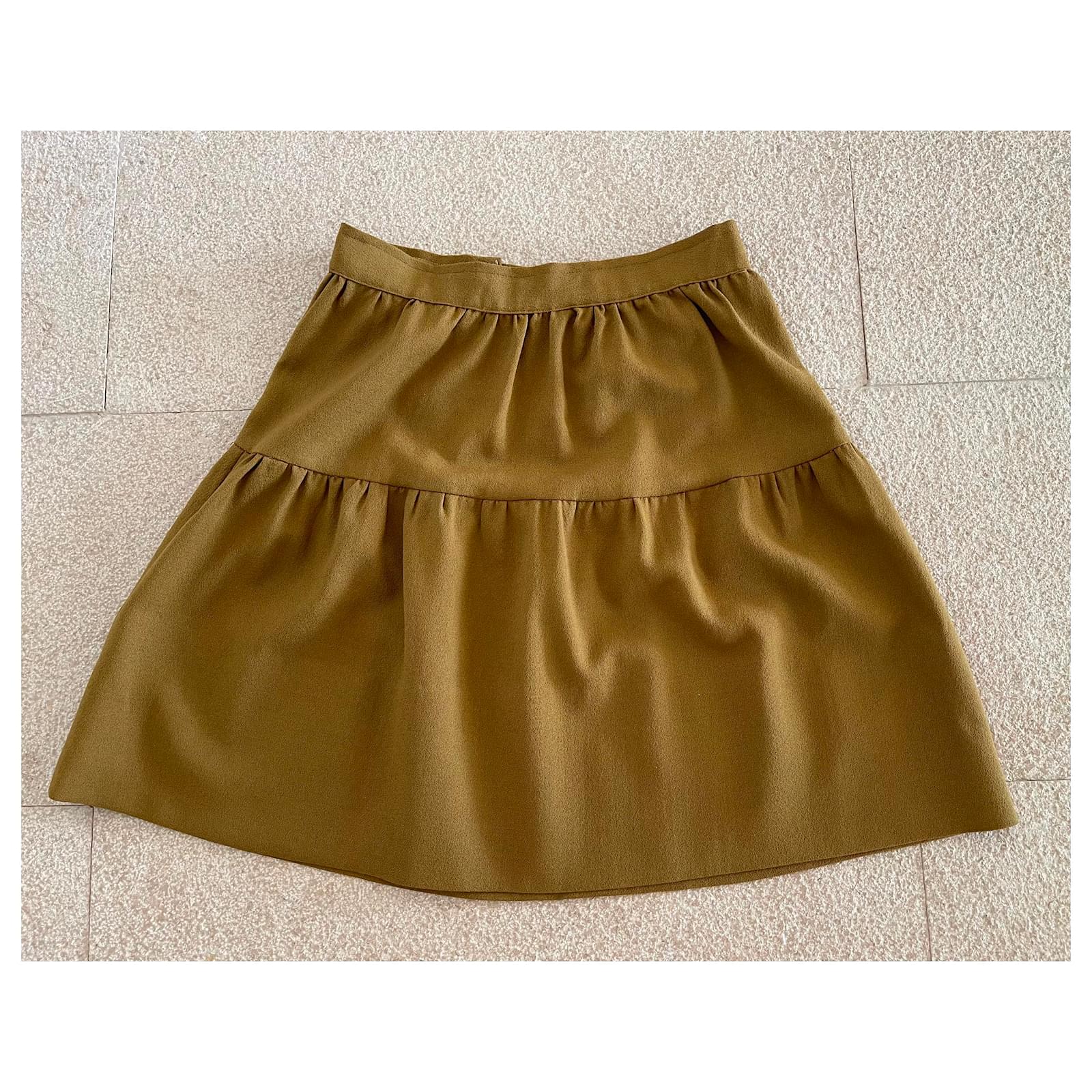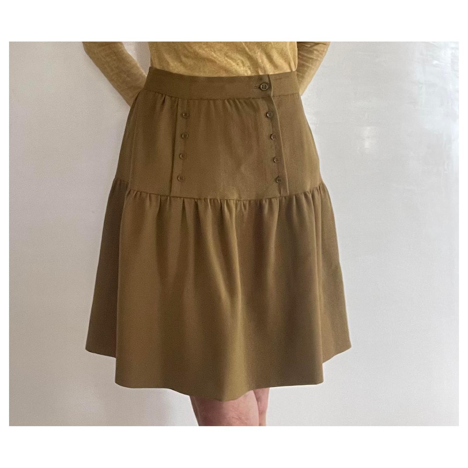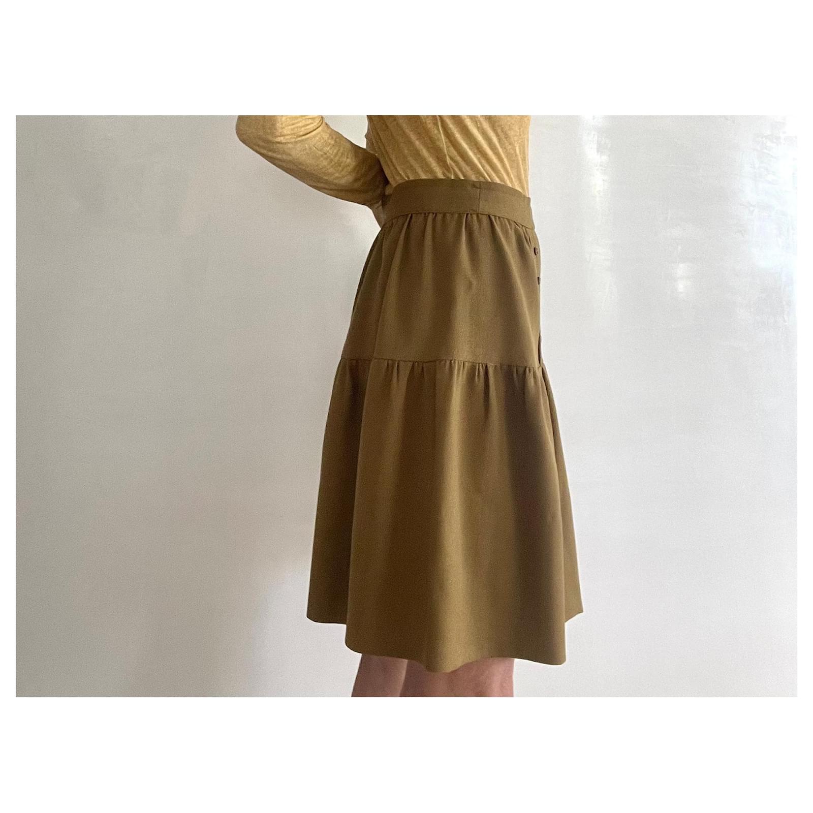 Kaki wool crepe skirt with a bridge T. 34-36 unique piece