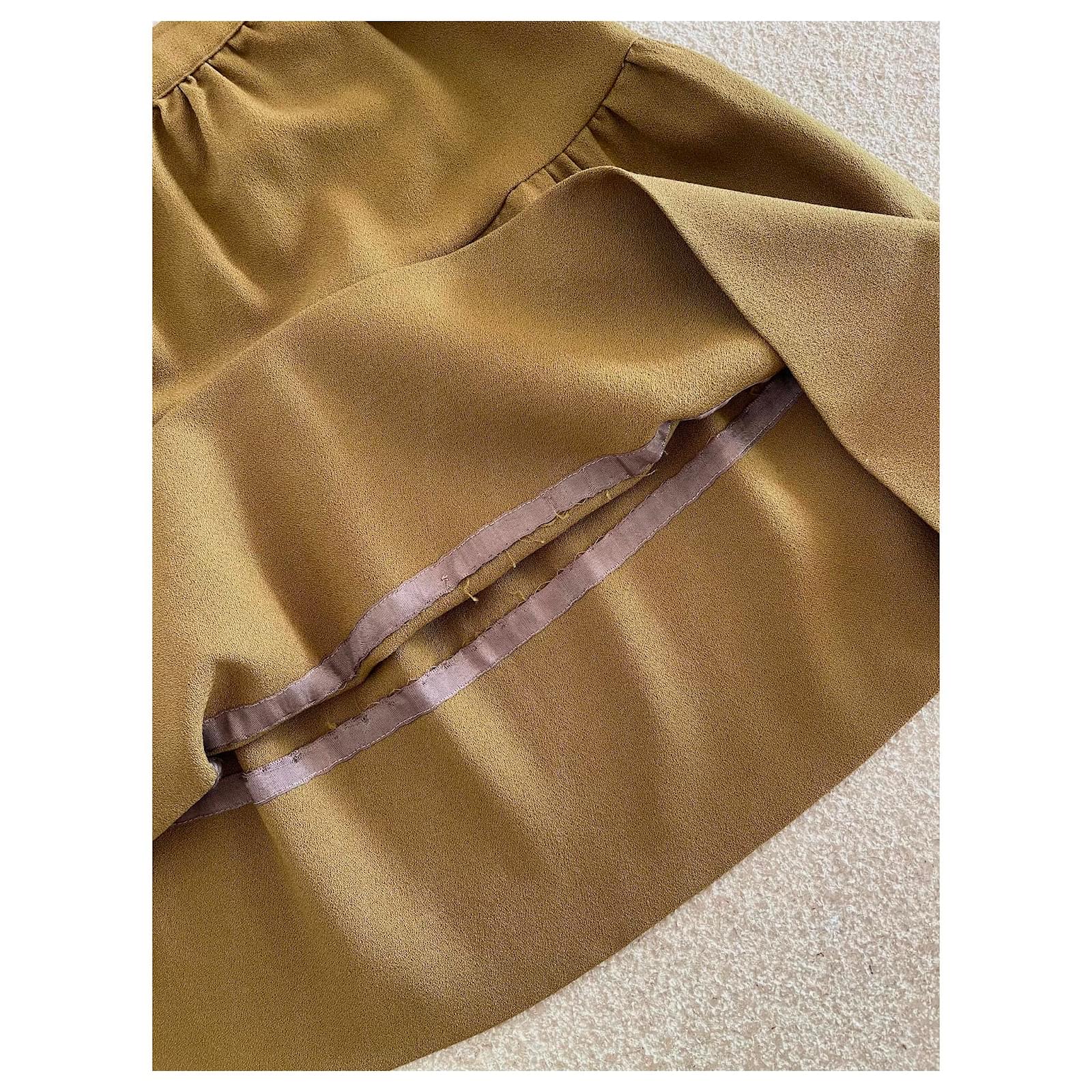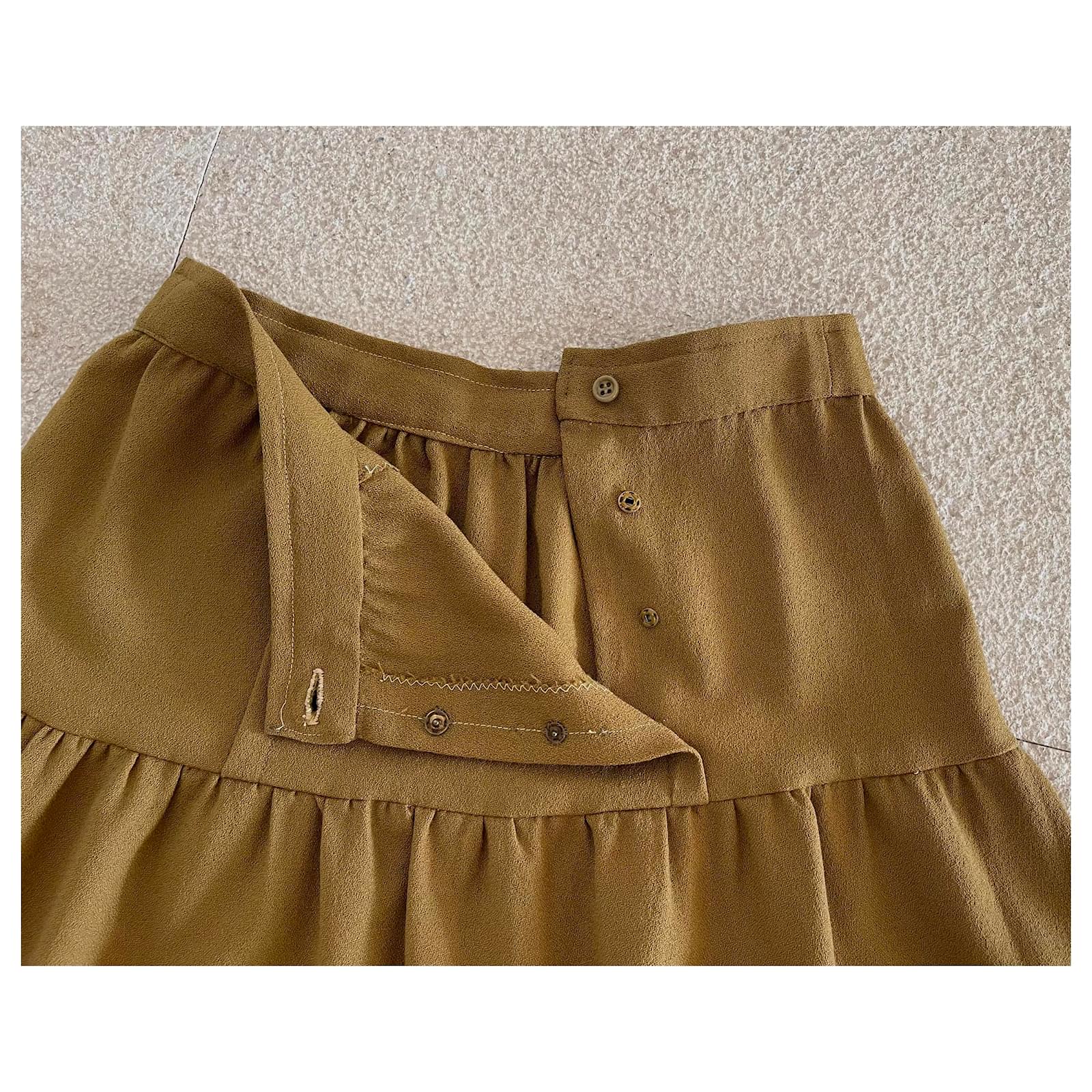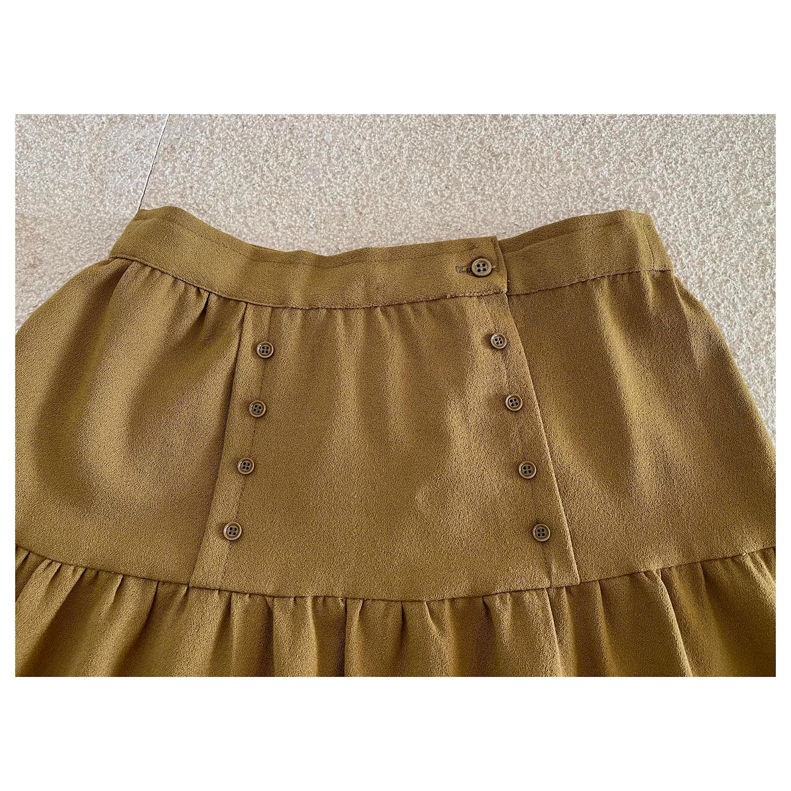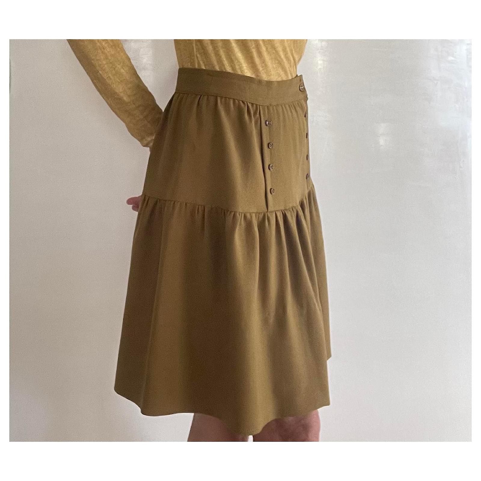 Kaki wool crepe skirt with a bridge T. 34-36 unique piece