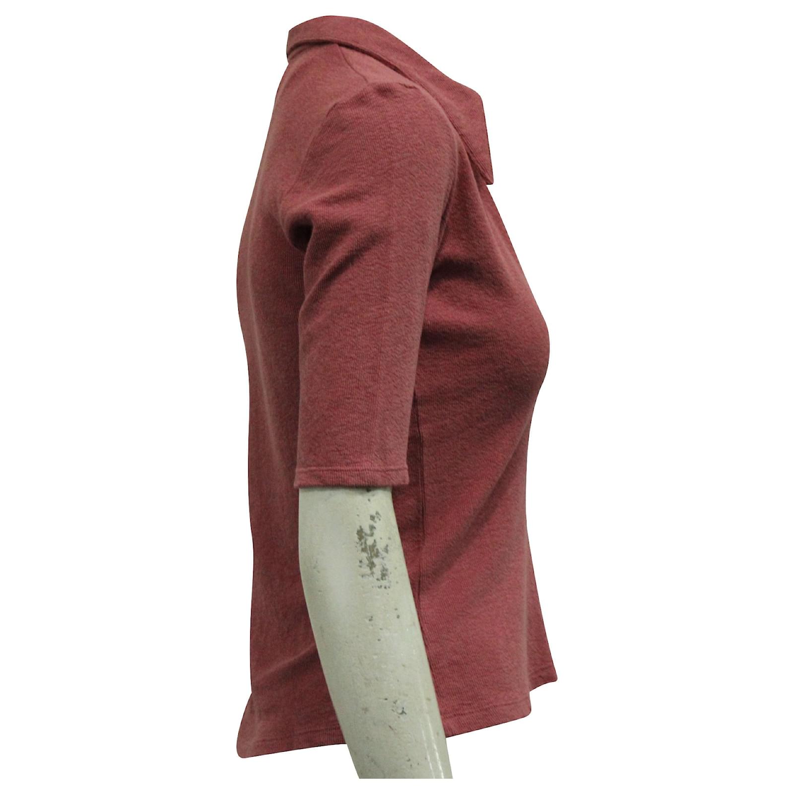 Autre Marque Albus Lumen Point Collar Polo Shirt in Red Linen