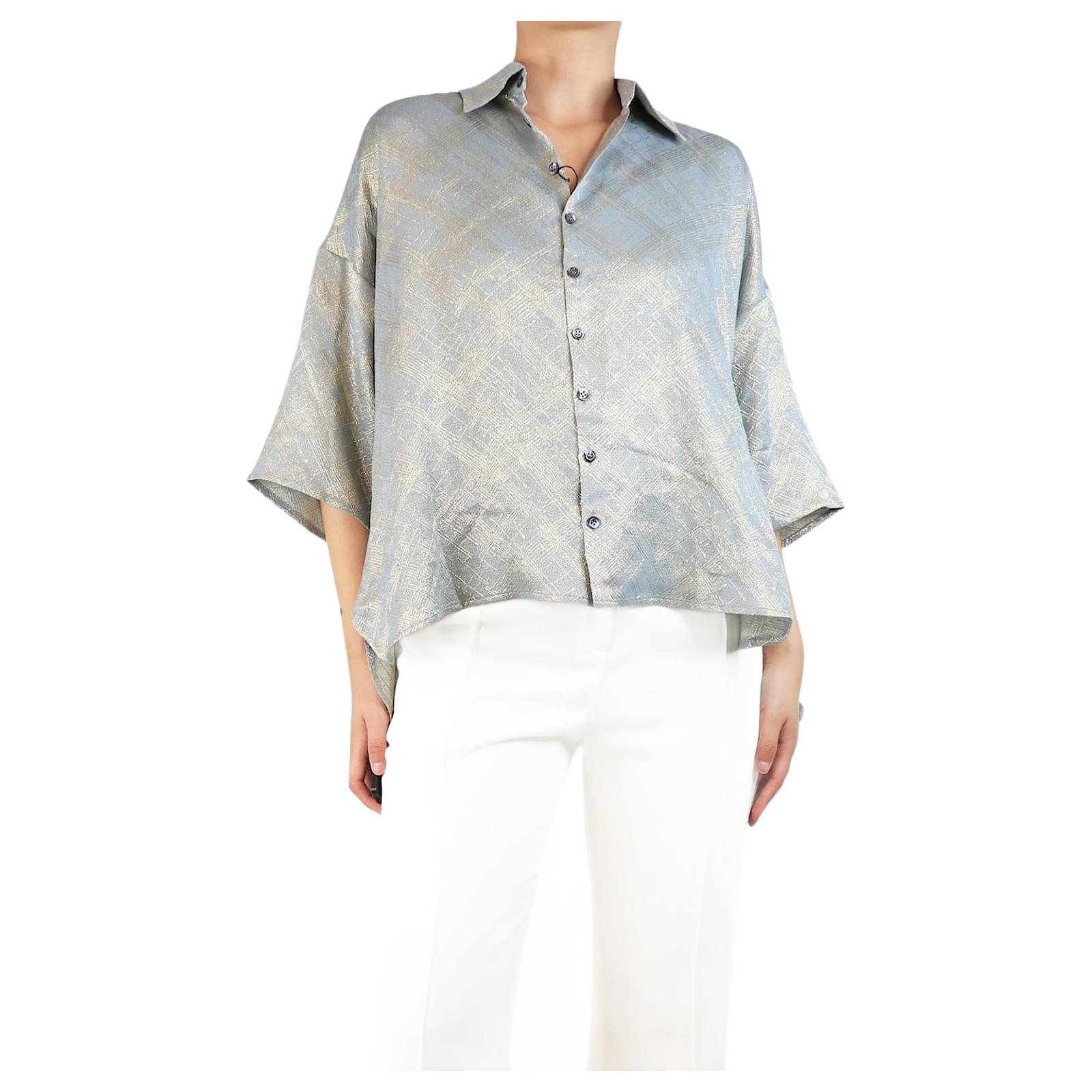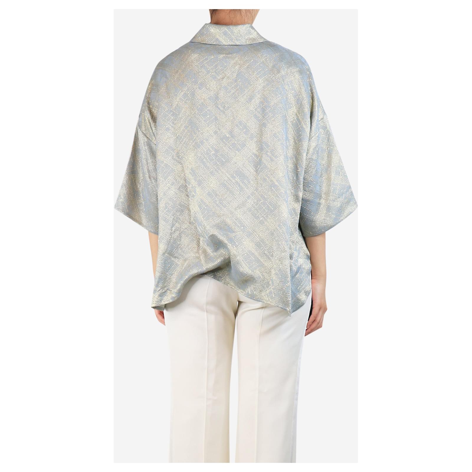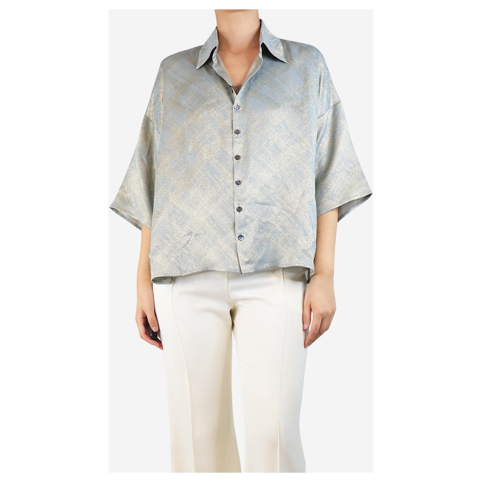 Autre Marque Blue and gold paint-splash effect lurex shirt - size UK 10