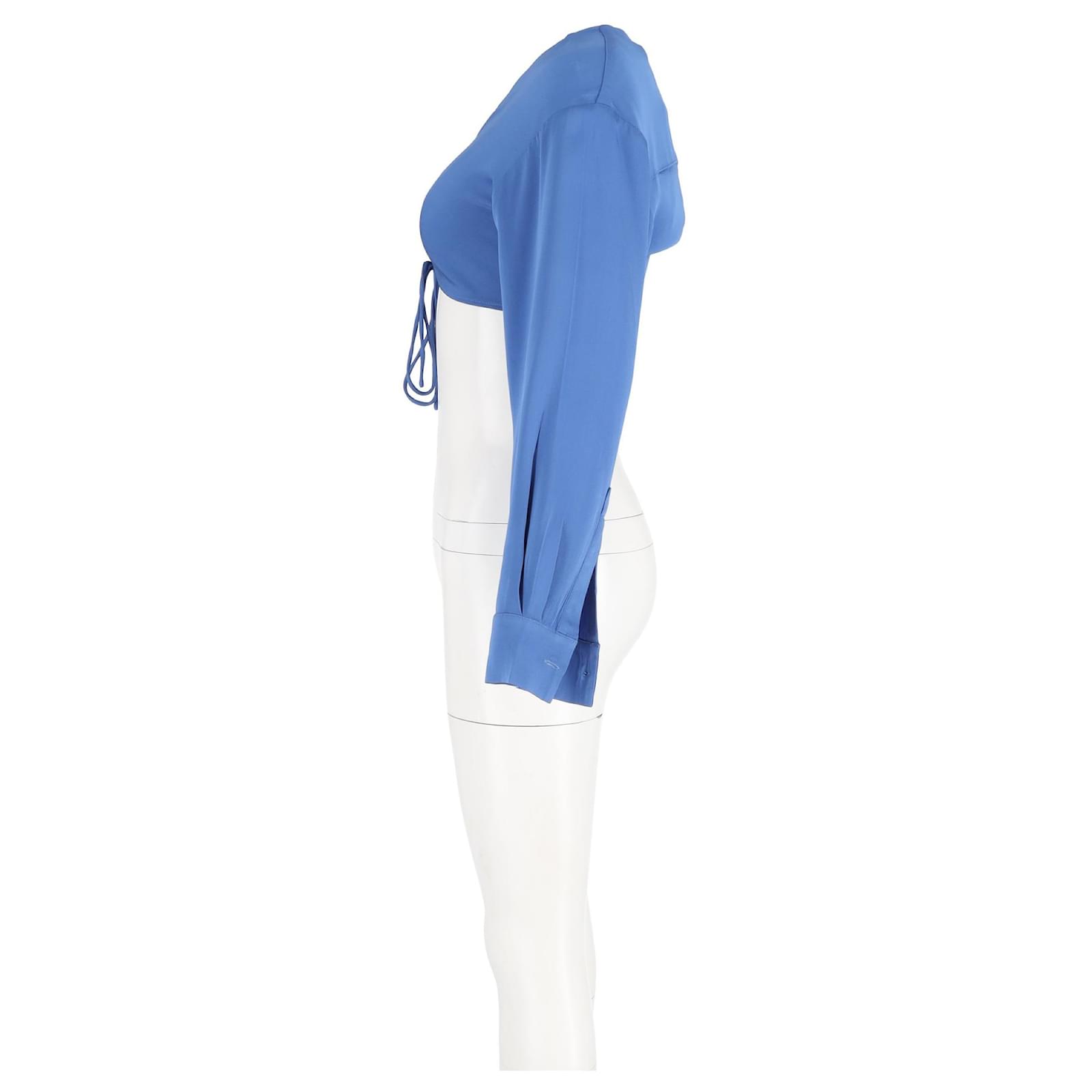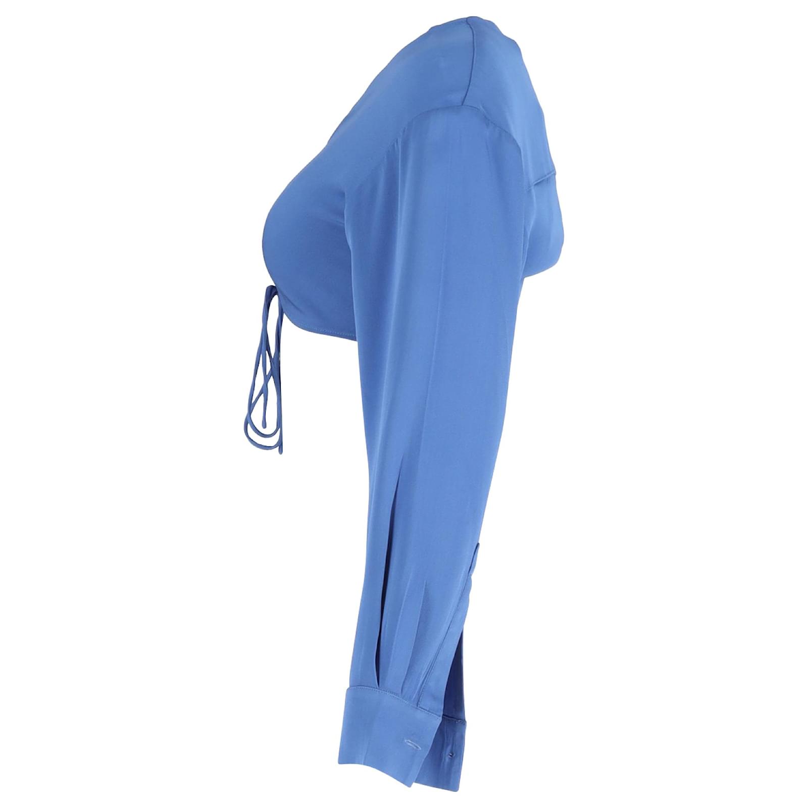 Autre Marque Christopher Esber Long Sleeve Cropped Top in Blue Polyester