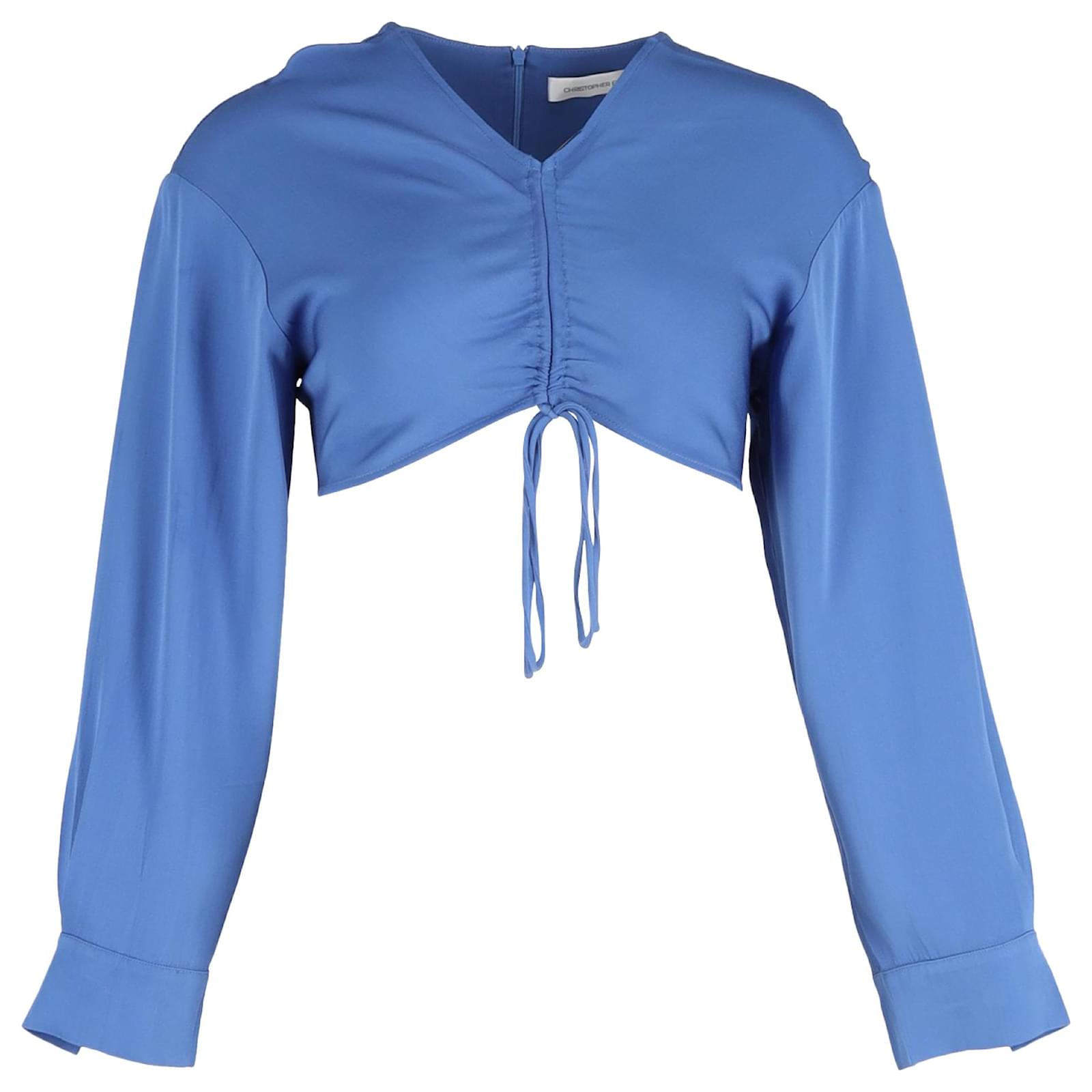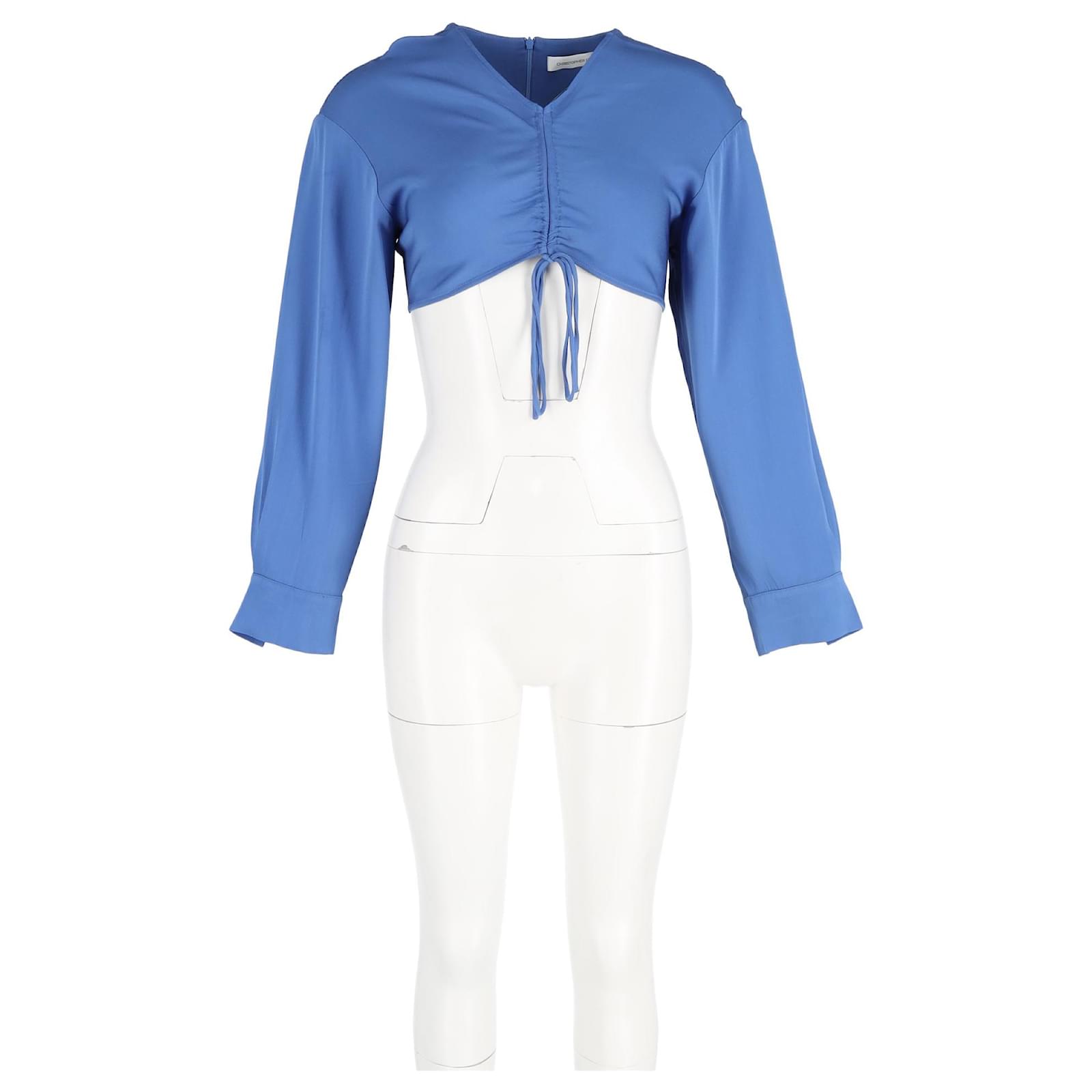 Christopher Esber Long Sleeve Cropped Top in Blue Polyester