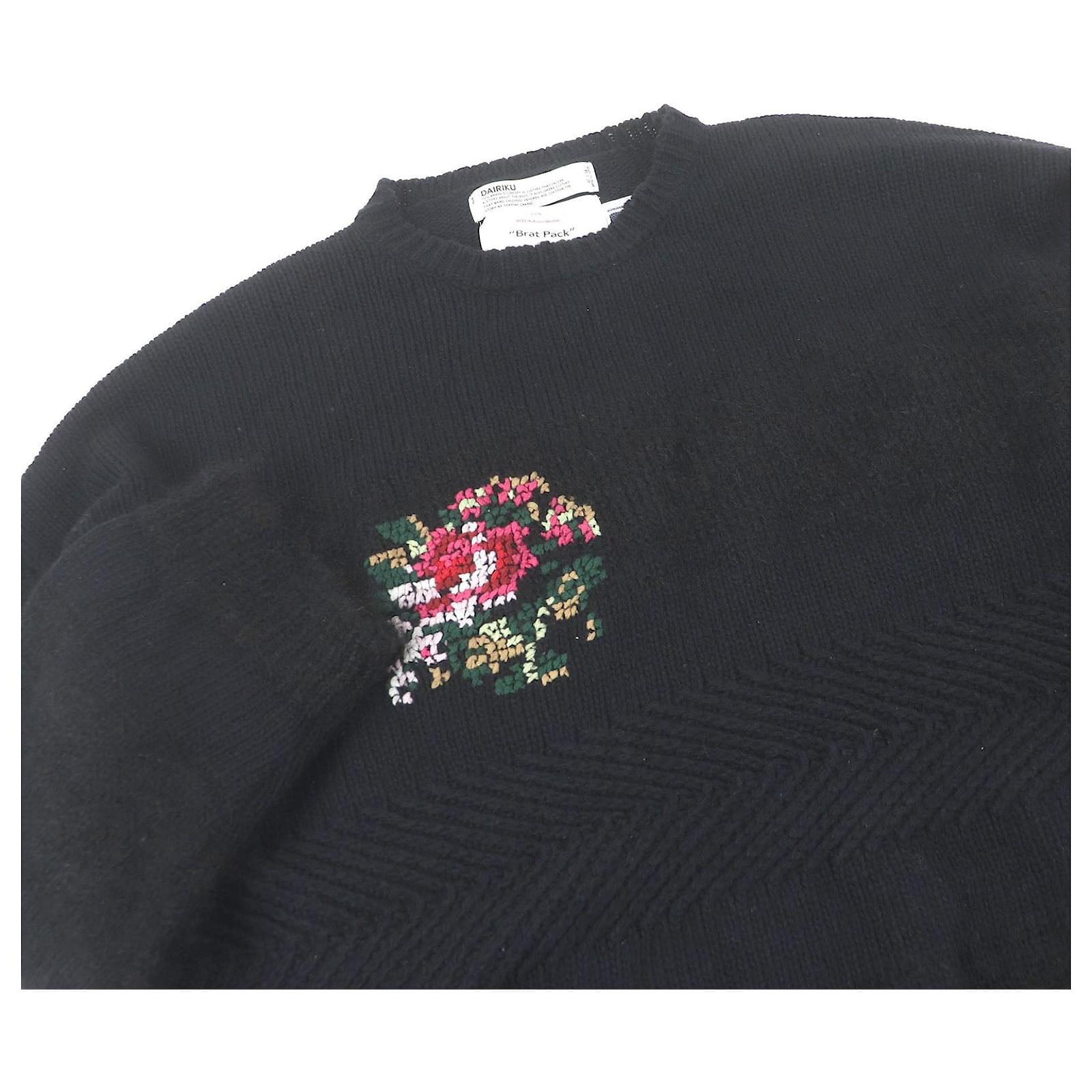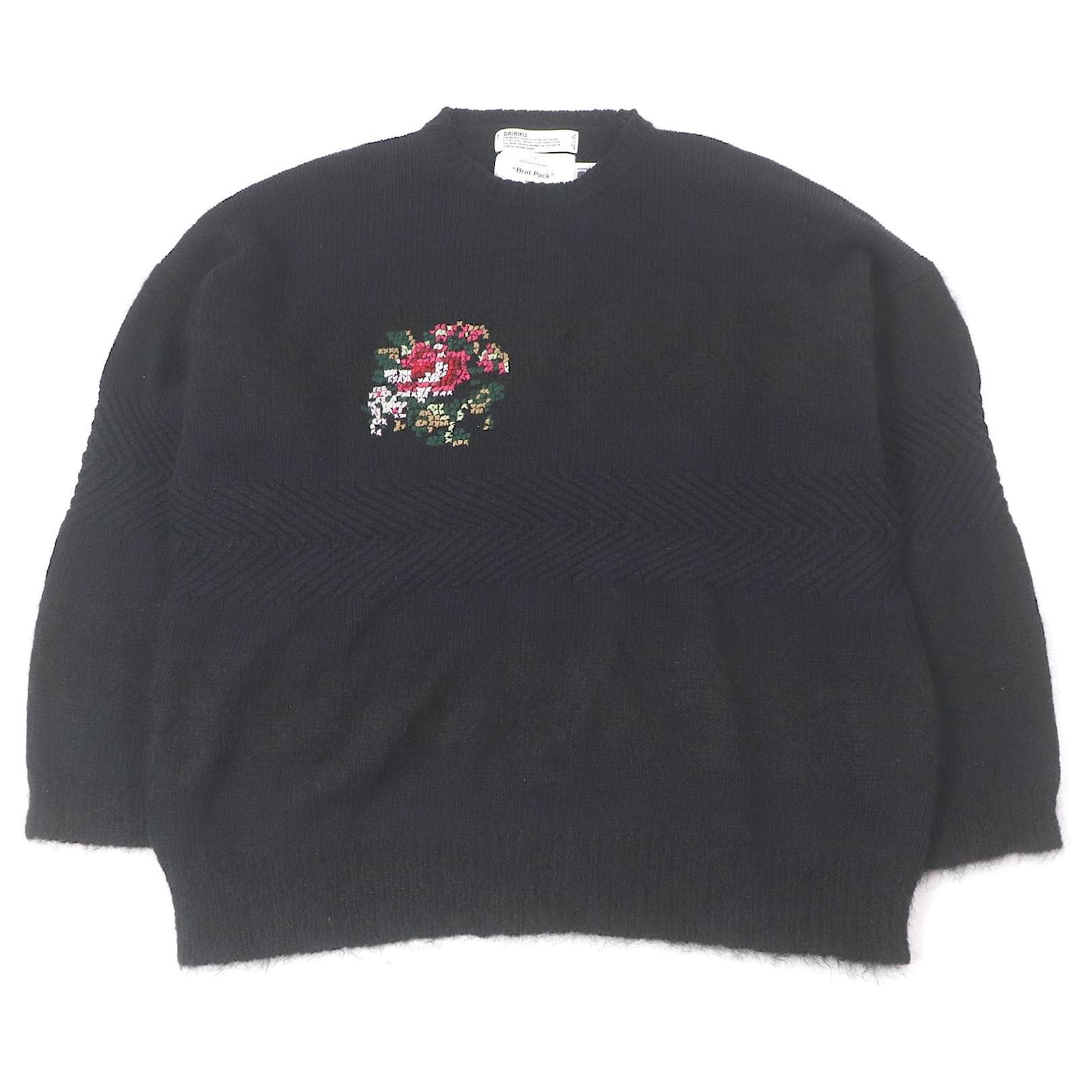 Autre Marque DAIRIKU Flower Cross Embroidery Border Knit Mohair Wool Sweater Black