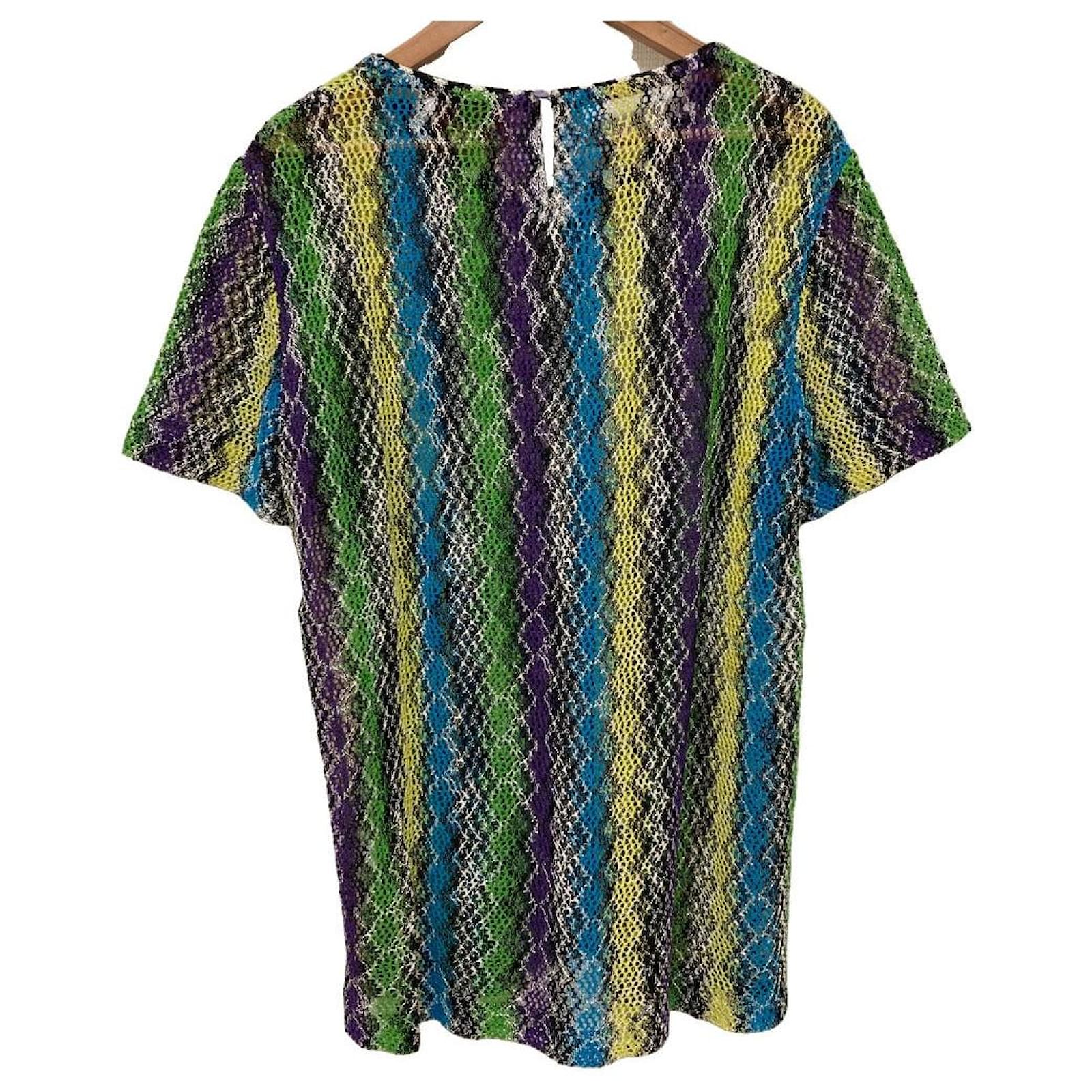 Elevate your everyday style with the Missoni Mesh Knit Short Sleeve Top. This piece seamlessly blends comfort and sophistication, making it a versatile addition to your wardrobe. The breathable mesh knit offers a relaxed and airy feel, perfect for warm weather or layering. Designed with a modern silhouette, this top drapes beautifully and provides a flattering fit. Its refined design effortlessly transitions from casual outings to more polished settings, embodying a practical yet stylish approach to dressing. Experience the subtle luxury and easy elegance that Missoni brings to your lifestyle. - General information -Brand : OtherItem name : Missoni Mesh Knit Short Sleeve TopModel number : -- Design -Type : TopsMaterial : CottonColor : MulticolorGender : Female- Size -Size : Size Chart : 61Chest : 49Shoulder : 47Sleeve Length : 20.5Top Length : 67Color : Multicolor- Inventory -Serial Number : -SKU : 120250003313200A0025937183- Included Items -Accessories : -*Before purchasing, please refer to the images of the accessories included with the item.- Condition -Condition : Excellent ConditionRank : Used A Slightly used condition, no visible wear.Condition Notice : Before purchasing, please refer to the images for the exact condition of the item.