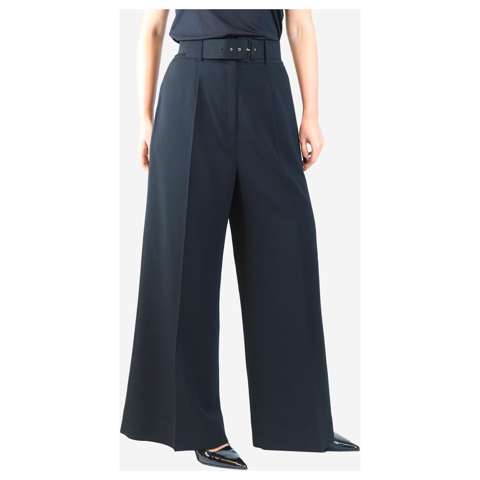 Autre Marque Black belted crepe trousers - size UK 16