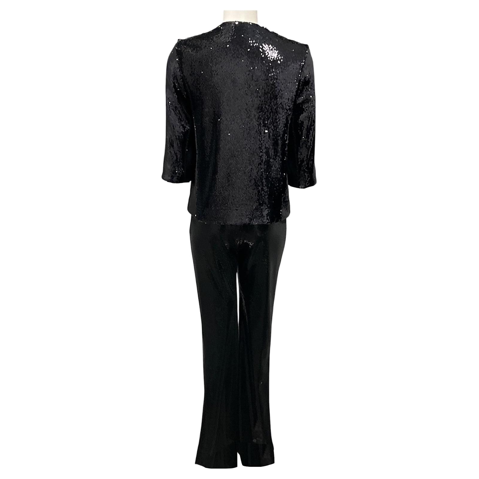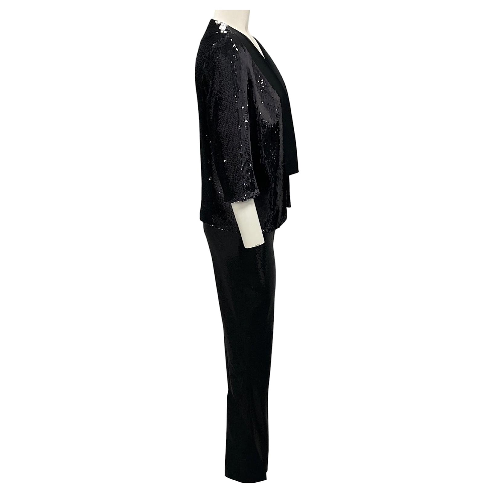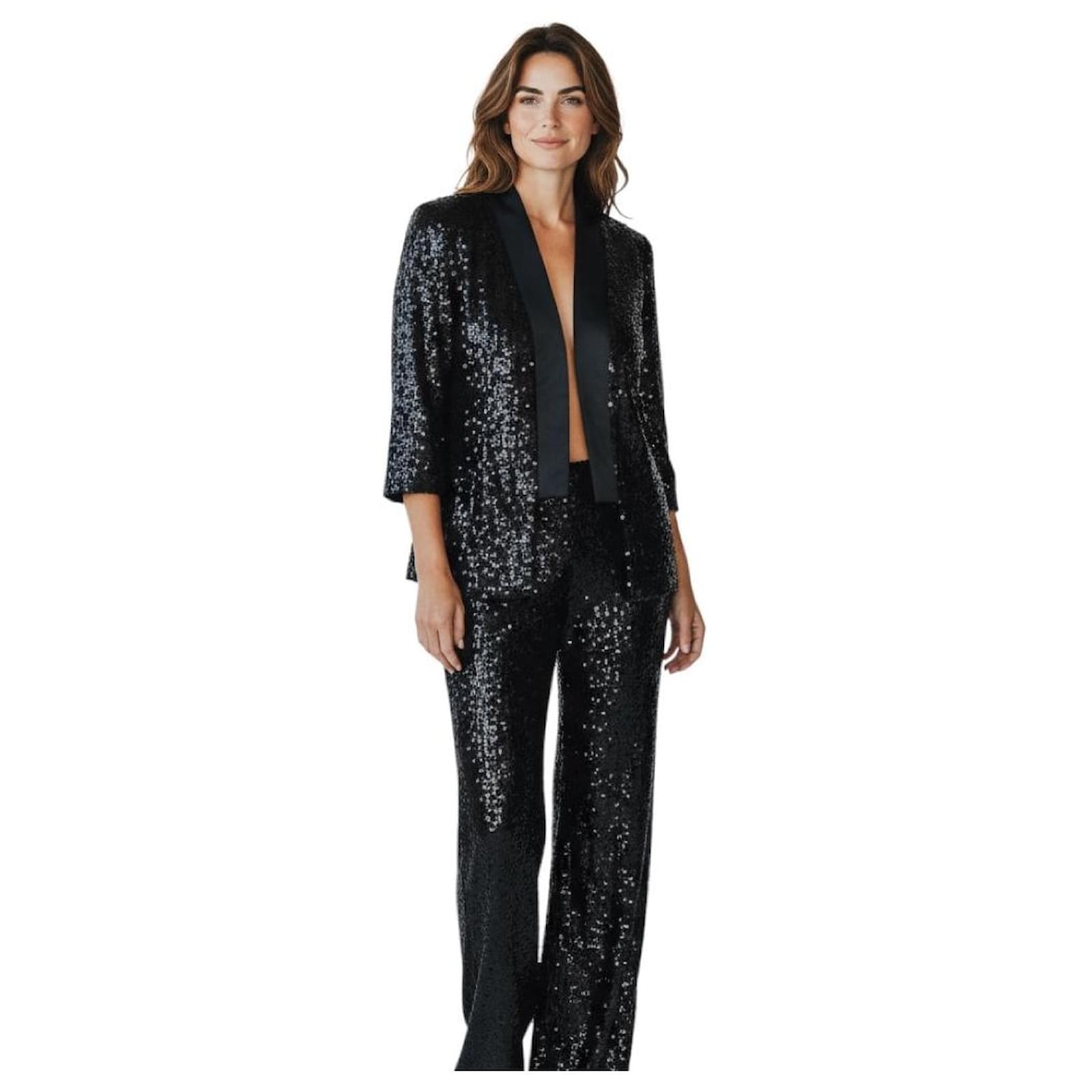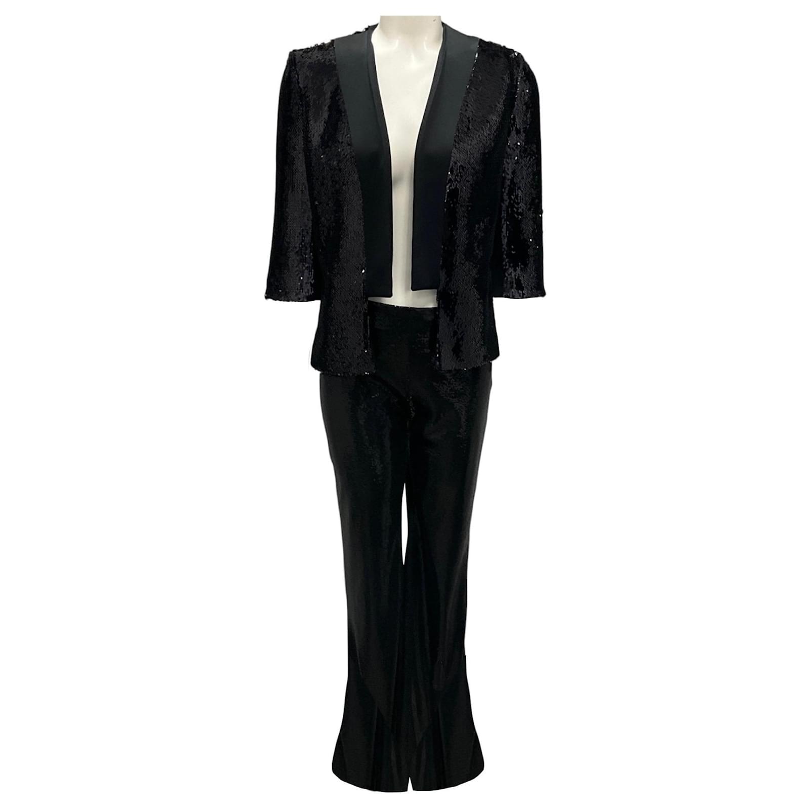 Autre Marque Galvan London Black Sequined Jacket and Pants Suit Set