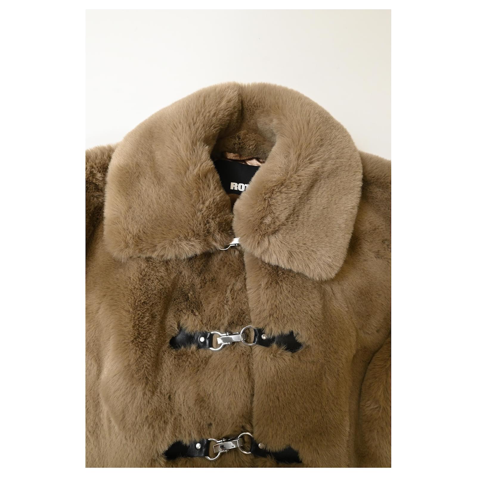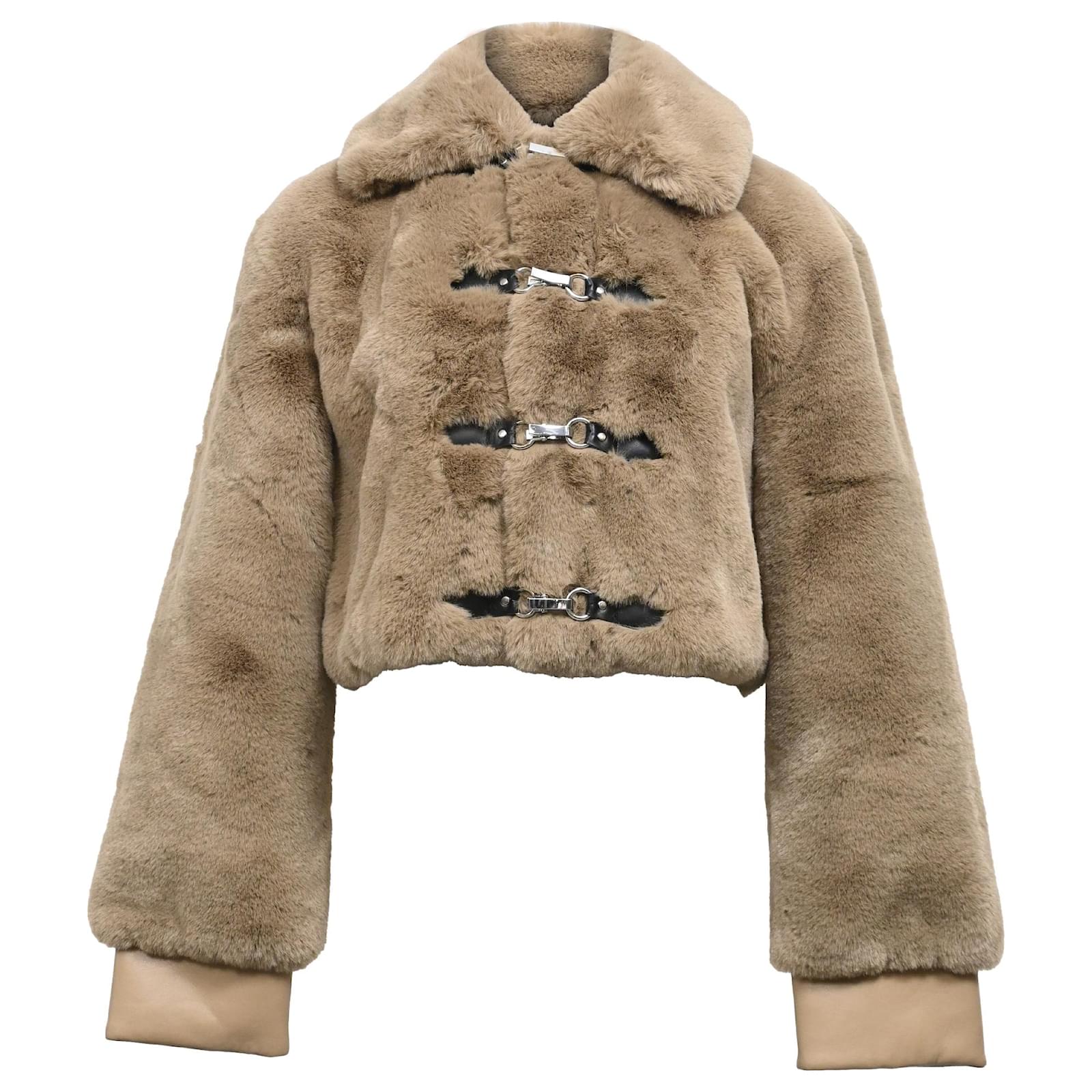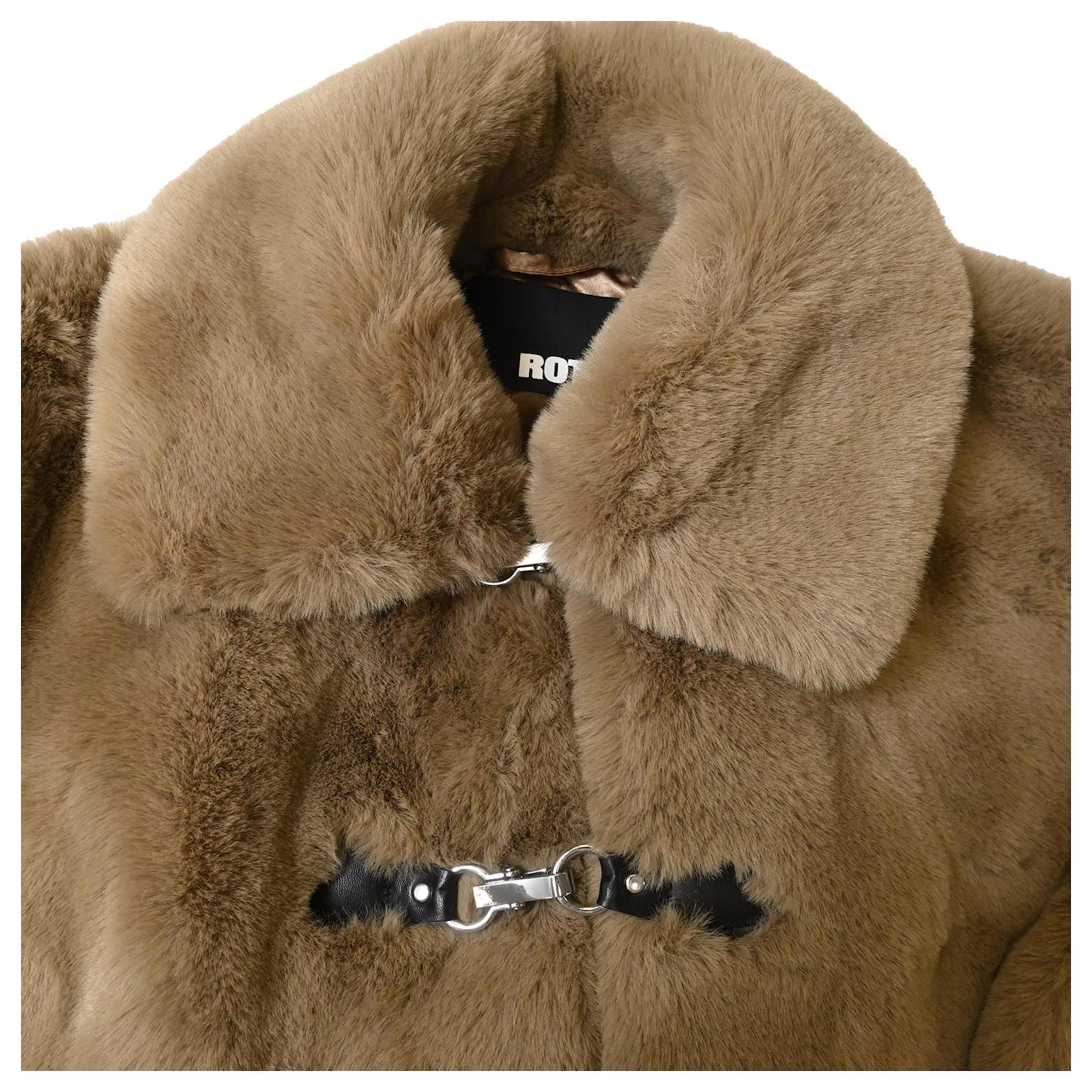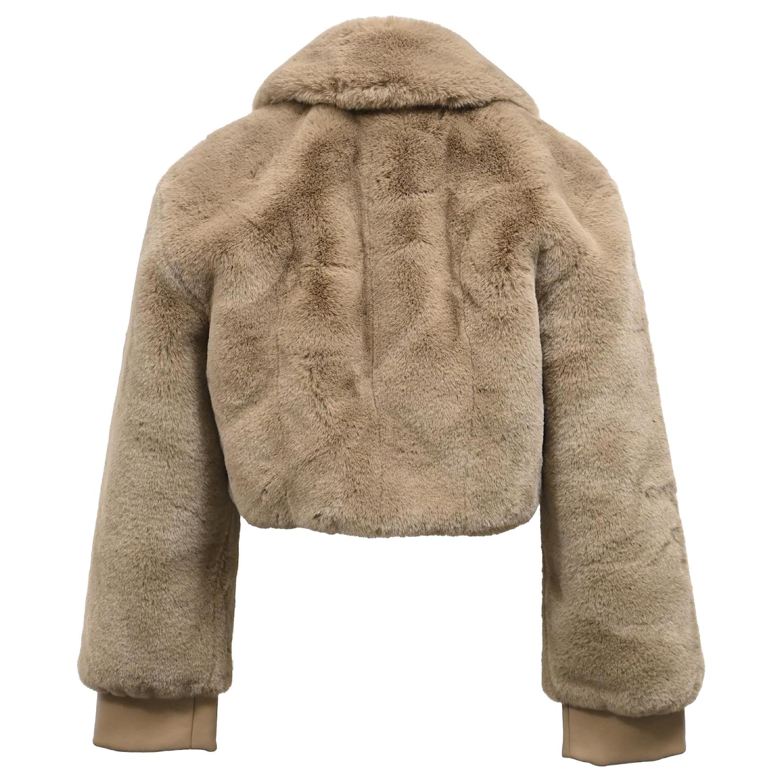 Autre Marque Rotate Birger Christensen Cropped Faux-Fur Jacket in Brown Polyester Red