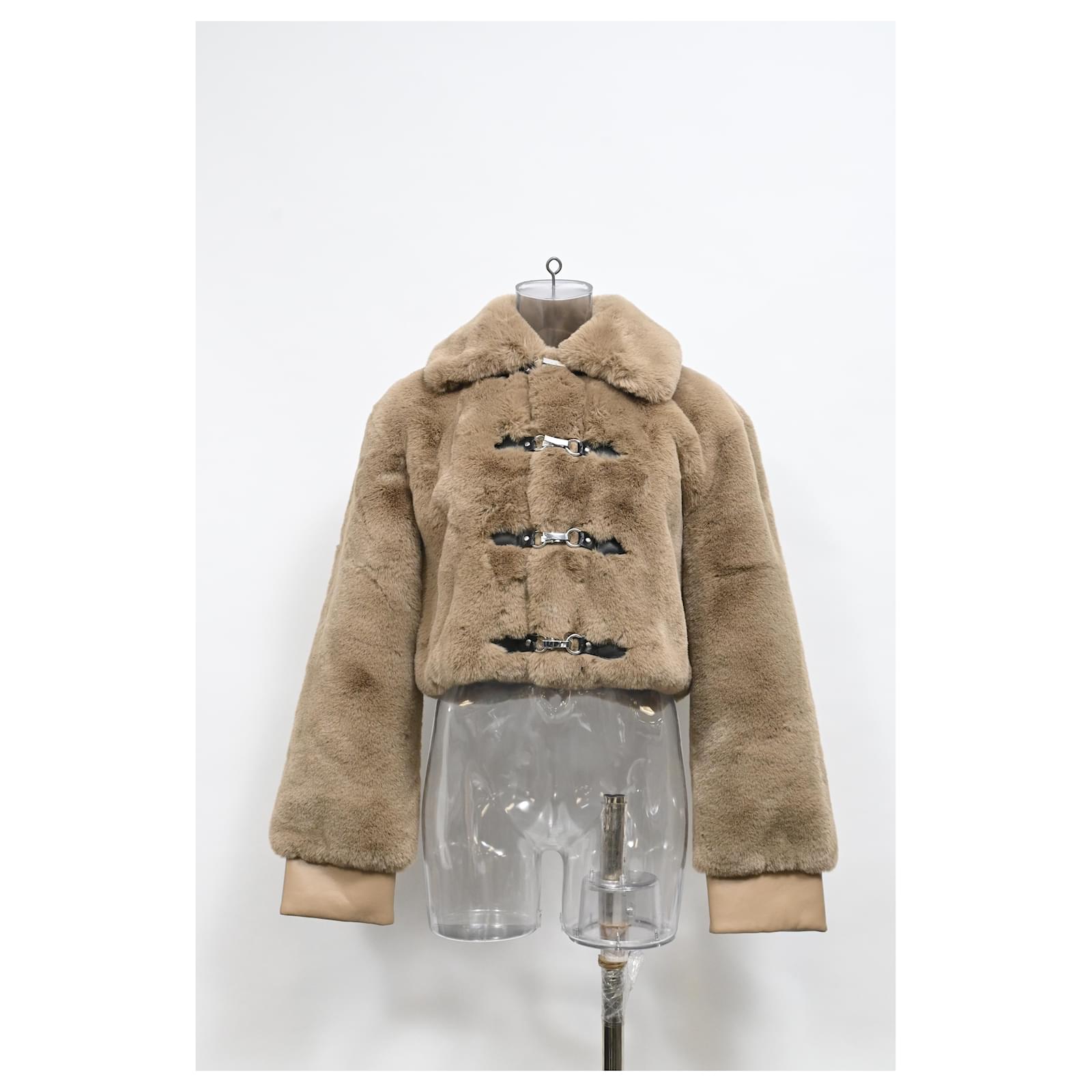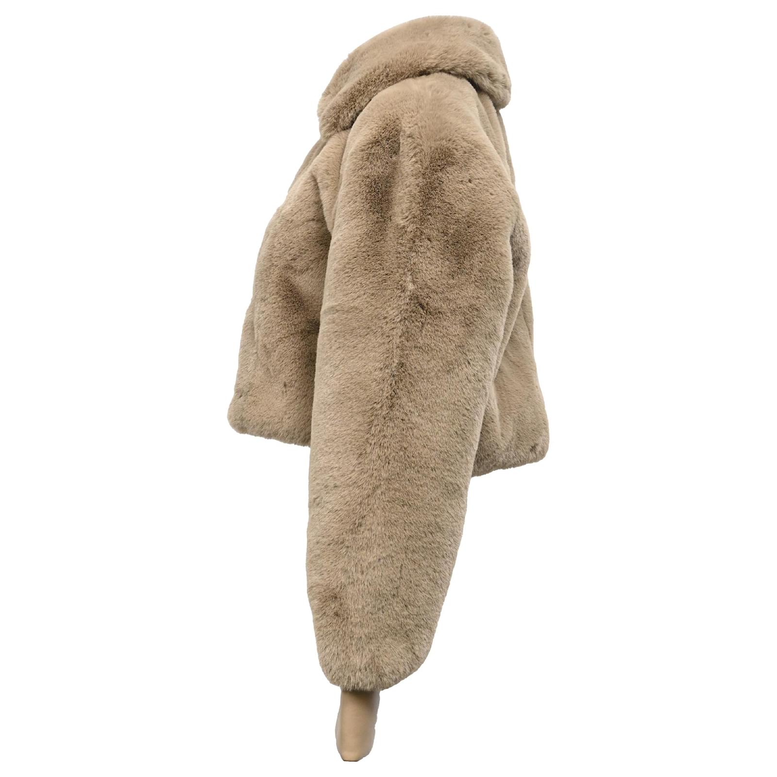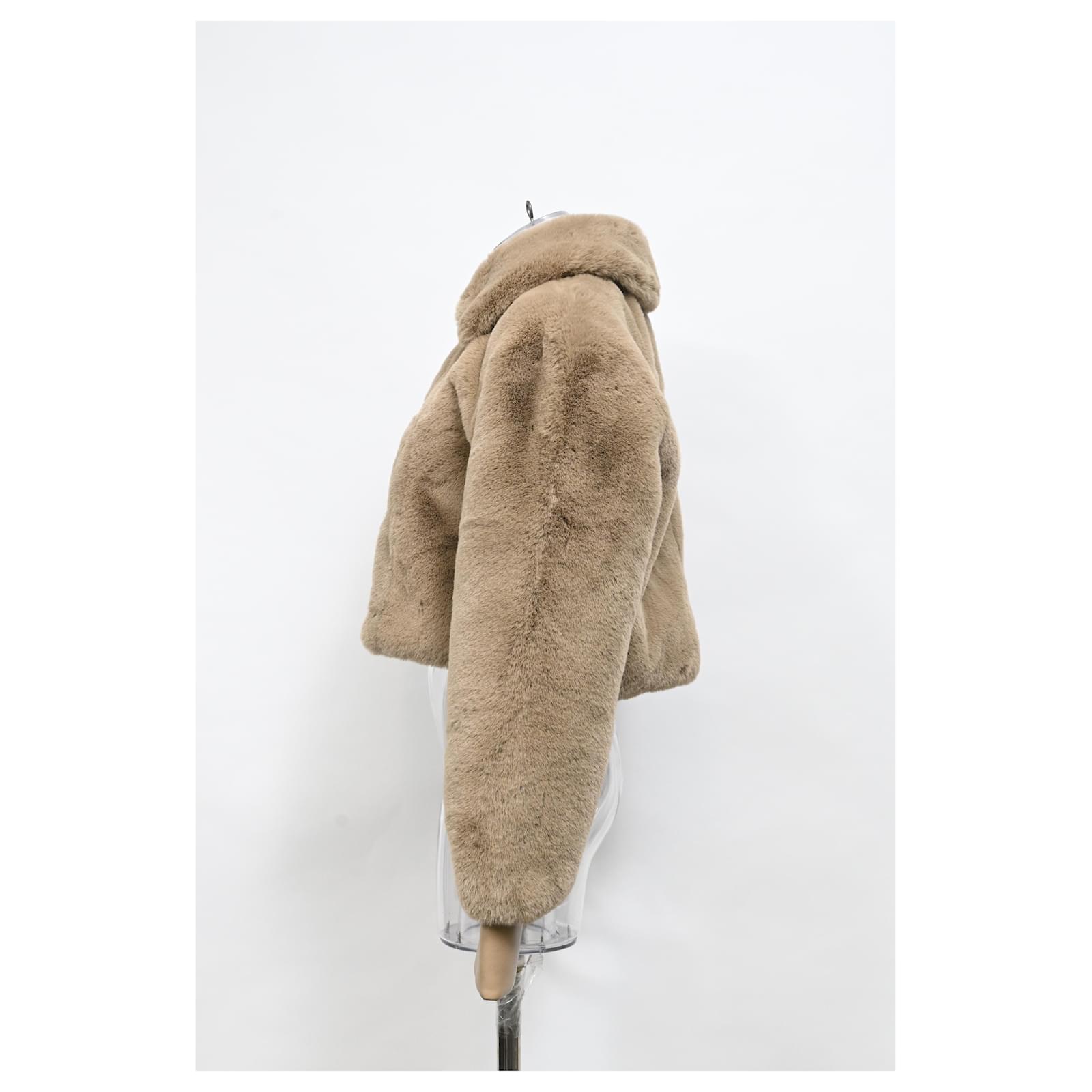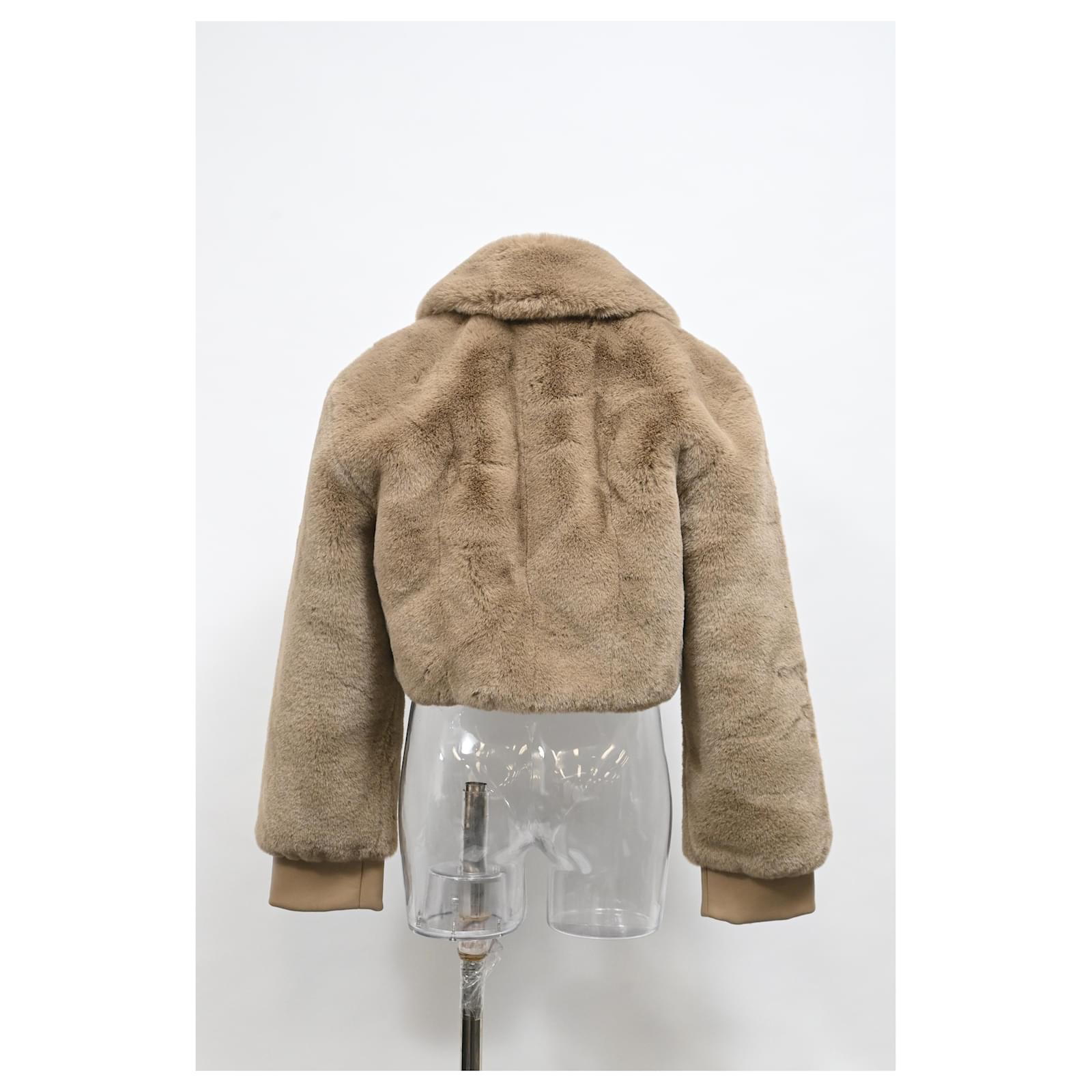 Autre Marque Rotate Birger Christensen Cropped Faux-Fur Jacket in Brown Polyester Red