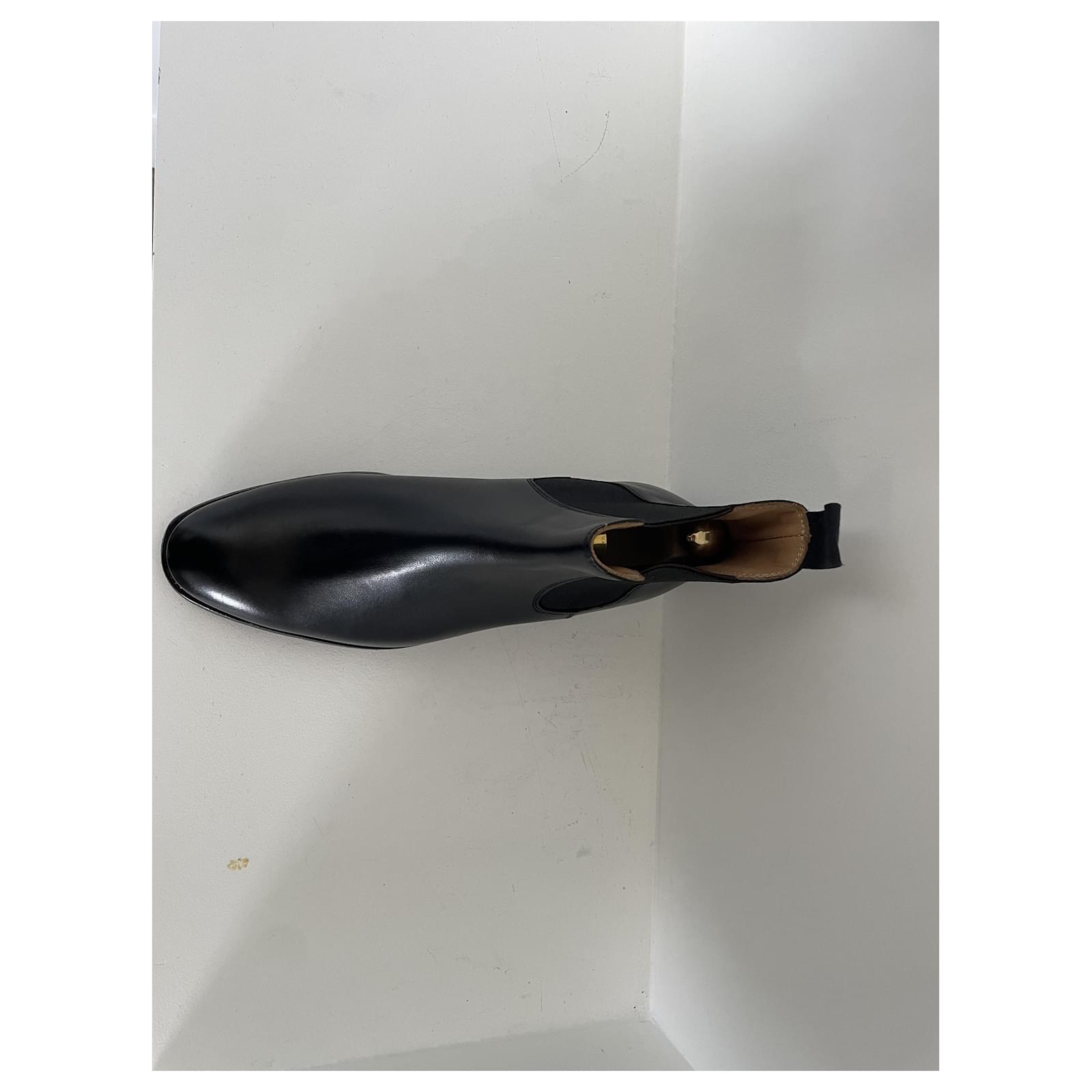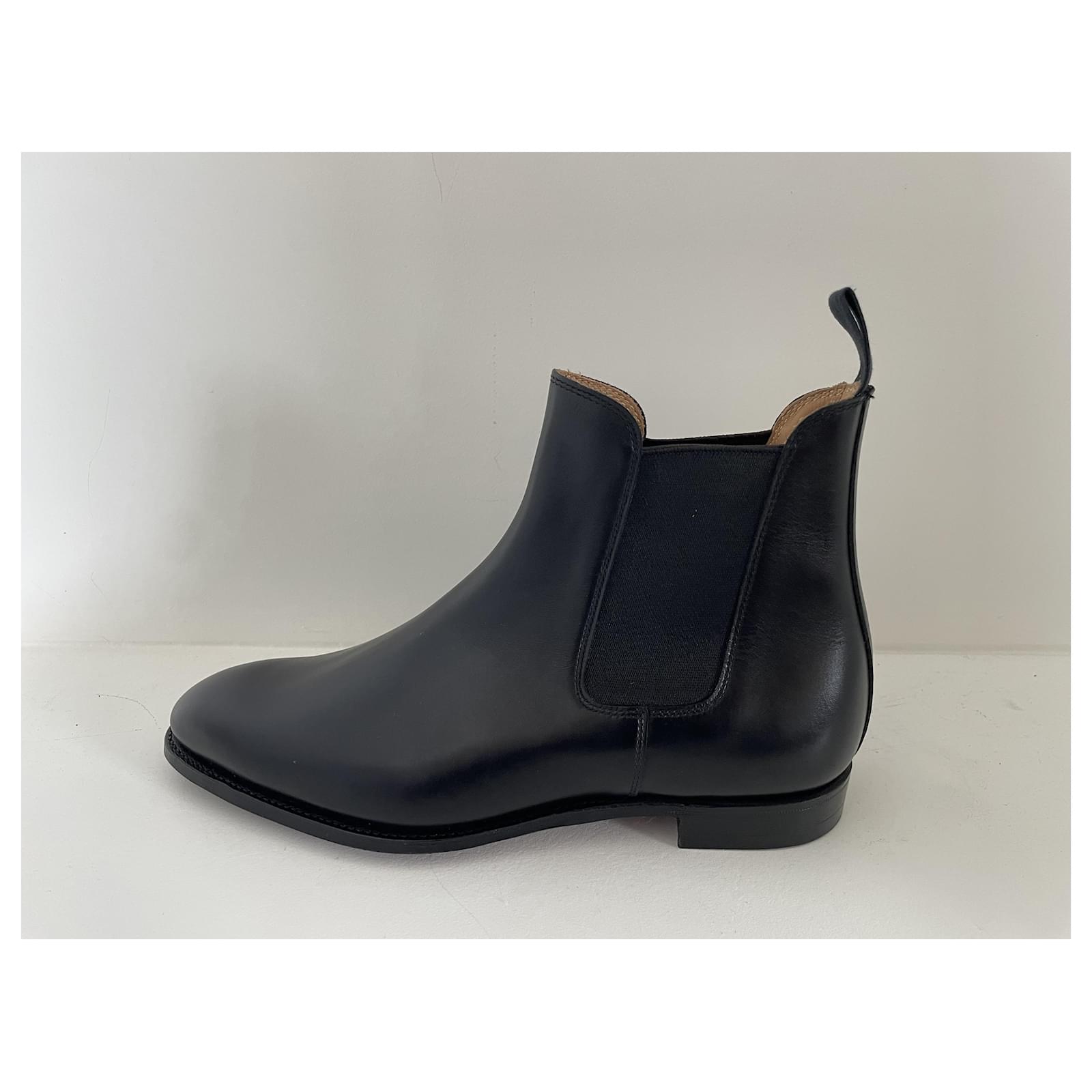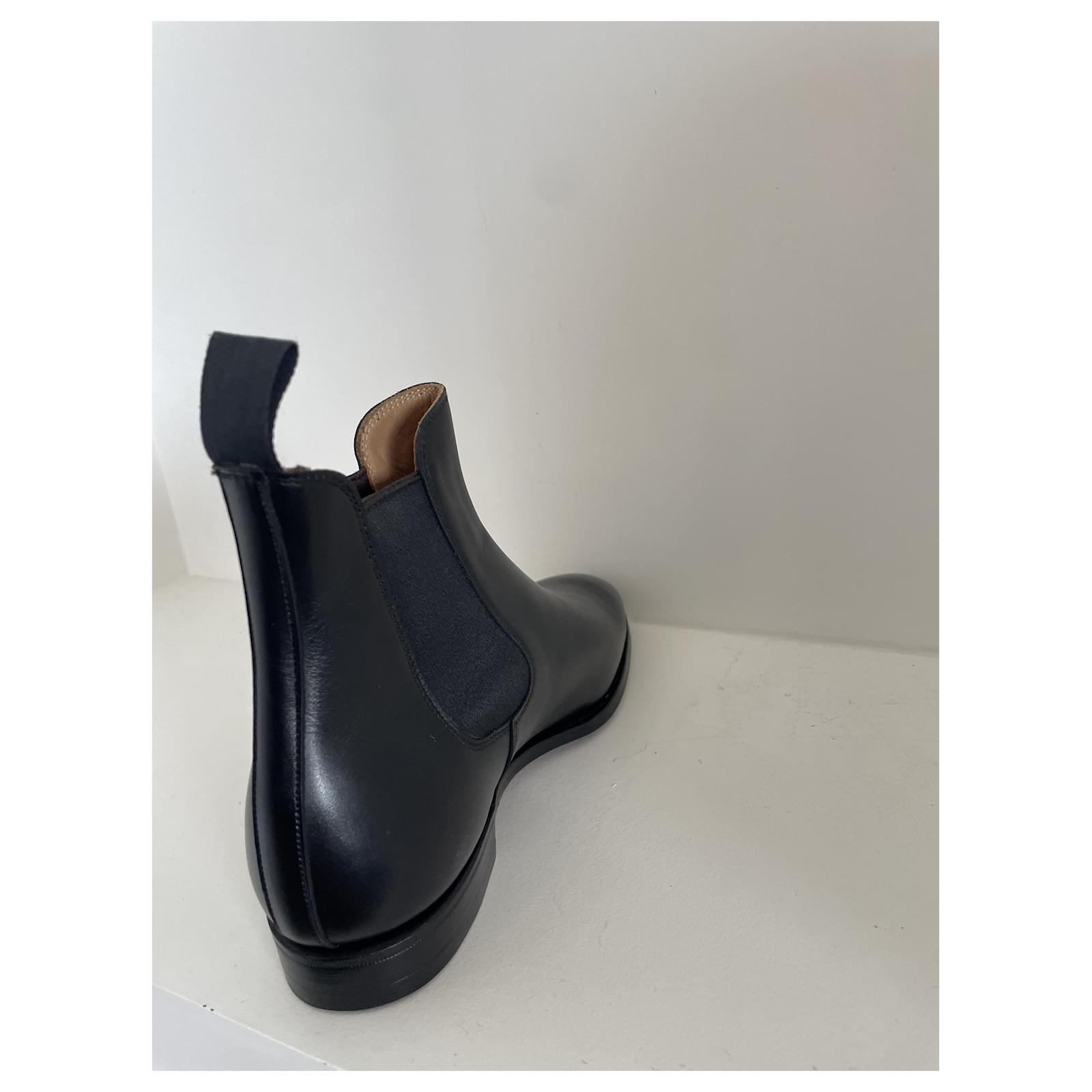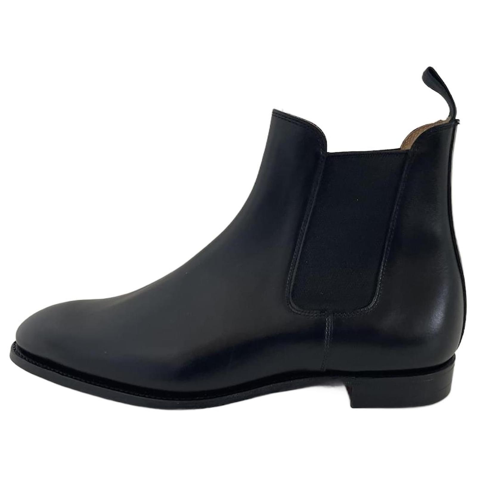 A classic ankle height Chelsea boot. Black Calf with leather soles.