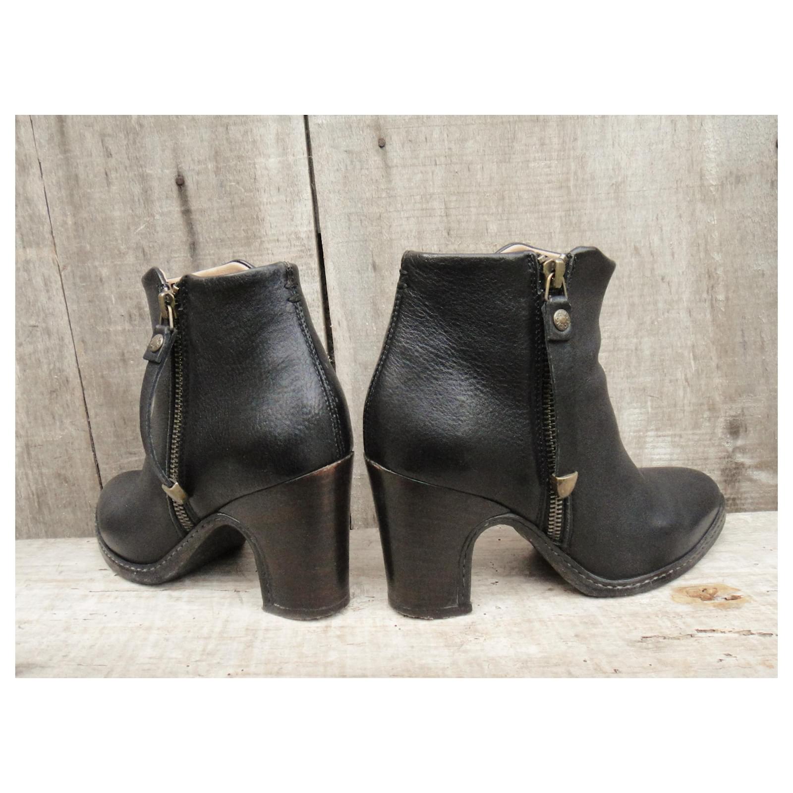 - Leather-lined leather upper with zipped opening, first leather, sewn on leather sole fitted with an original integrated elastomer pad