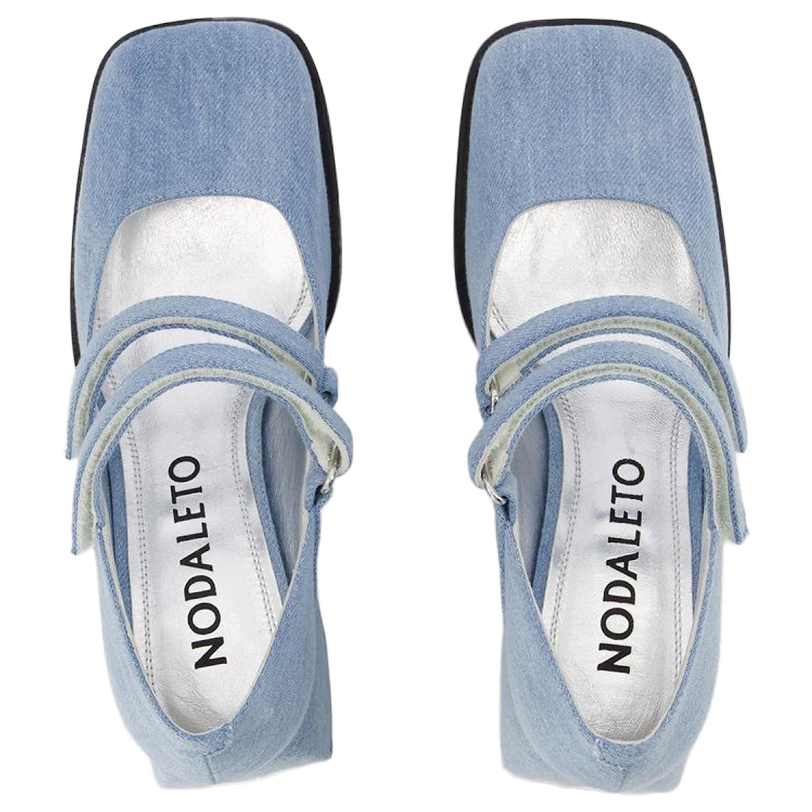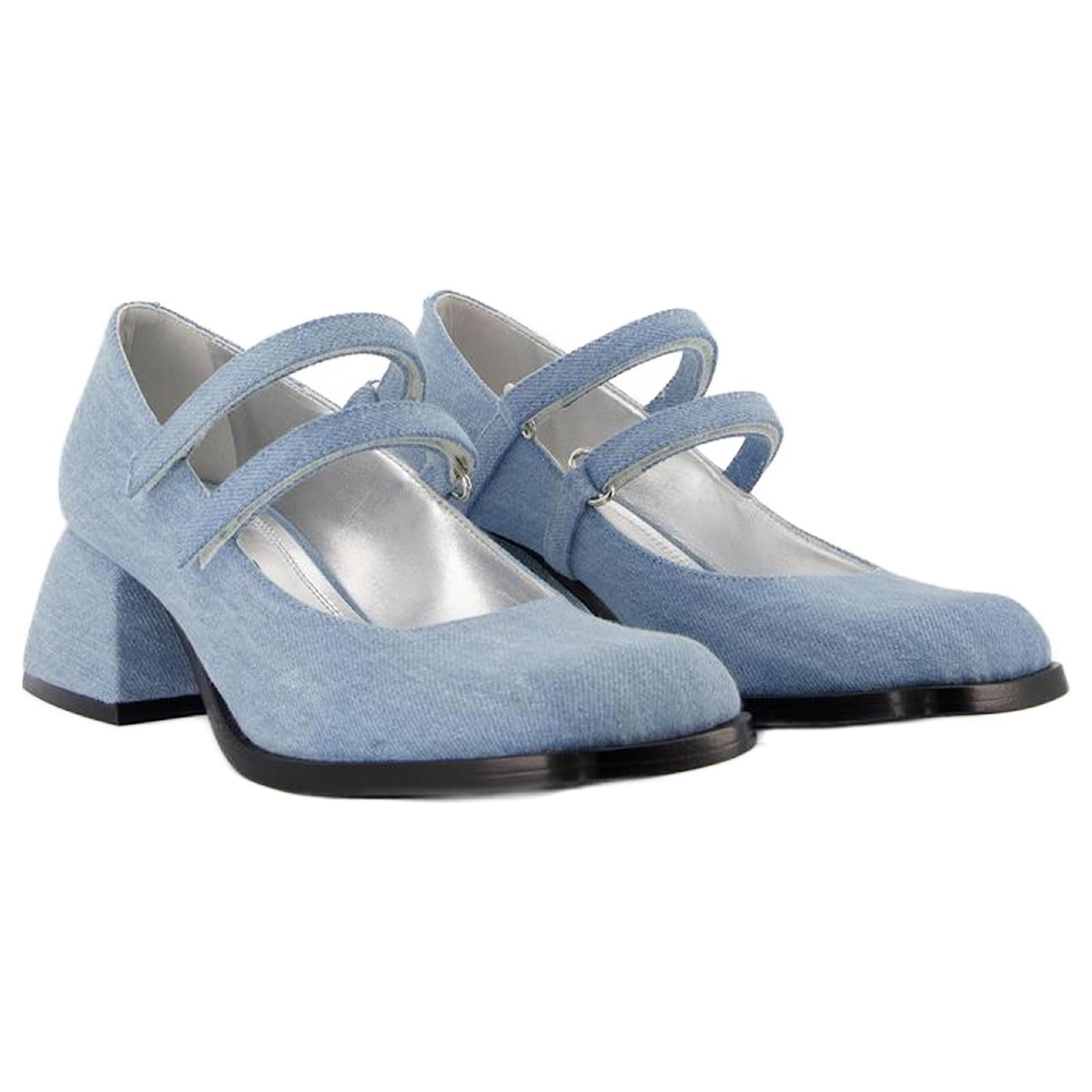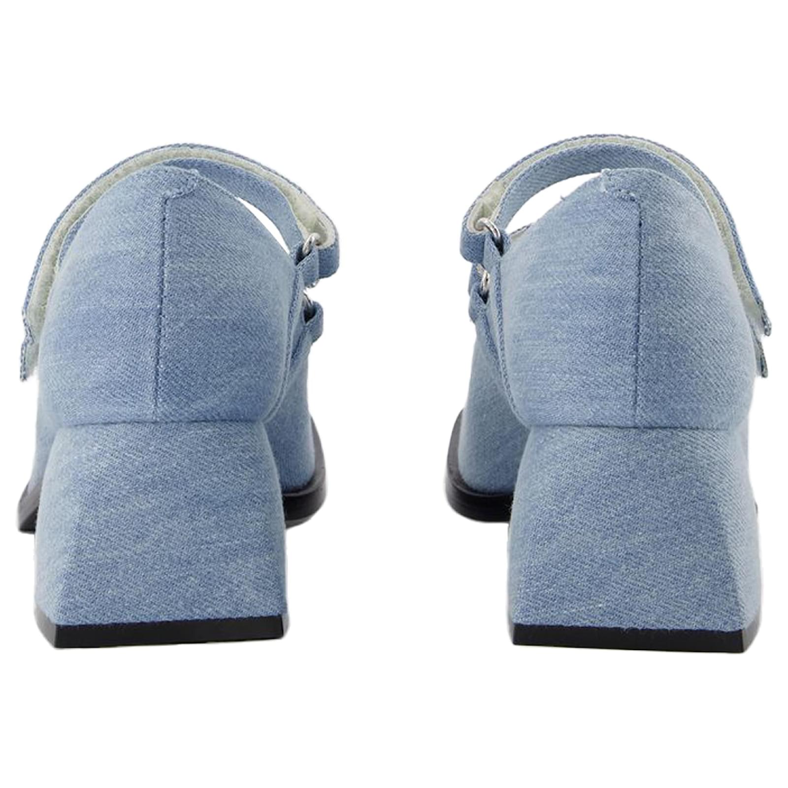 Heel: 5 cm. Colour : Bleu - Sunlight Denim. Main material: canvas. Sole: leather. Closure: ankle strap with buckle. Toe: round. Fit: half a size bigger than standard - Sizing: European. Product Id: 236473