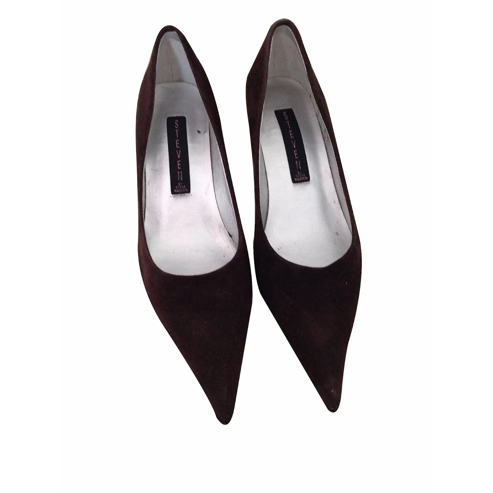 chocolate brown shoes pointed toe suede heels silver <6cm disinclined