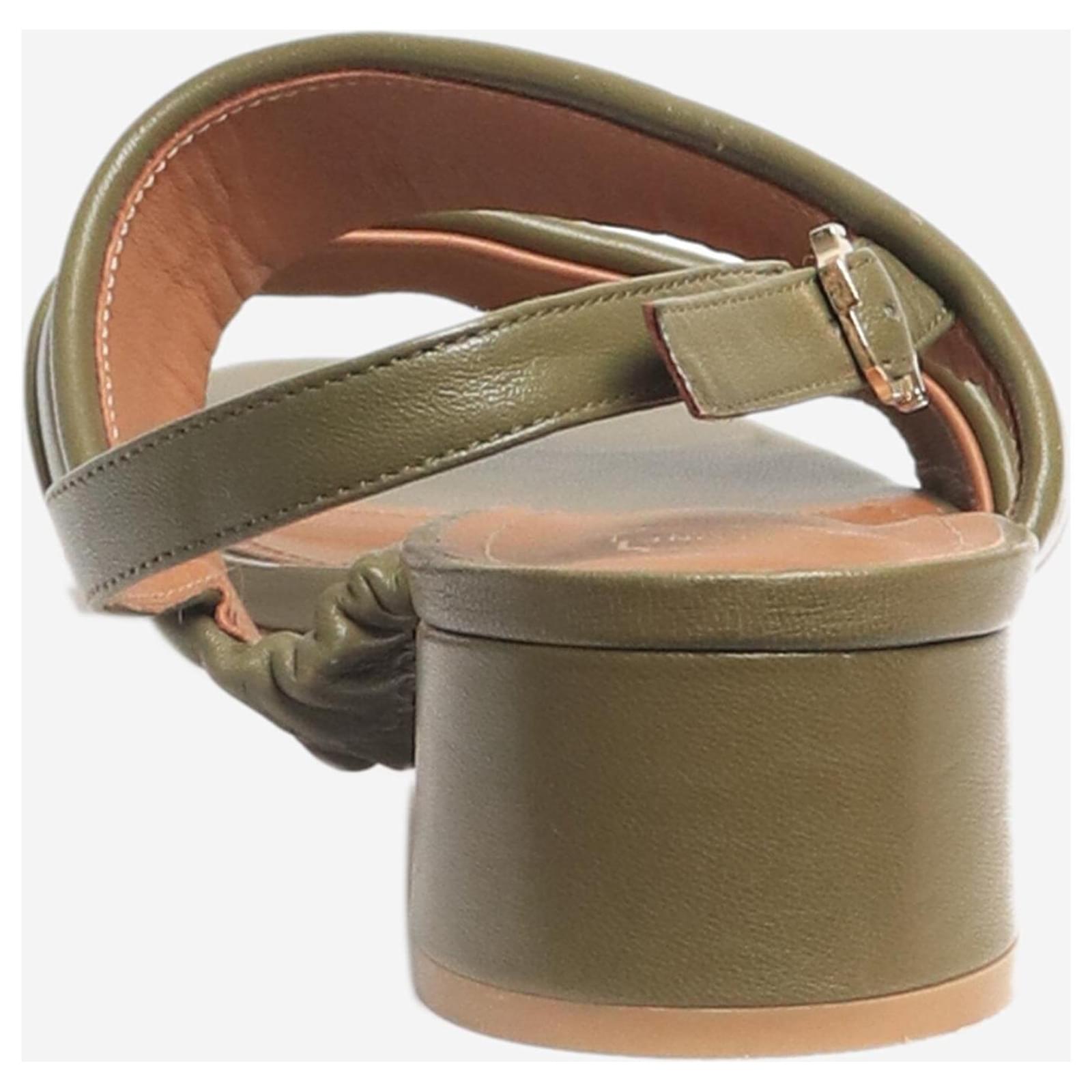 Autre Marque Khaki leather sandal heels - size EU 42 Green