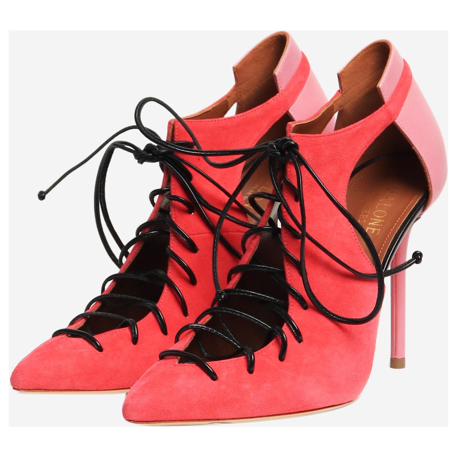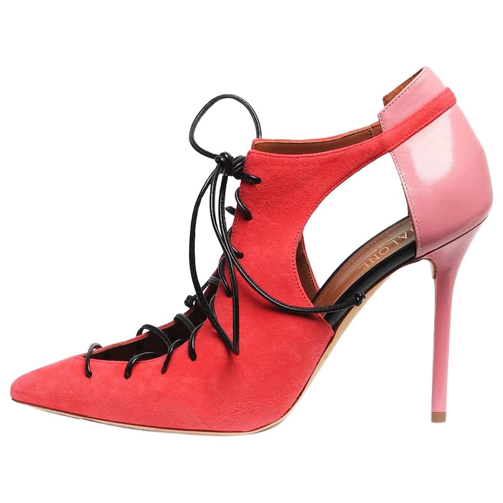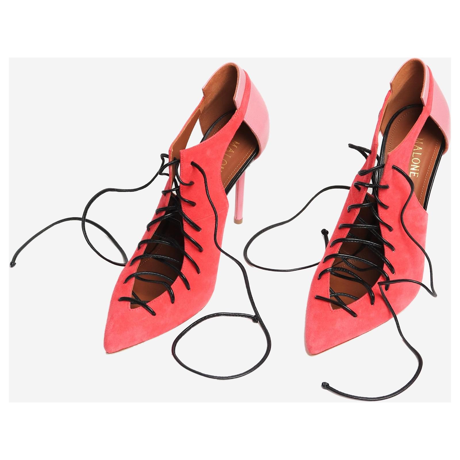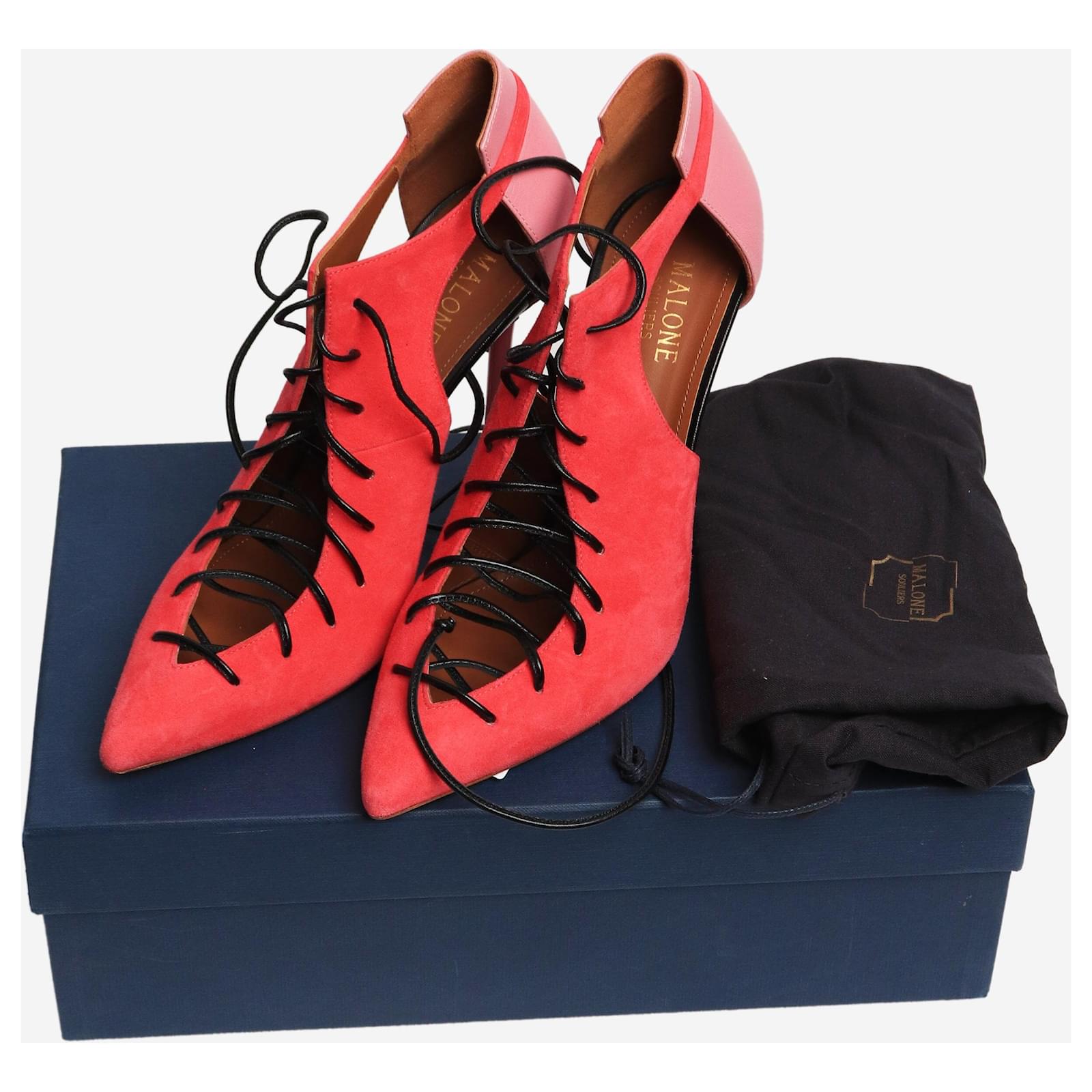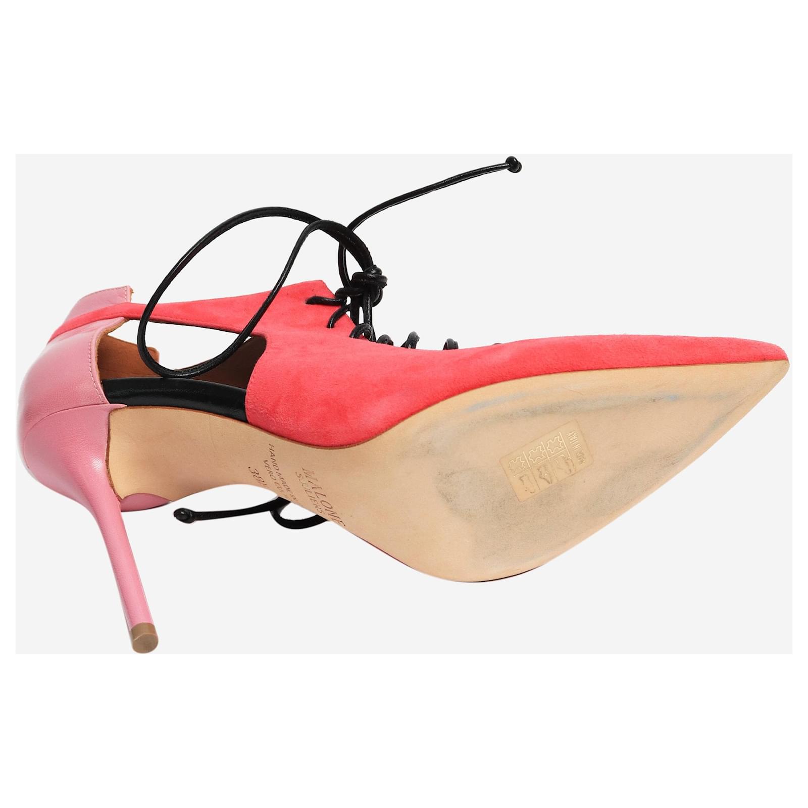 Malone Souliers pink suede Montana point-toe pumps.