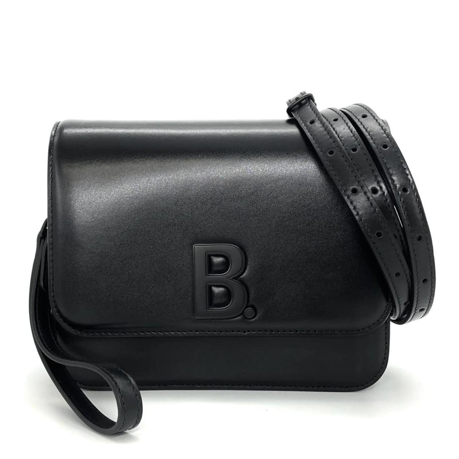 The Balenciaga B Shoulder Bag is a stylish accessory crafted from leather, featuring a sleek black color. This bag includes an open outer pocket and a well-organized interior with one zipper pocket and four open pockets, making it practical for everyday use.
