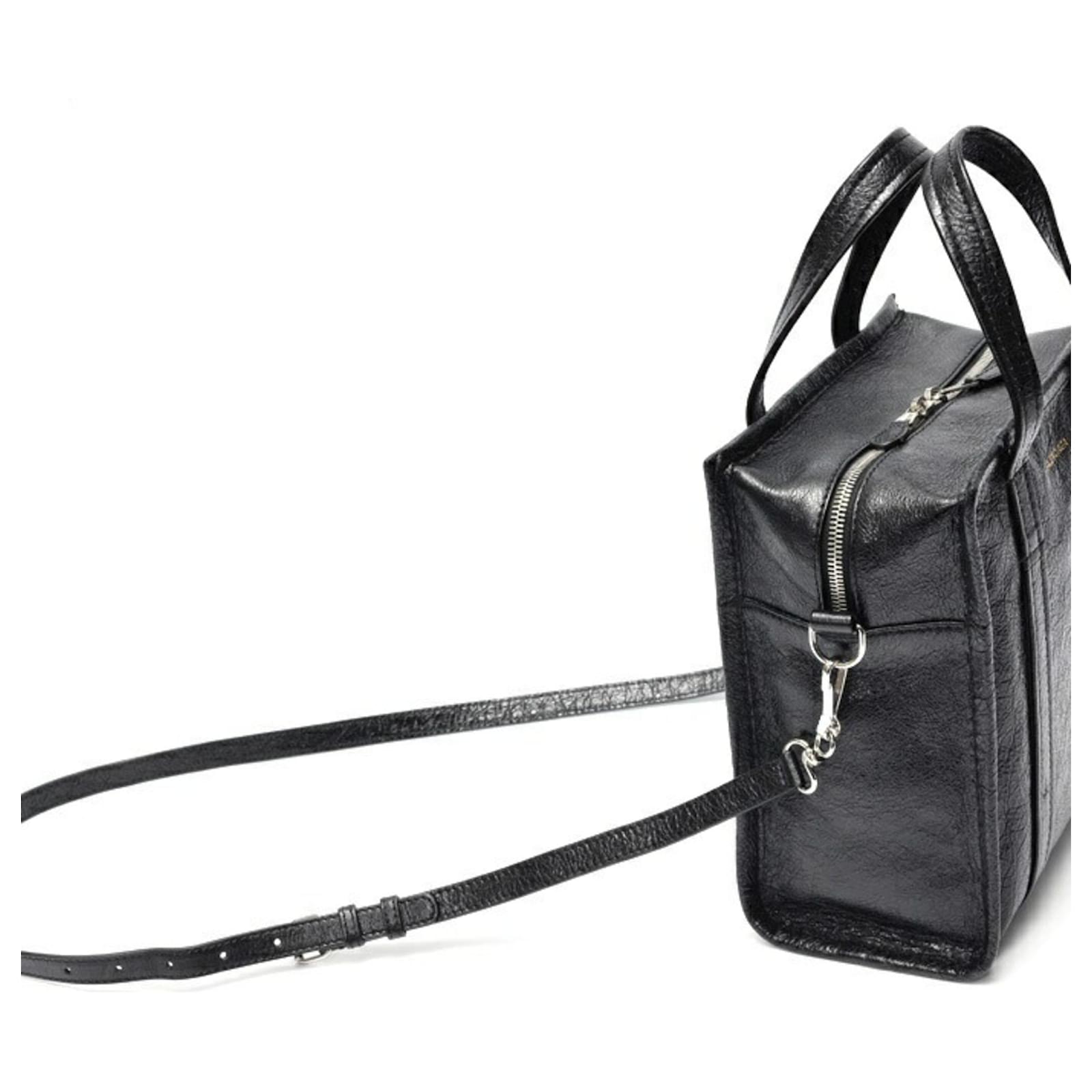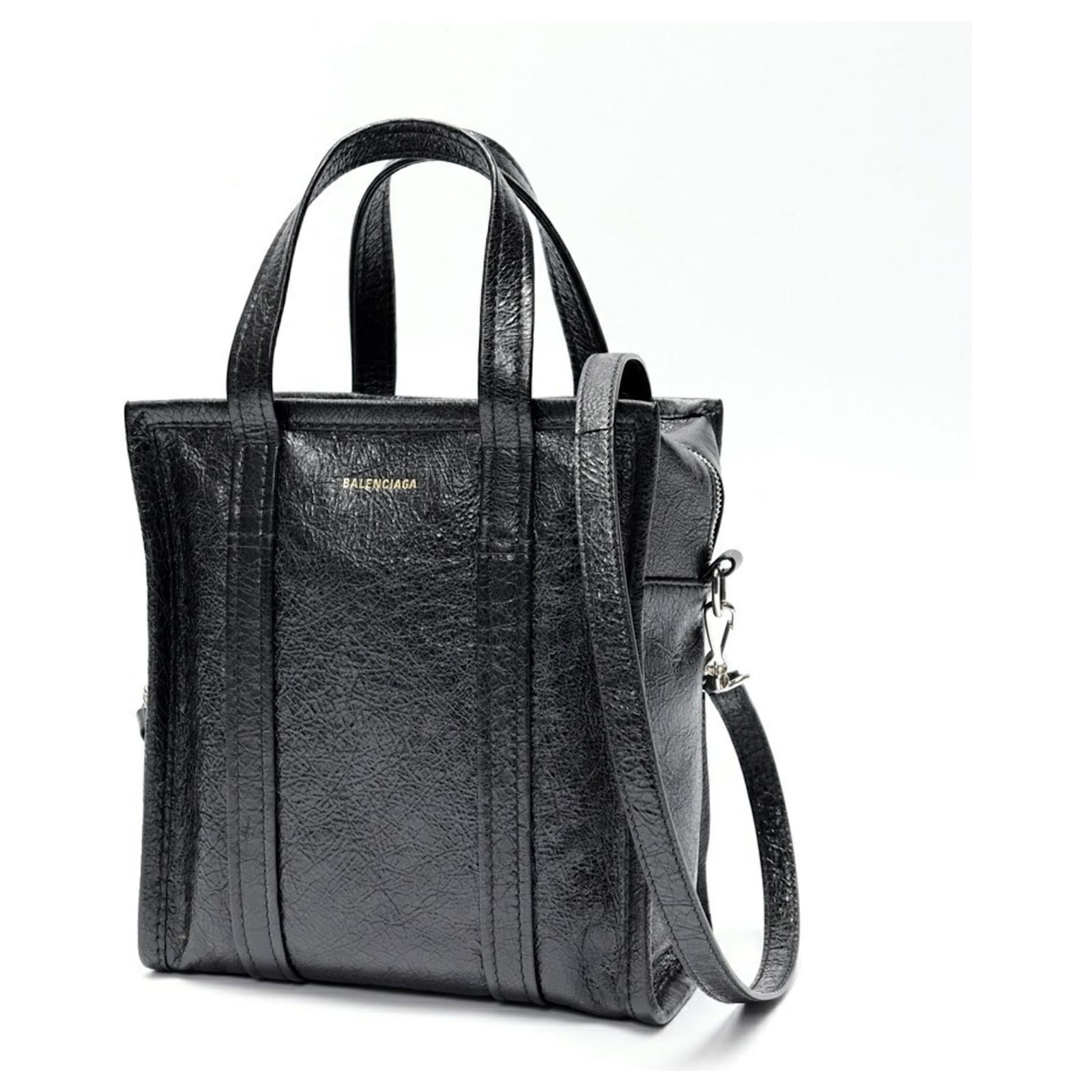 The Balenciaga Bazaar Shopper XS Shoulder Bag is a sophisticated accessory crafted from black leather. It features dimensions of 23.5cm x 22cm x 10cm, making it a compact choice for daily use. This bag is produced in Italy and carries the MPN 513989, representative of Balenciaga's commitment to quality.