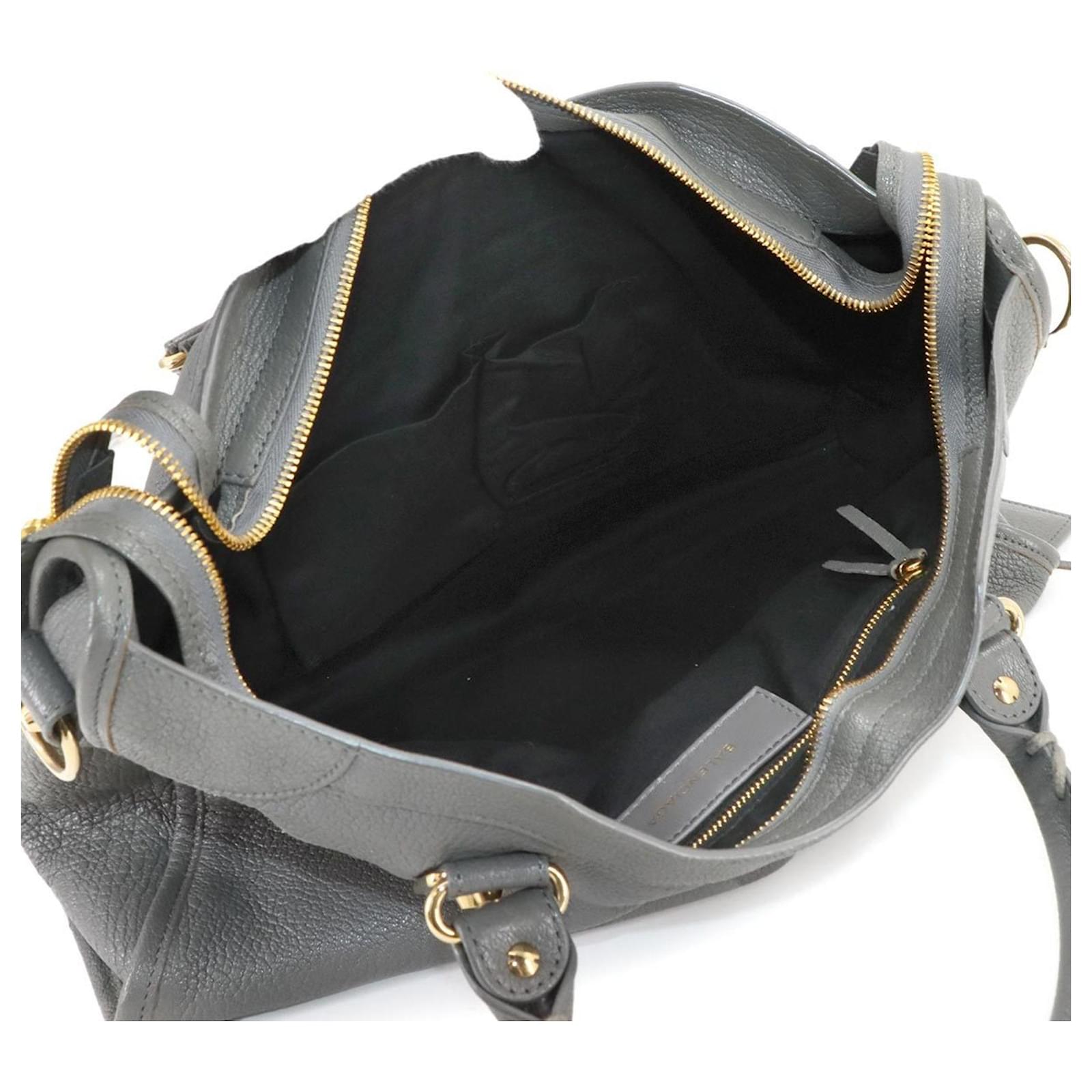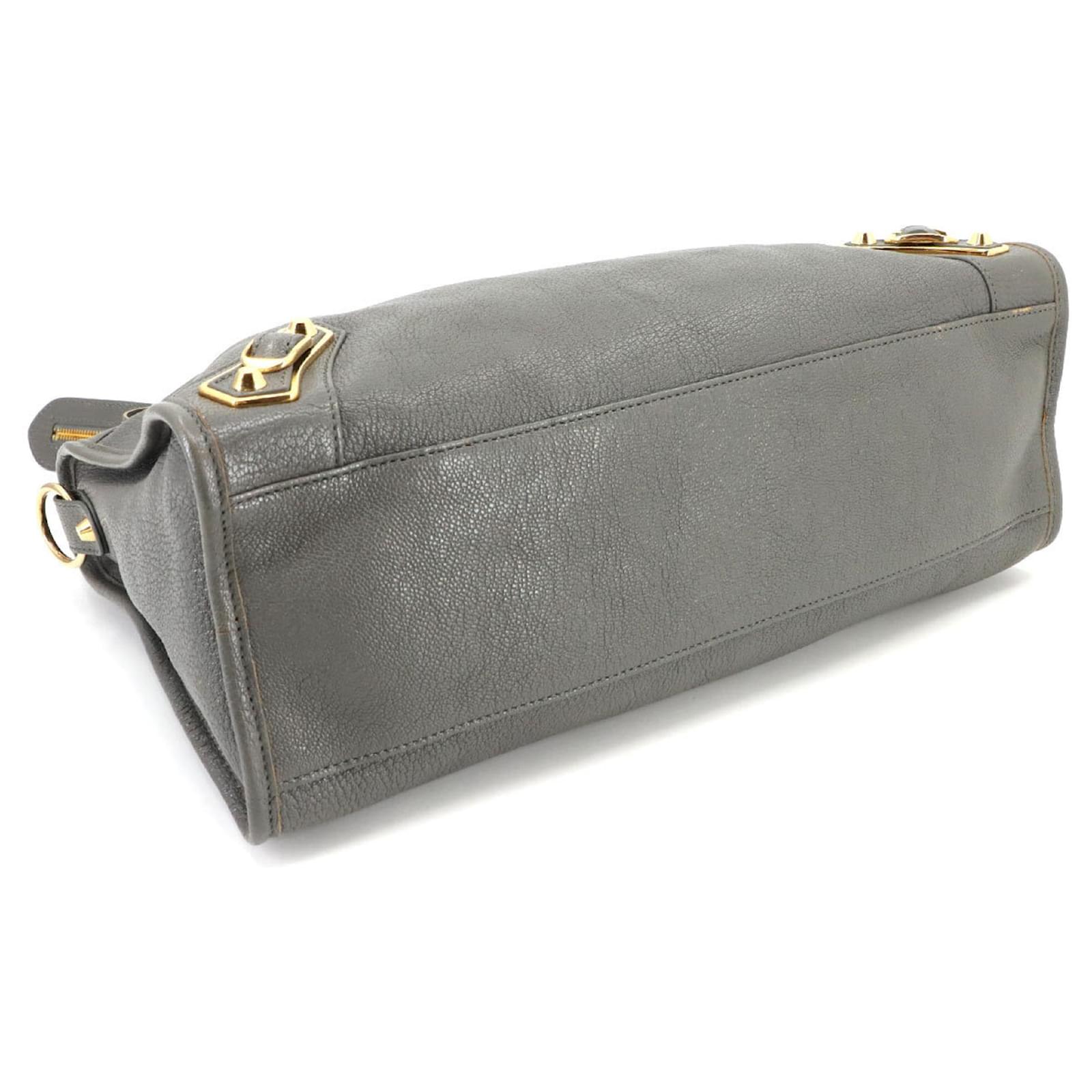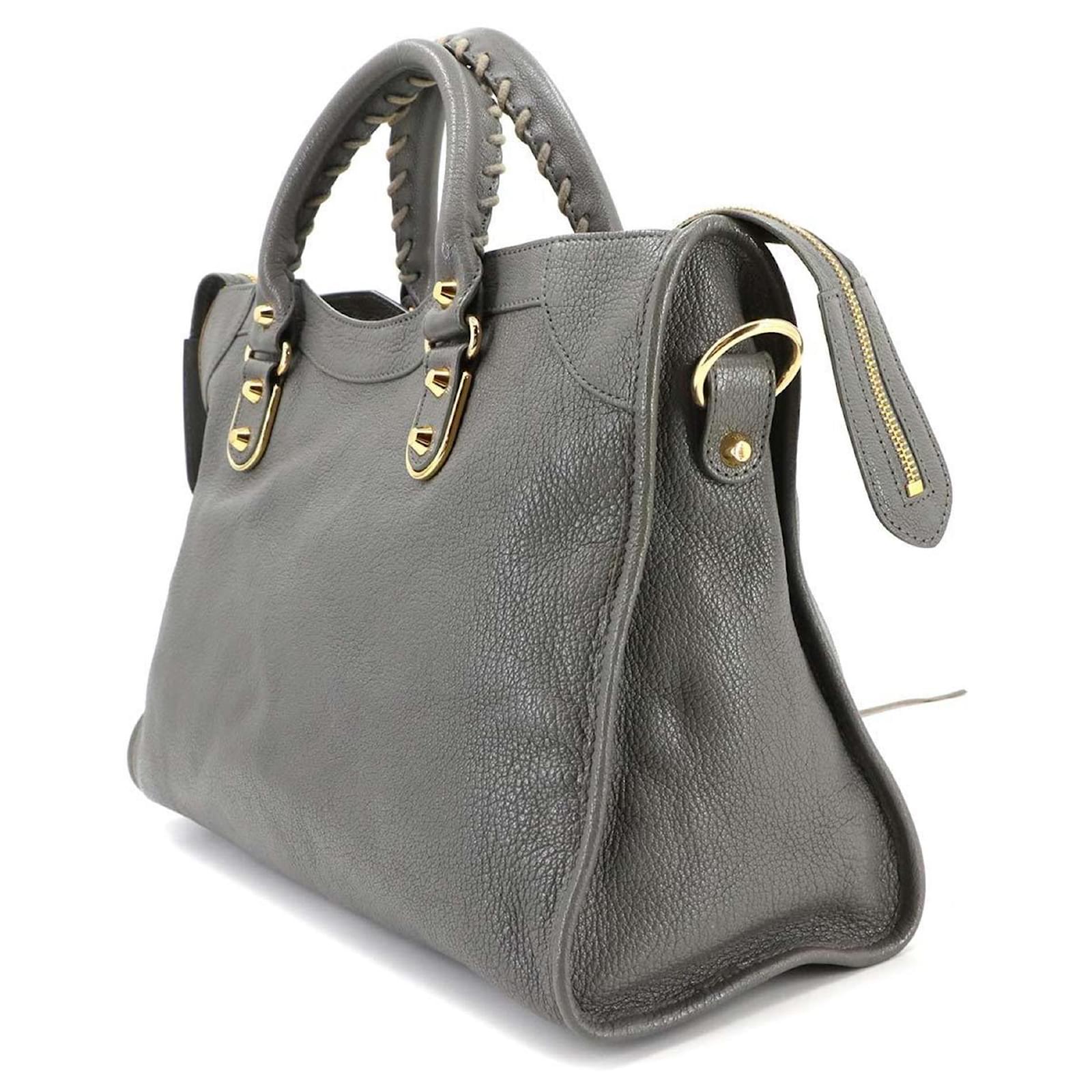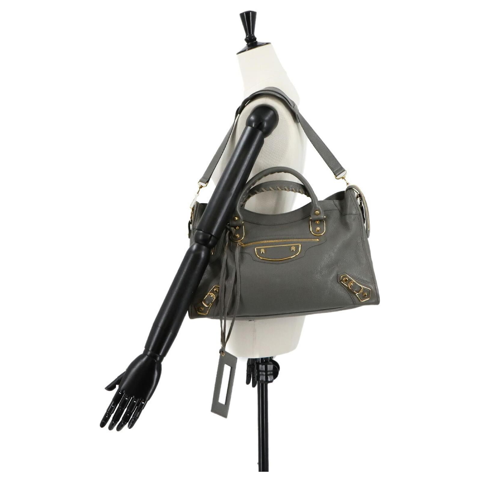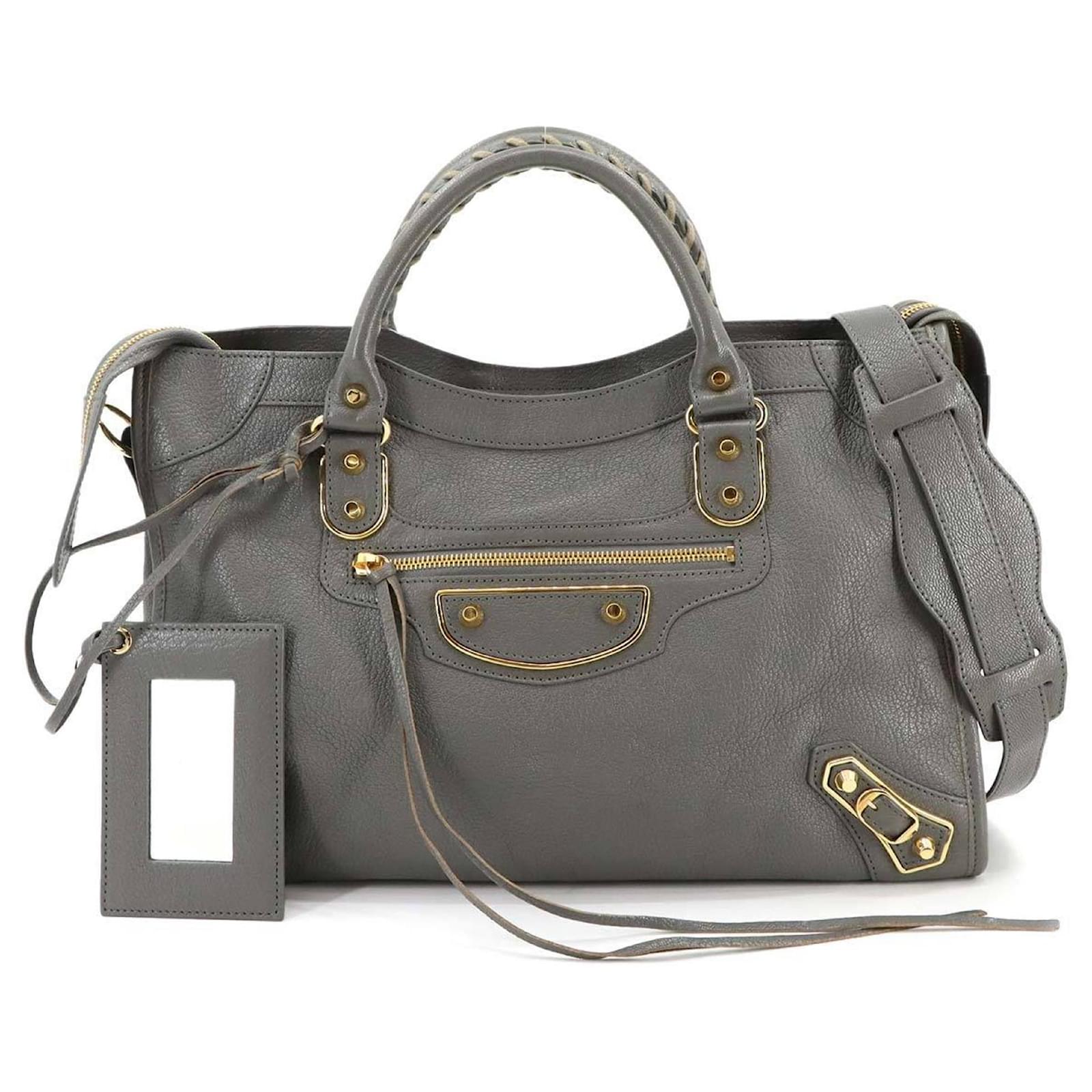 The Balenciaga Classic Metallic Edge City 2-way handbag is designed for both hand and shoulder use, crafted from gray leather. With dimensions measuring 23cm by 38cm by 13cm, it offers ample space while maintaining a stylish profile. This particular model, identified by MPN 390154, is pre-owned but remains in like-new condition, categorized as Rank S with insignificant traces of use. It features minor issues such as slight misshaping and surface peeling on the zipper pull, which do not detract from its overall appeal. The package includes accessories such as a mirror and a shoulder strap. Potential buyers are encouraged to review the images for a thorough understanding of the item’s condition.