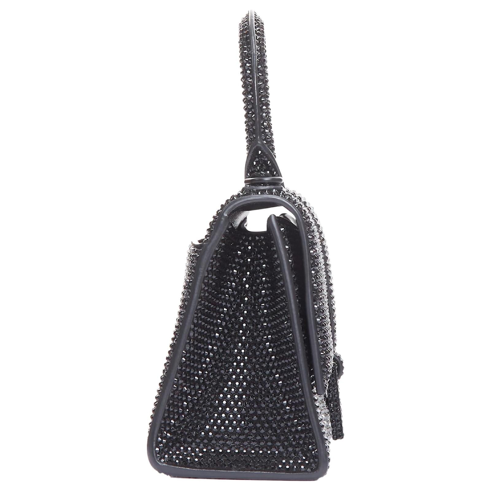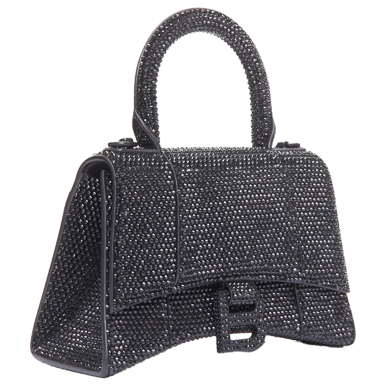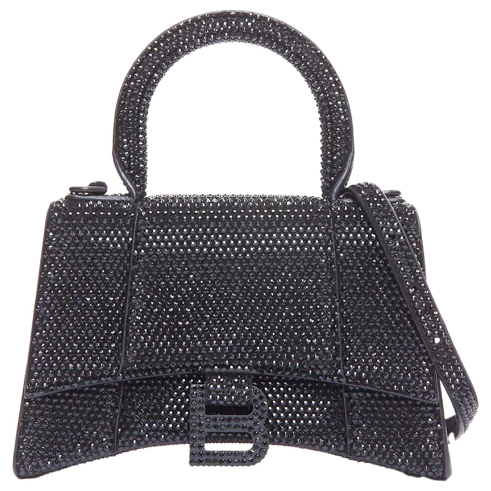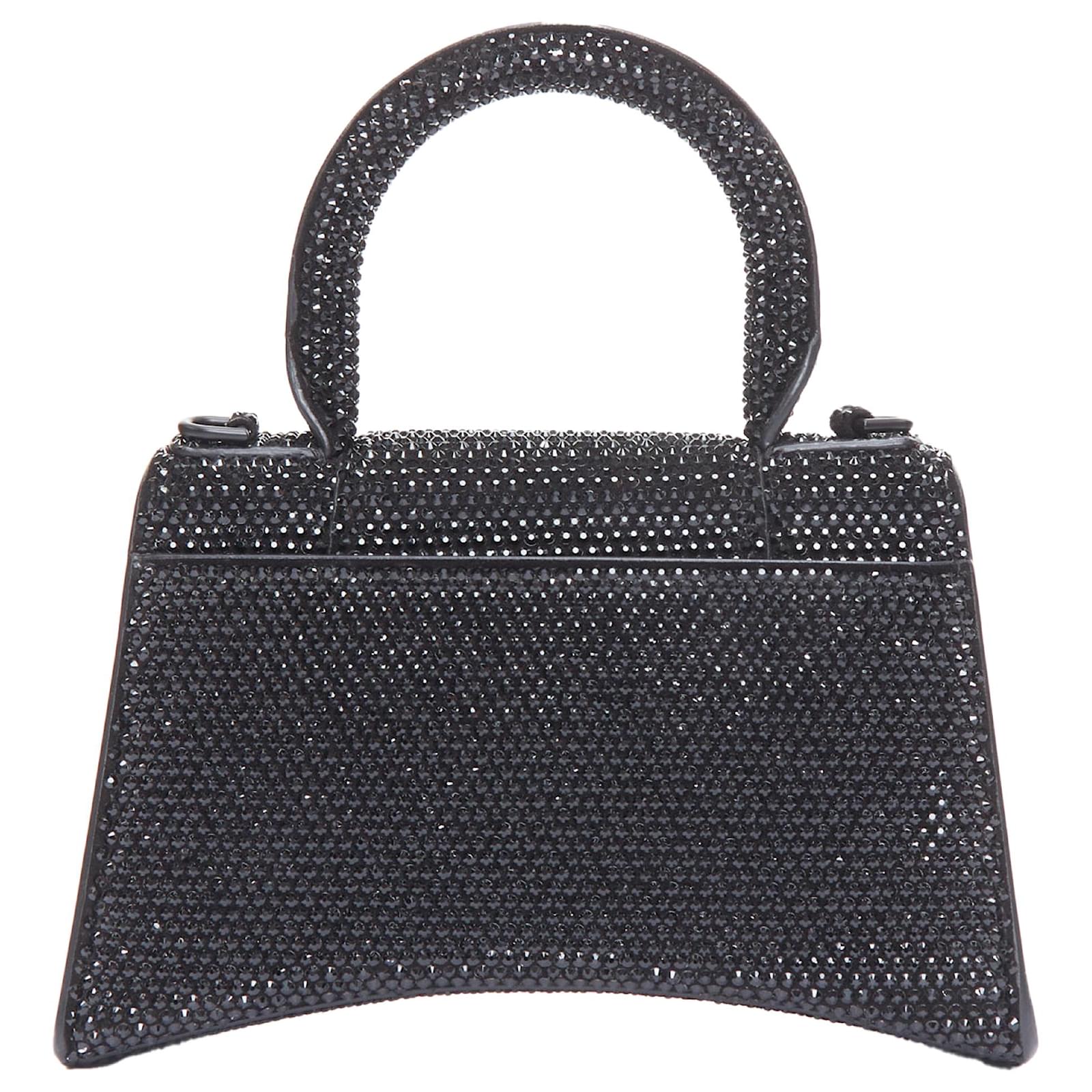 Balenciaga Demna Hourglass XS Strass Crystal Leather Crossbody Bag Black