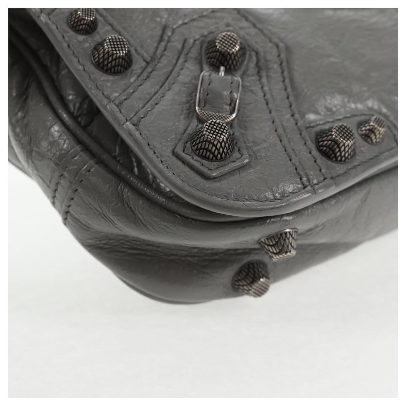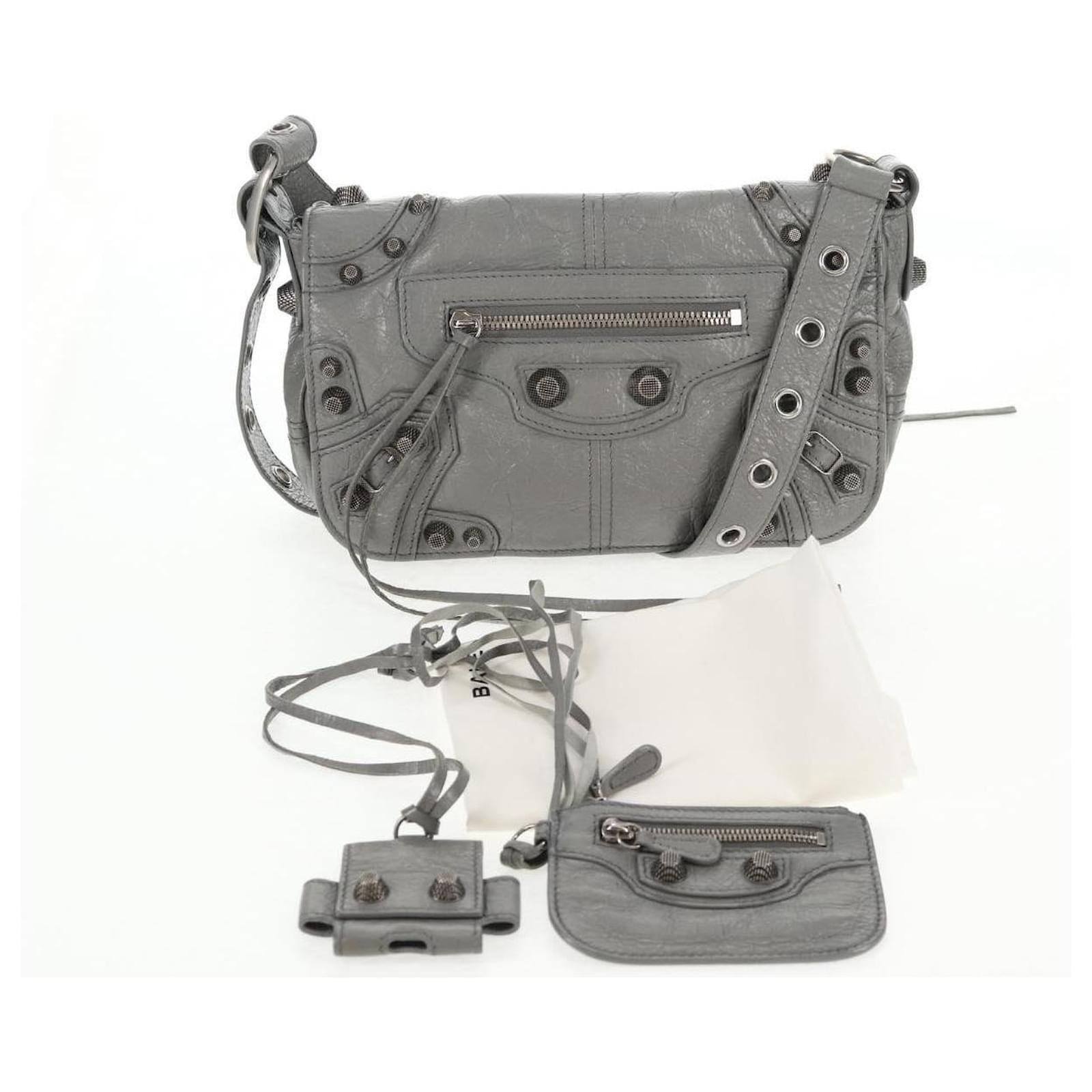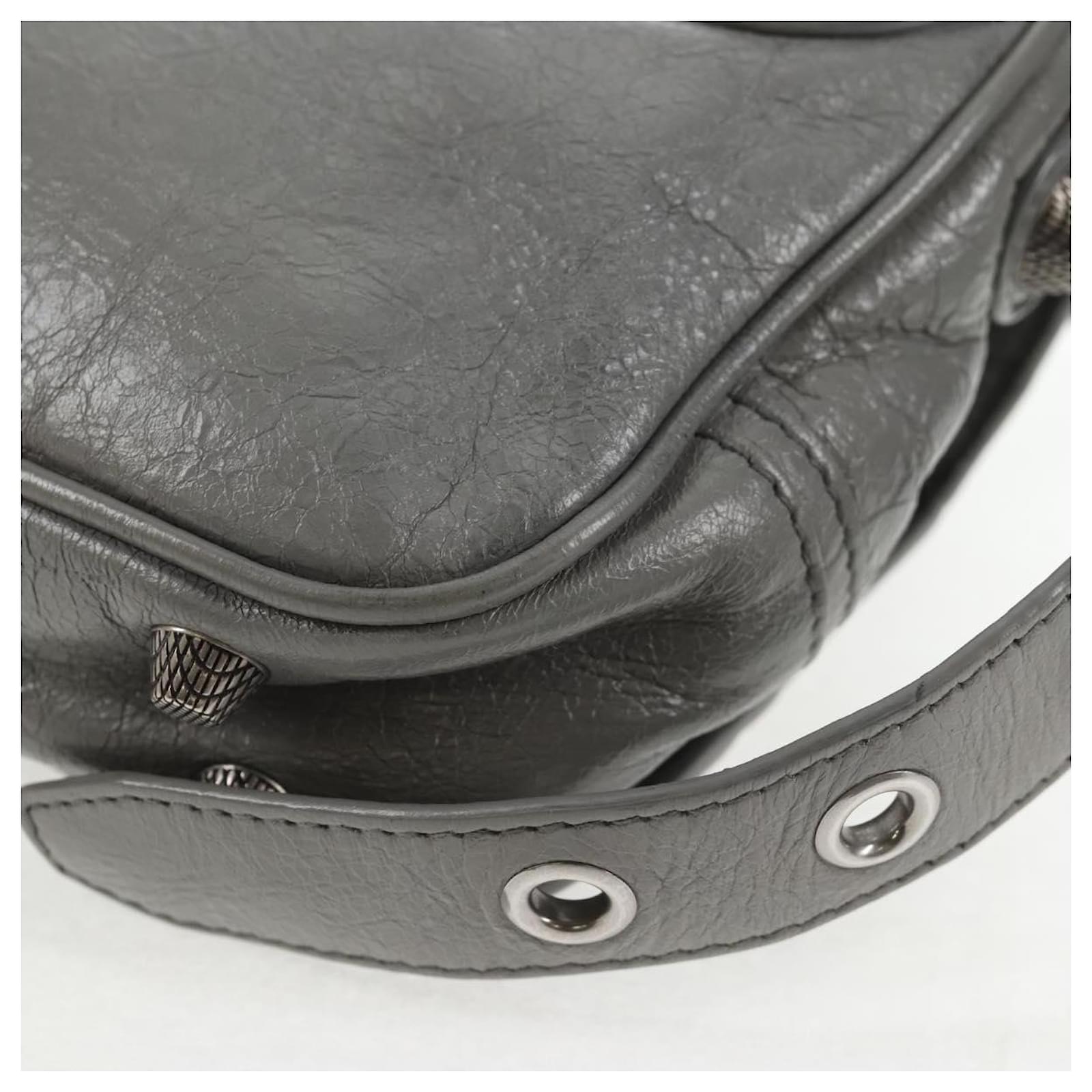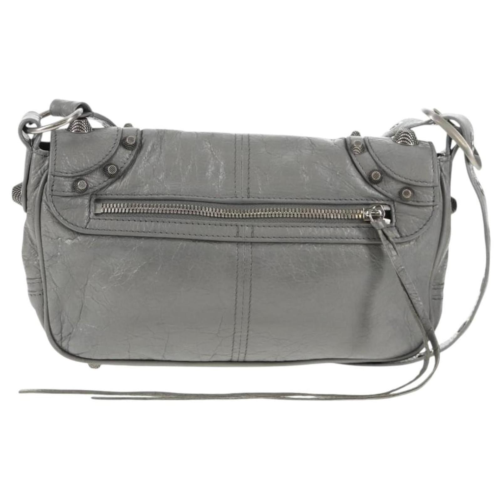 BALENCIAGA Flap Bag XS Shoulder Bag Leather 2way Gray Silver 719082 Auth 128190M Brown Silvery