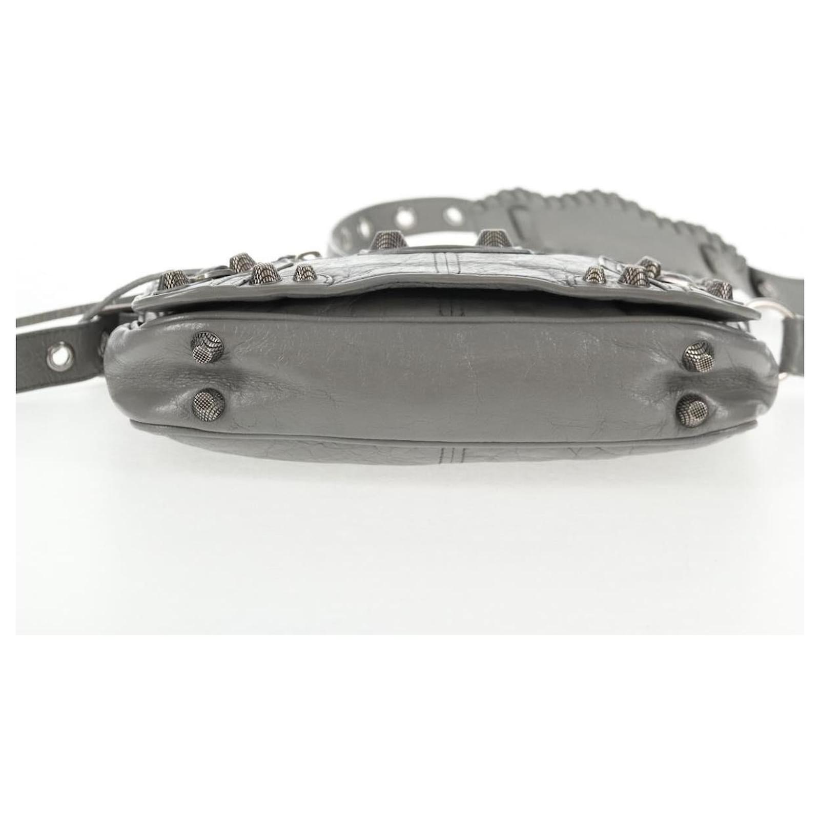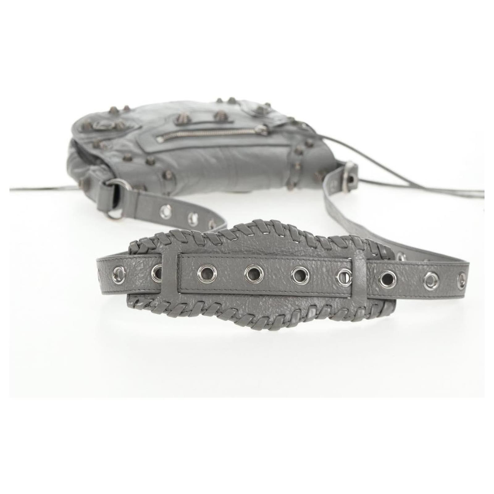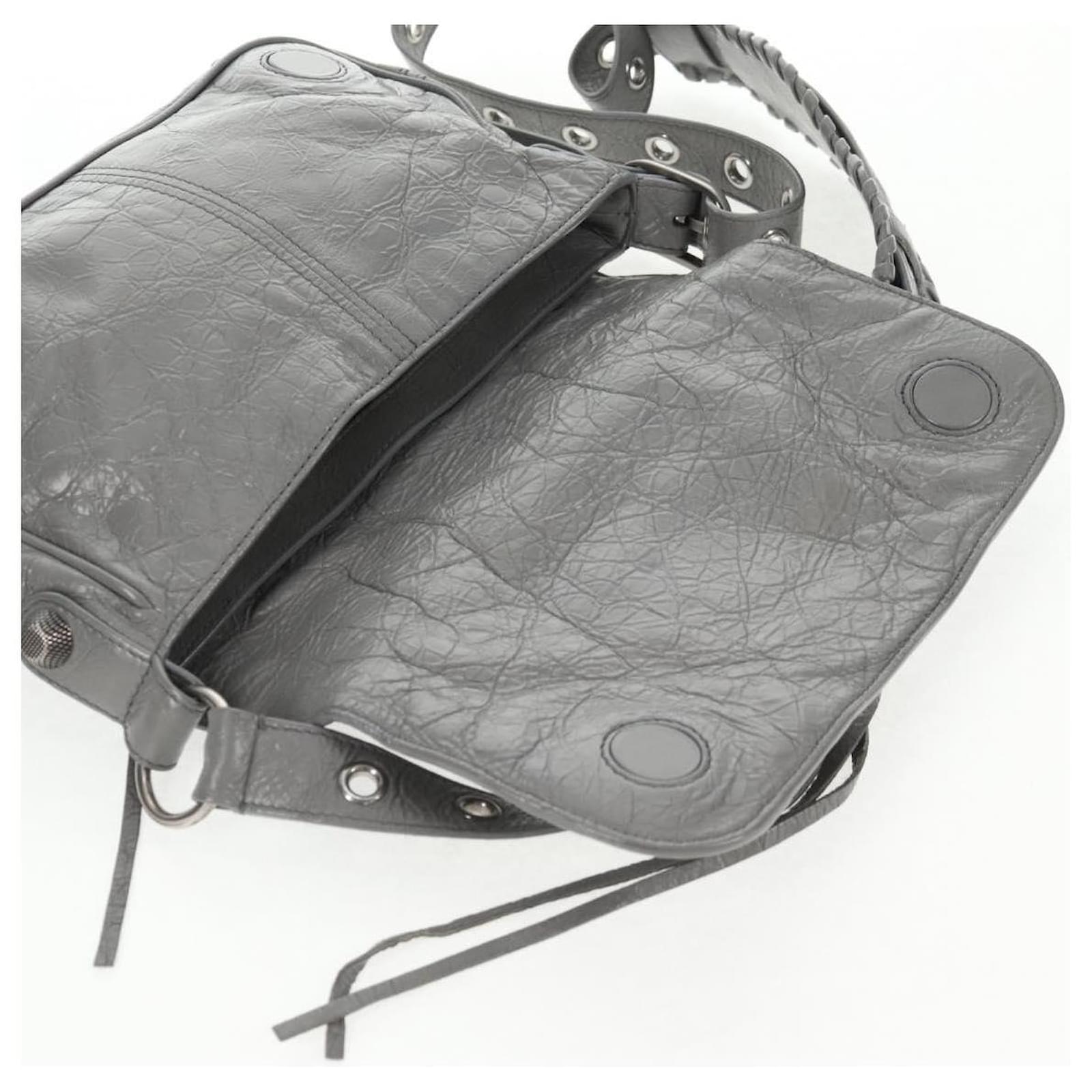 BALENCIAGA Flap Bag XS Shoulder Bag Leather 2way Gray Silver 719082 Auth 128190M Brown Silvery