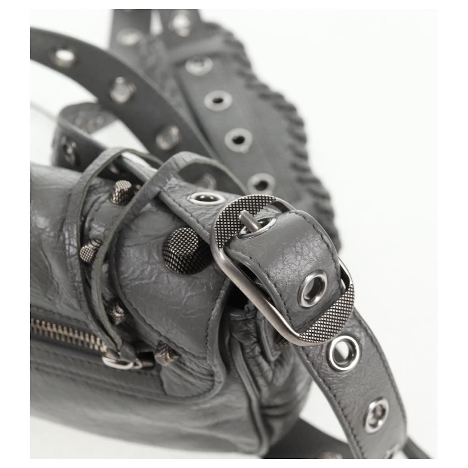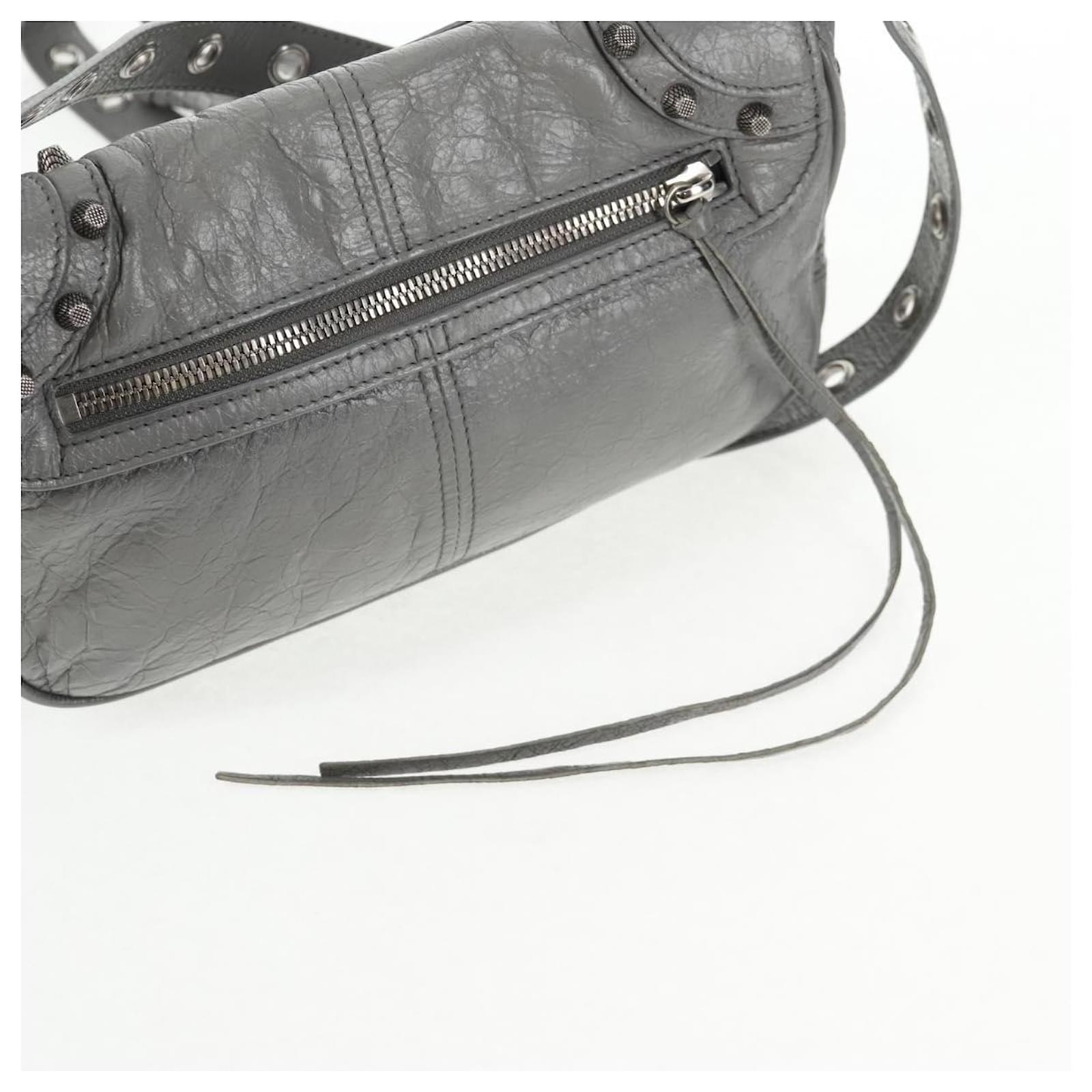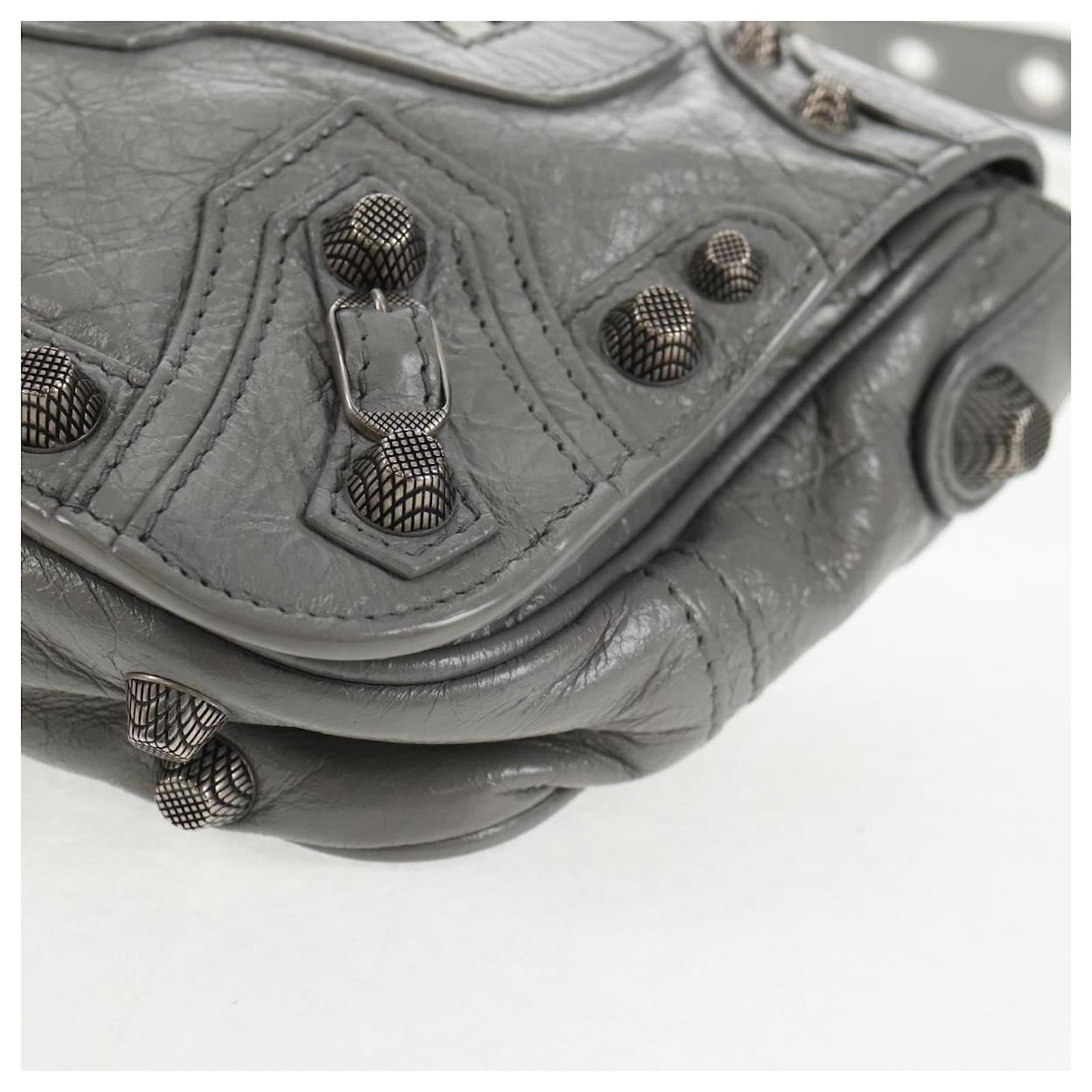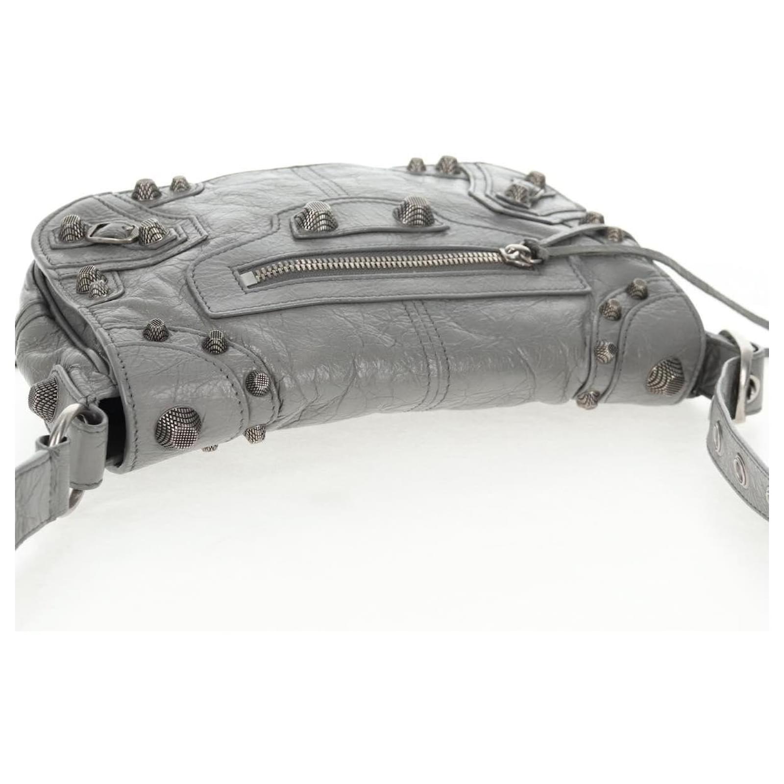 BALENCIAGA Flap Bag XS Shoulder Bag Leather 2way Gray Silver 719082 Auth 128190M Brown Silvery