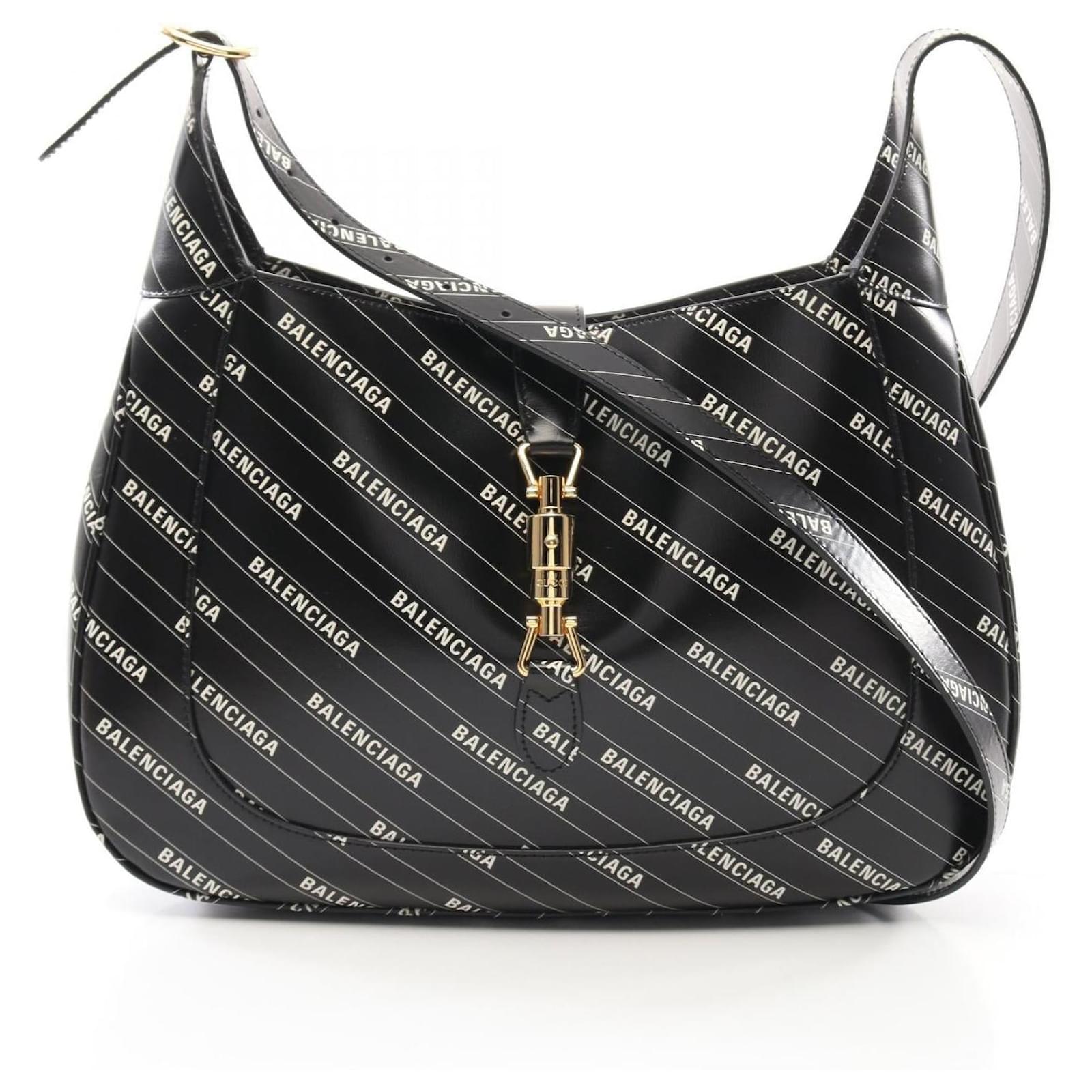 Balenciaga × Gucci Hacker Jackie 1961 Leather Shoulder Bag Black White