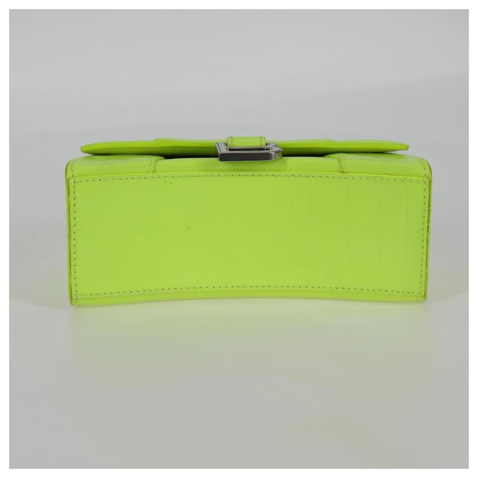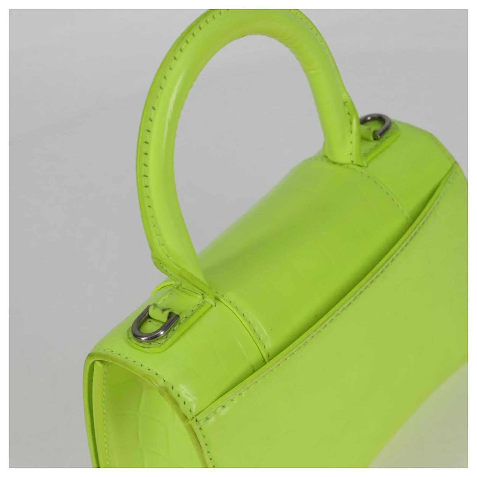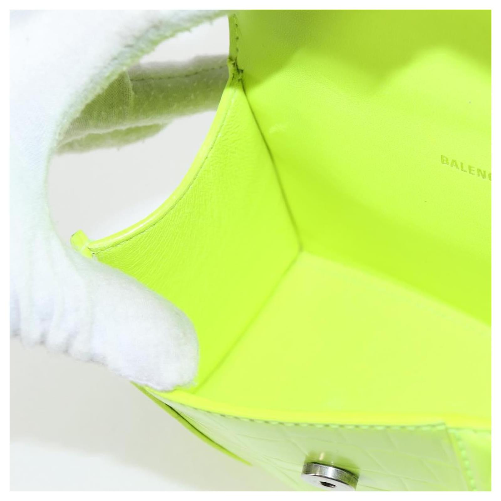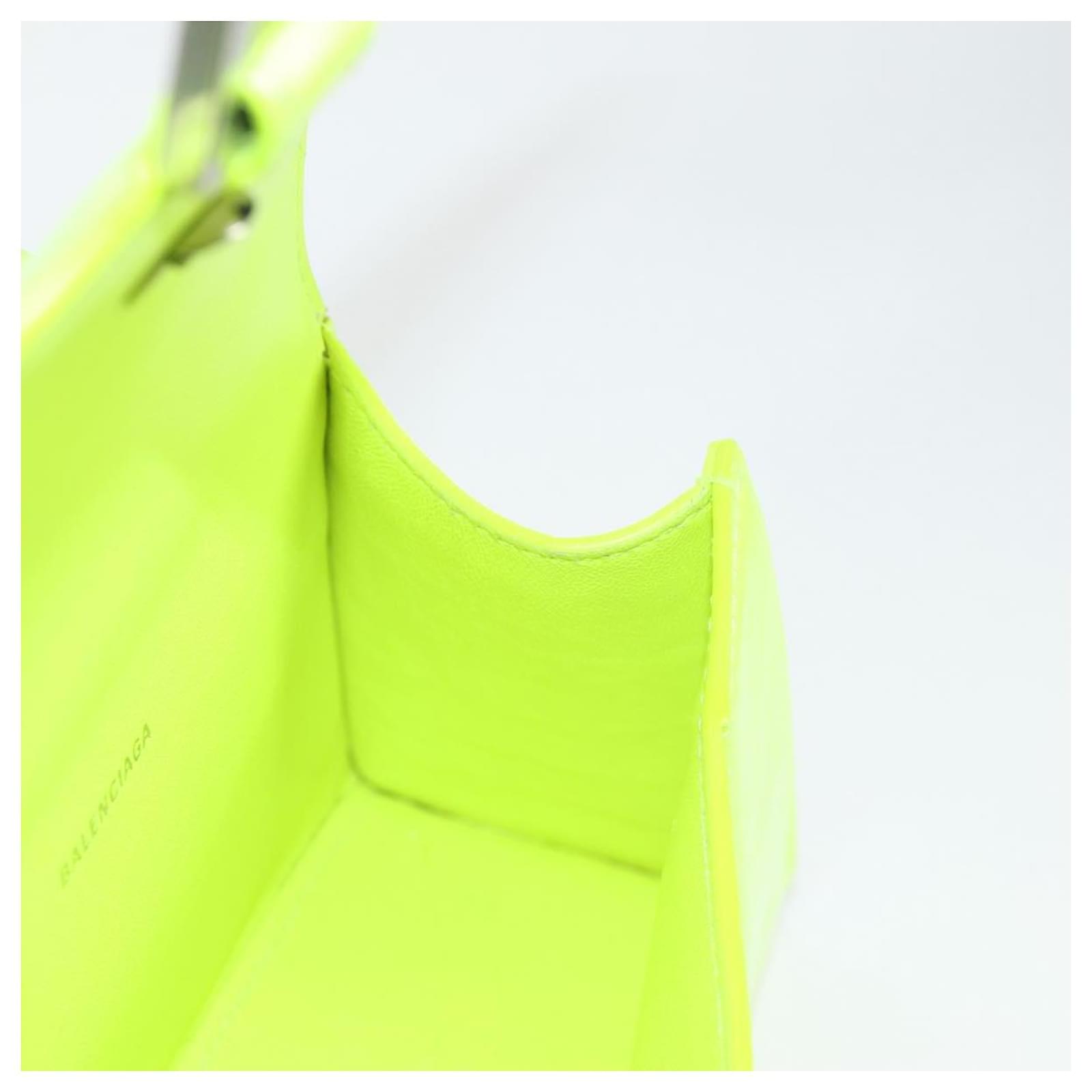 BALENCIAGA Hourglass XS Hand Bag Leather 2way LIme Green 592833 Auth gh137AM Silvery