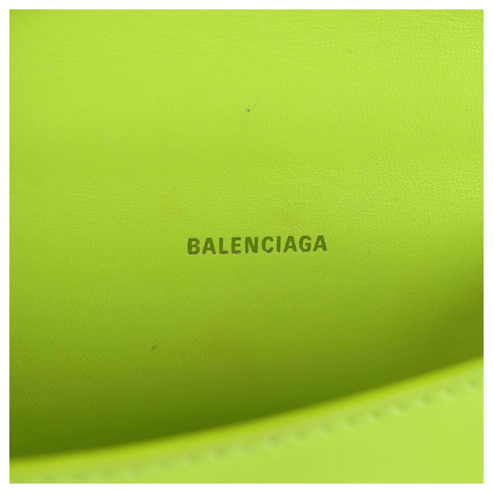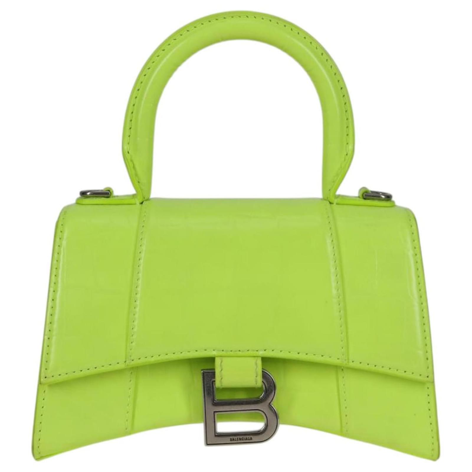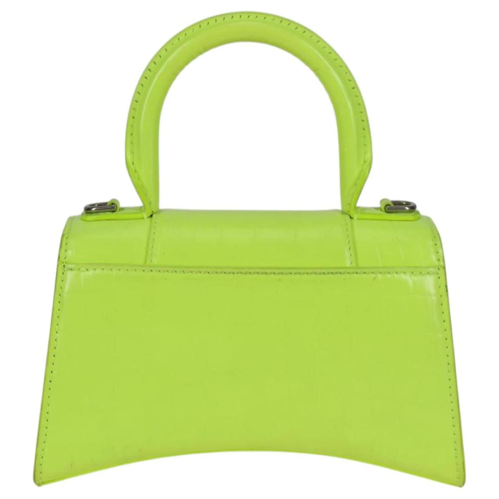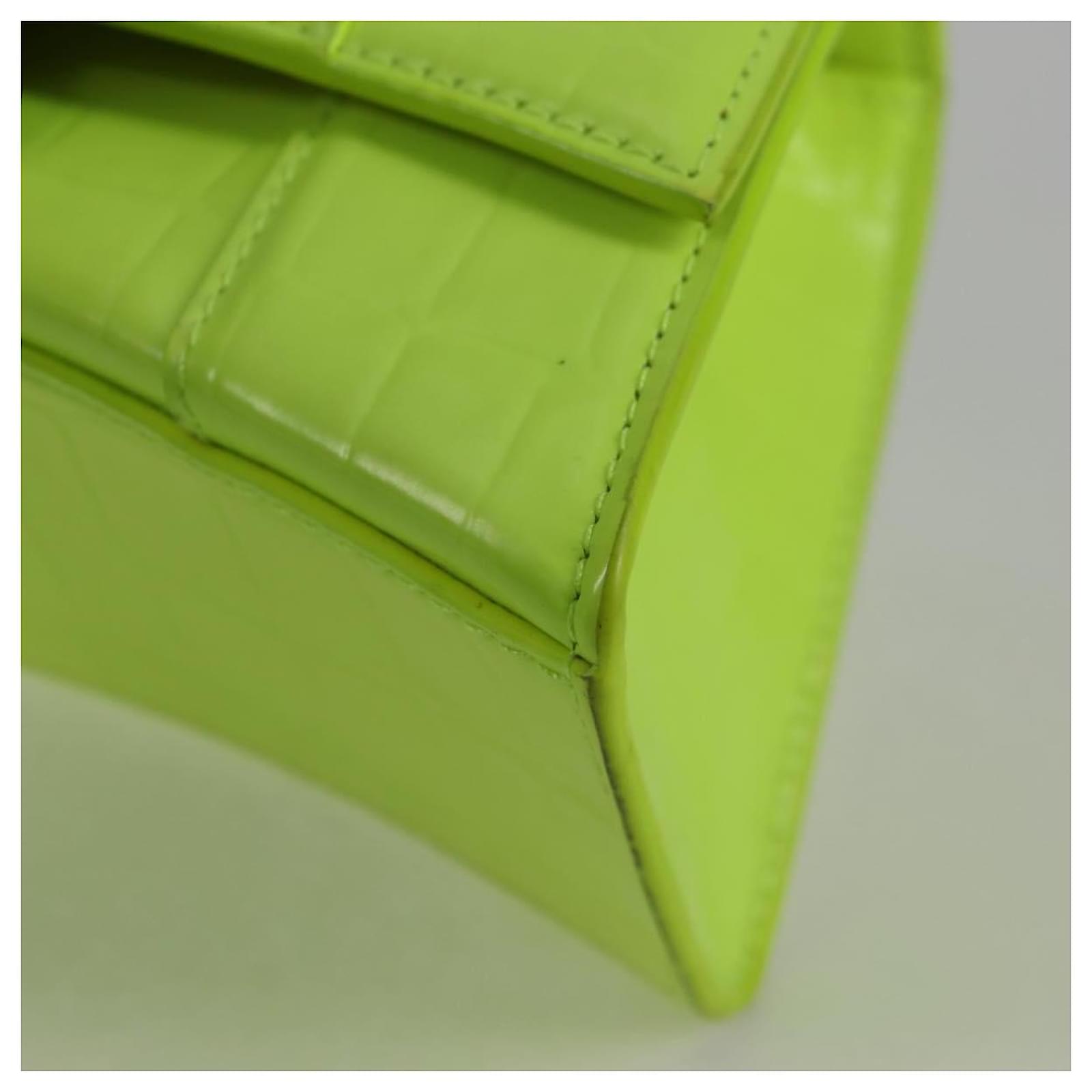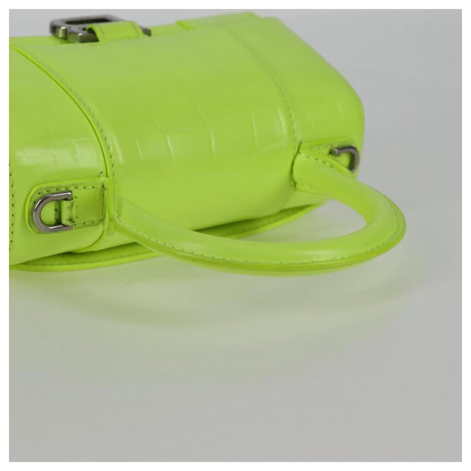 BALENCIAGA Hourglass XS Hand Bag Leather 2way LIme Green 592833 Auth gh137AM Silvery