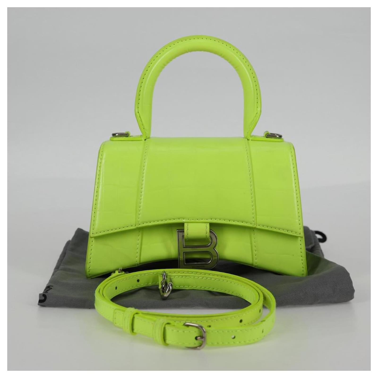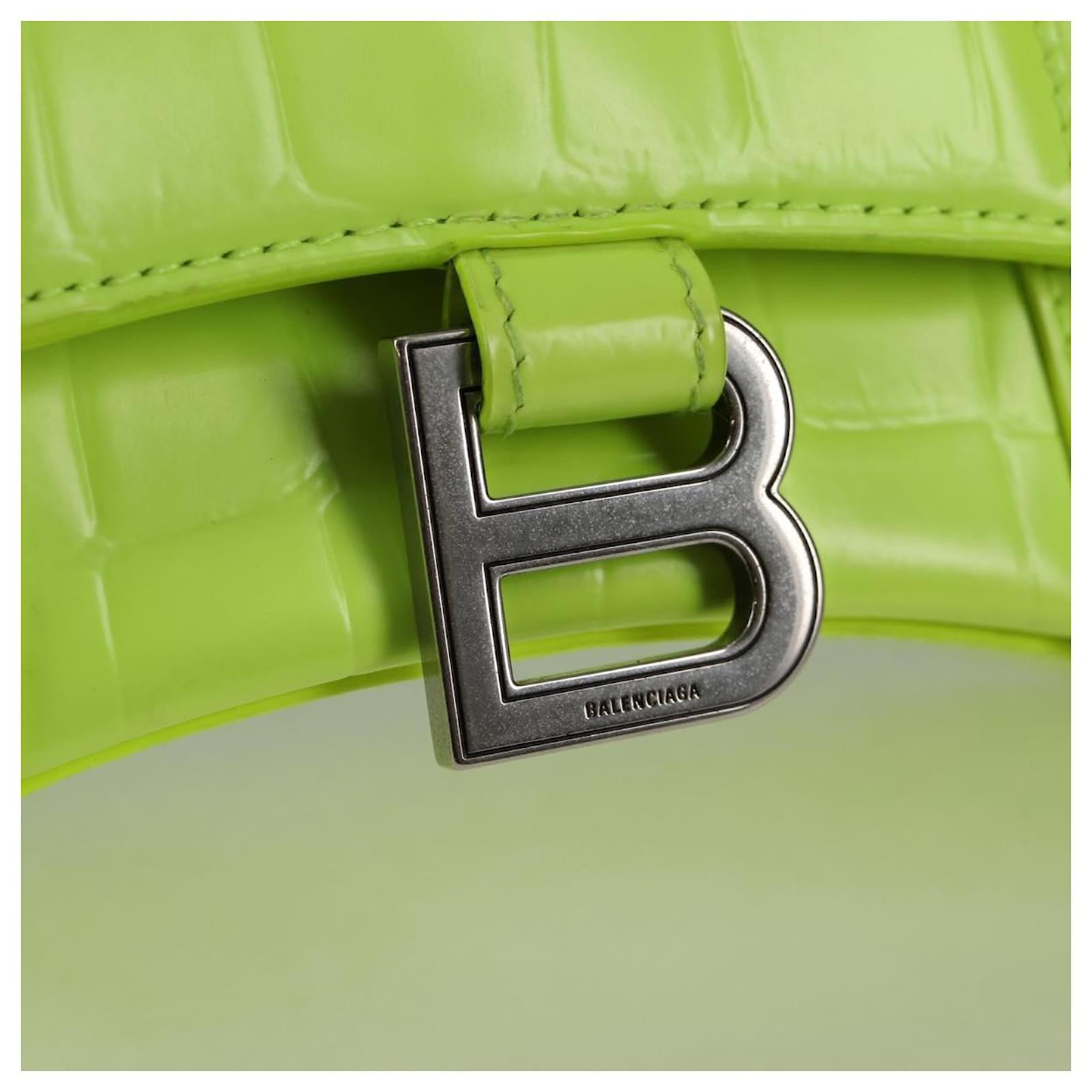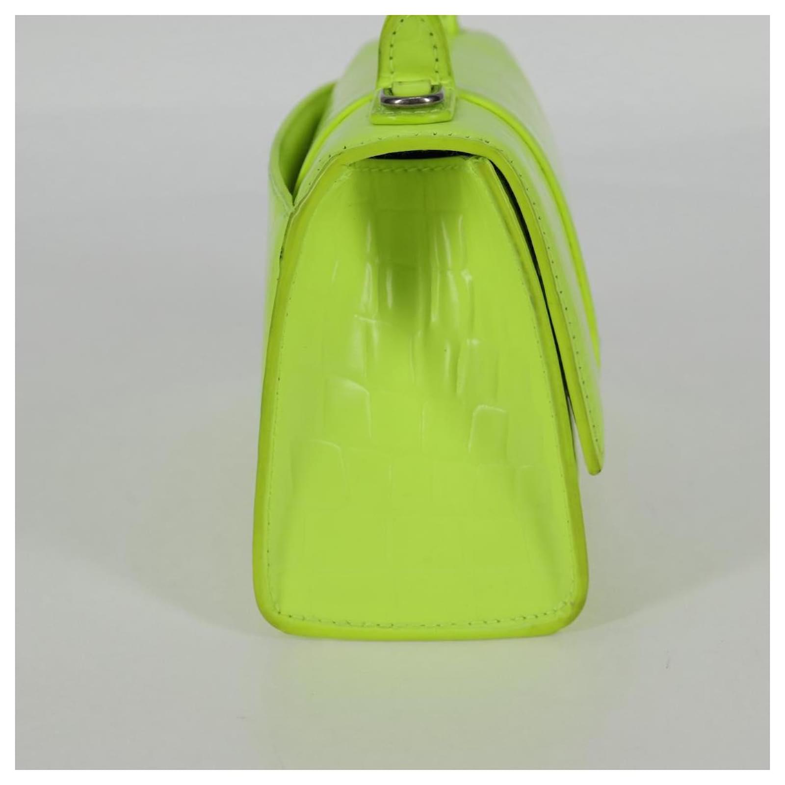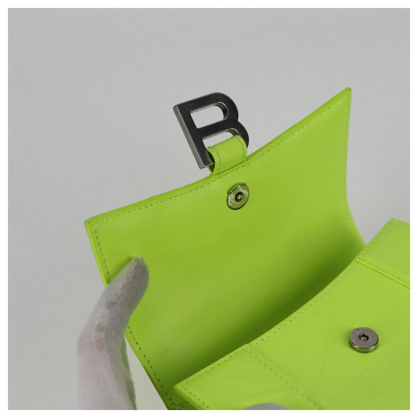 BALENCIAGA Hourglass XS Hand Bag Leather 2way LIme Green 592833 Auth gh137AM Silvery