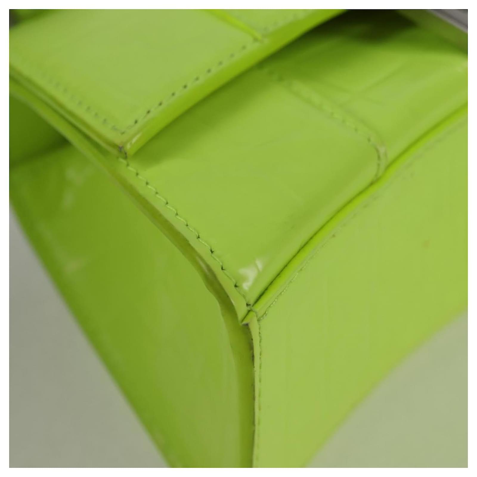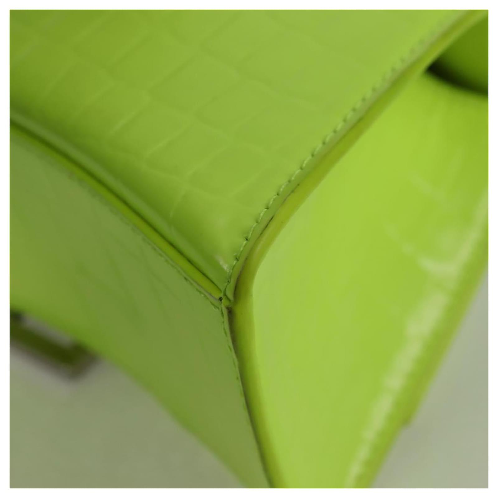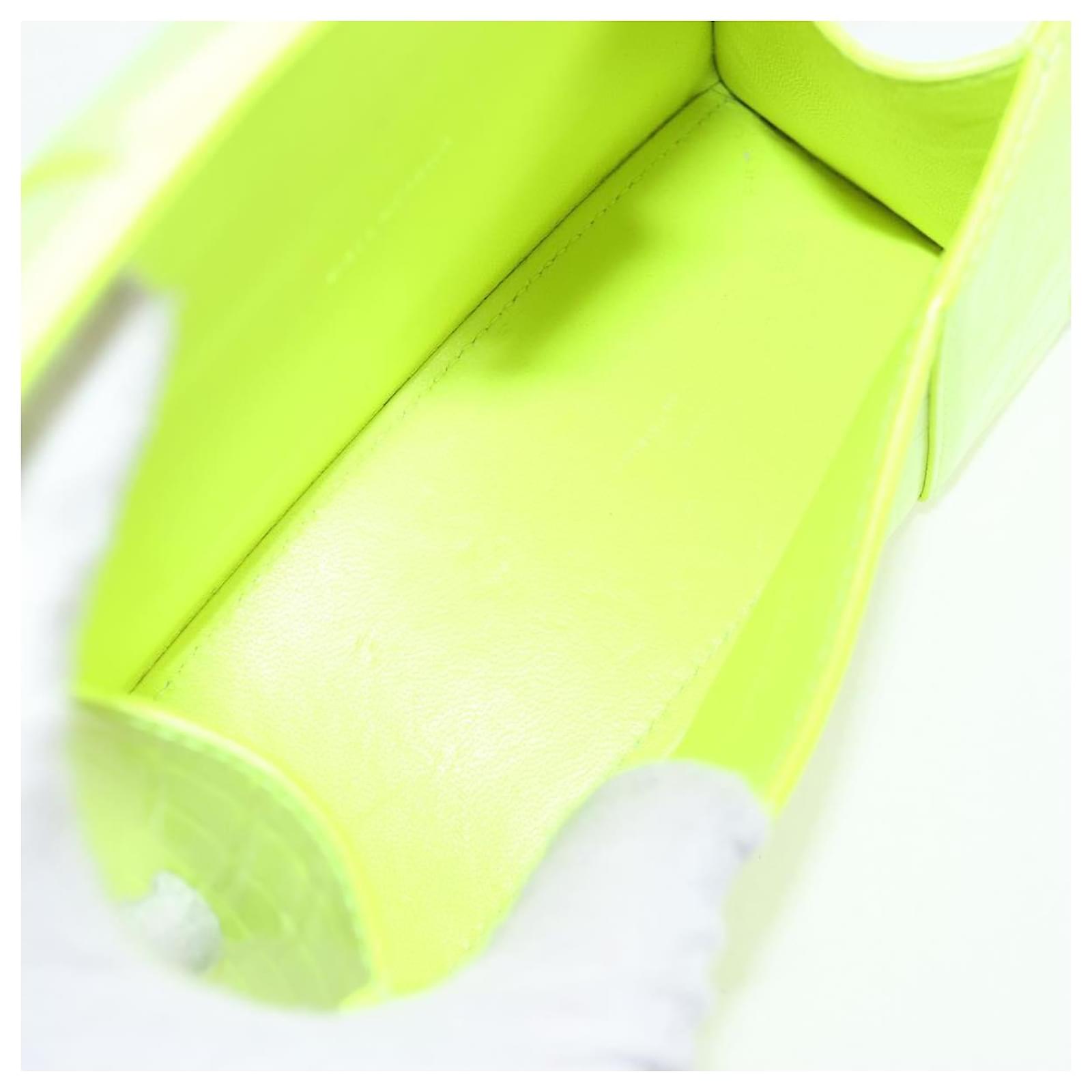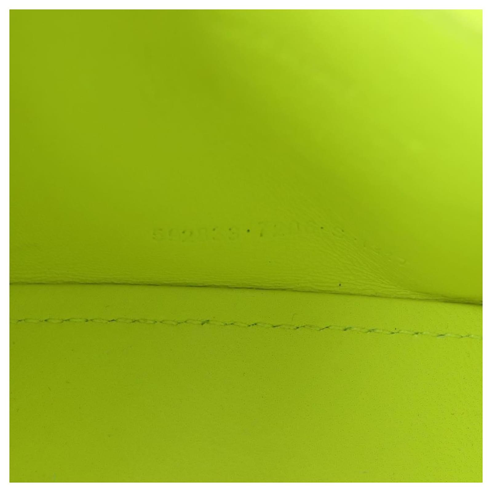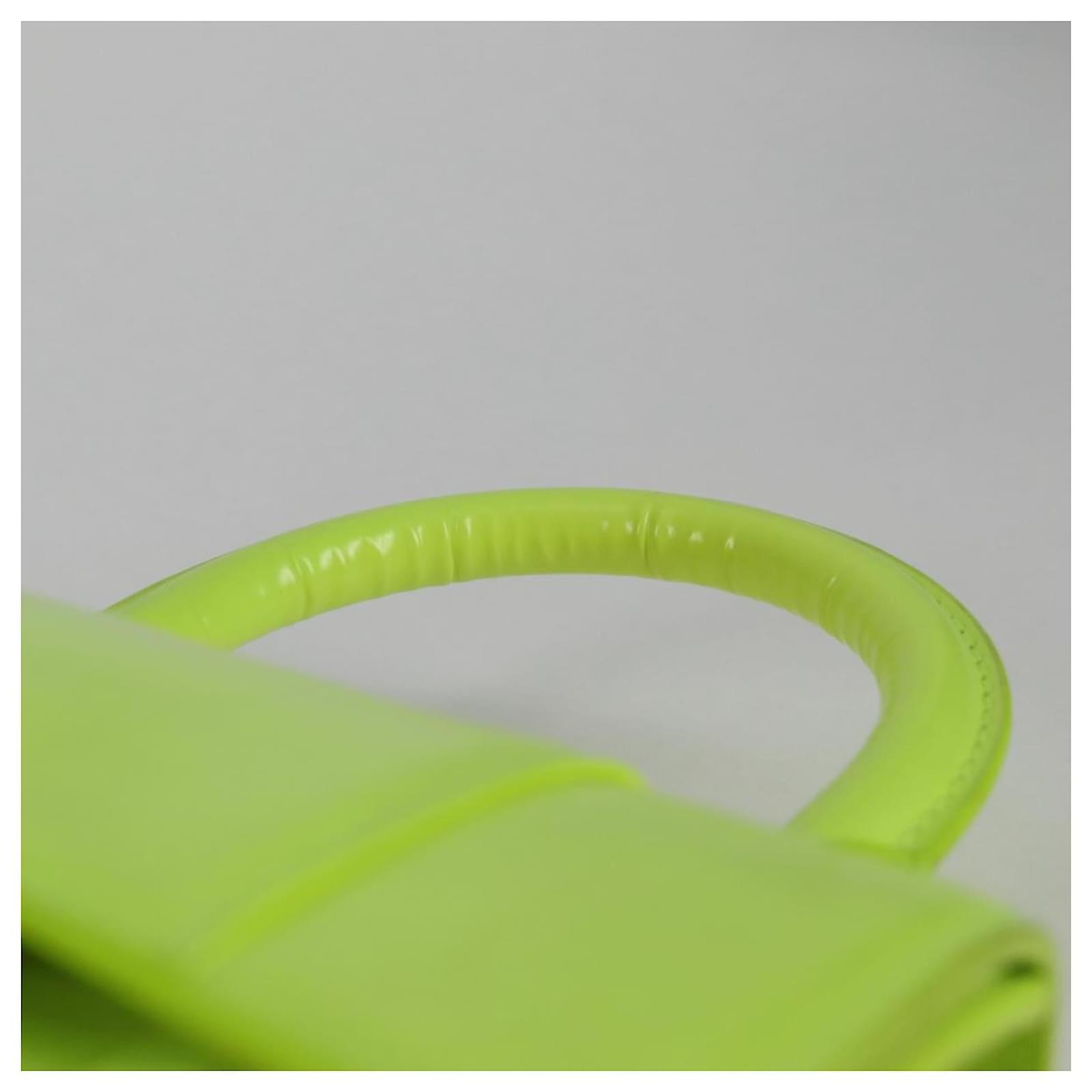 BALENCIAGA Hourglass XS Hand Bag Leather 2way LIme Green 592833 Auth gh137AM Silvery