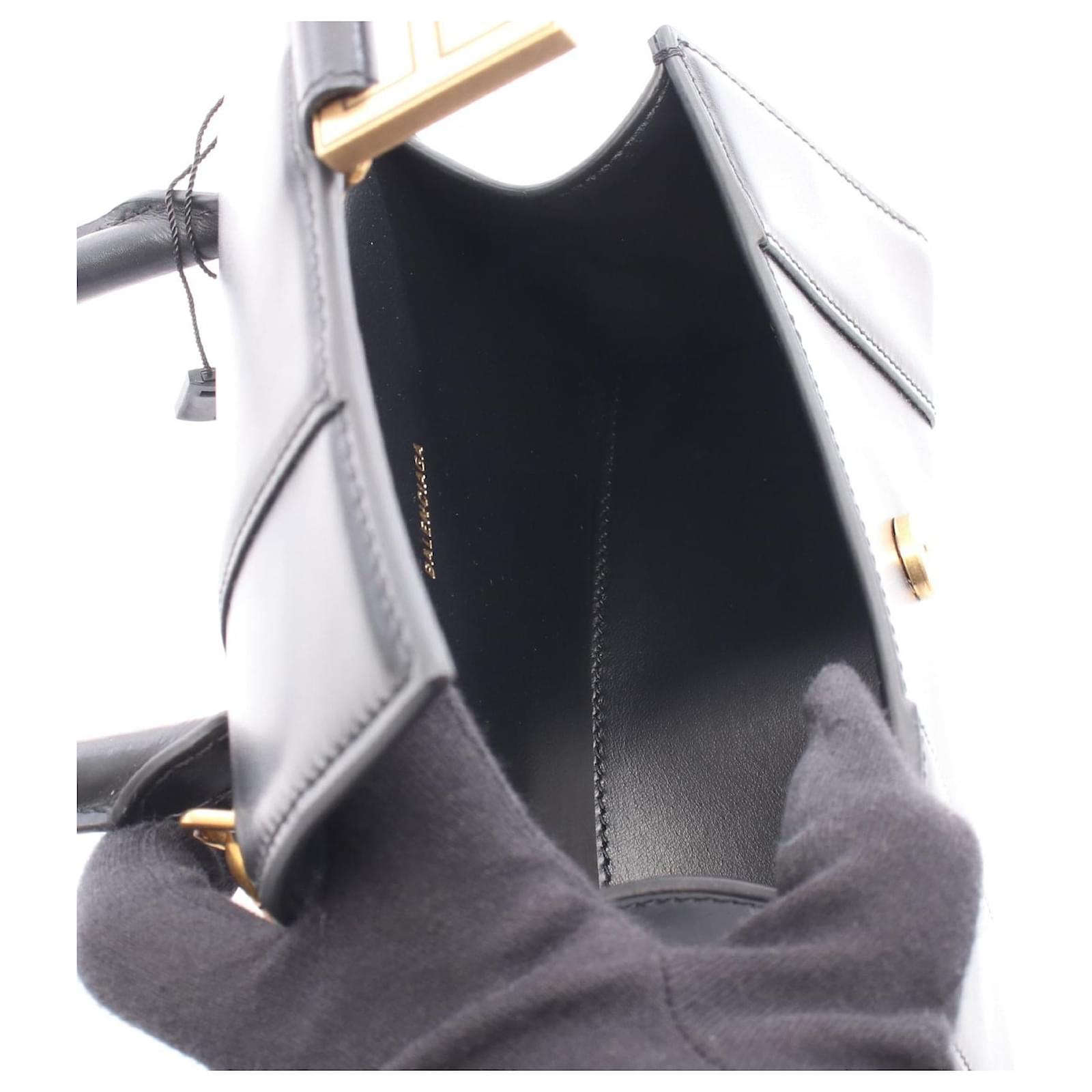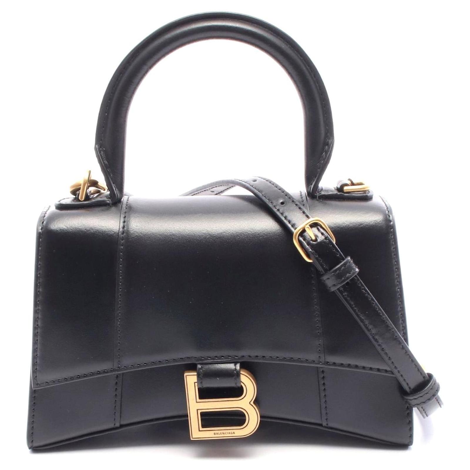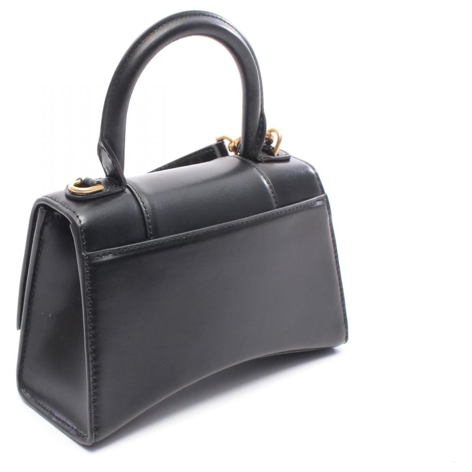Brand Name: Balenciaga; Condition: Pristine; Category: Bag; SubCategory: Handbag; Product Name: Balenciaga Hourglass XS Leather Handbag Black; Model Number: 5928331QJ4M1000; Style: Ladies; Accessories: Shoulder Strap; Height (cm): 12; Width (cm): 7; Length (cm): 19; Color: Black; Material: Leather; Measurments: width: 70 mm length: 190 mm height: 120 mm strap length: 0 mm handle drop: 0 mm