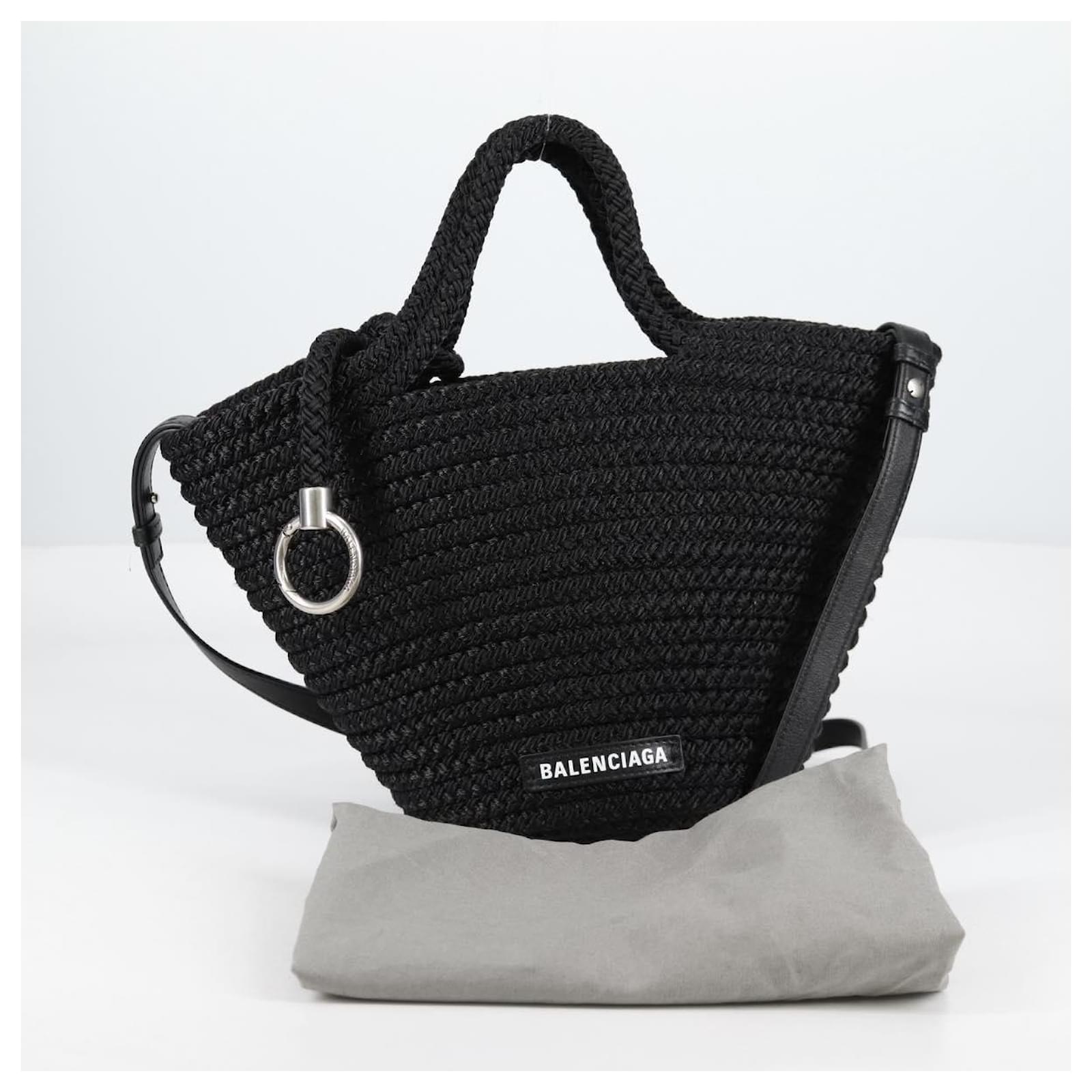 BALENCIAGA Ibiza Small Shoulder Bag Nylon Black Silver 695612 Auth ac3862M Silvery