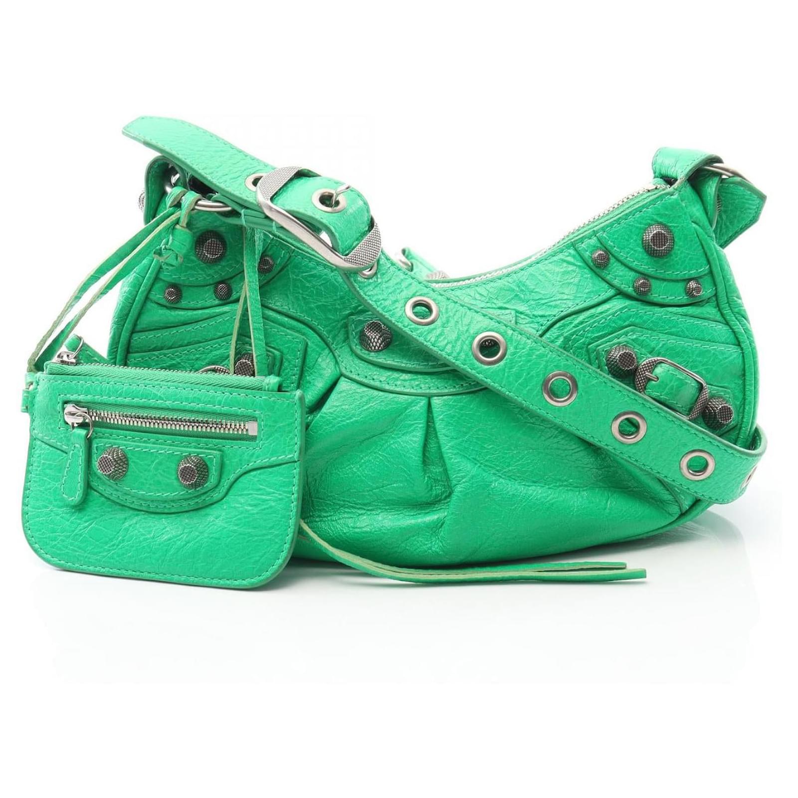 Everyday Balenciaga LE CAGOLE Leather Shoulder Bag Green