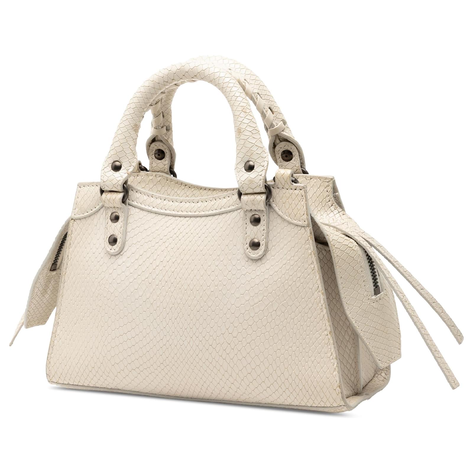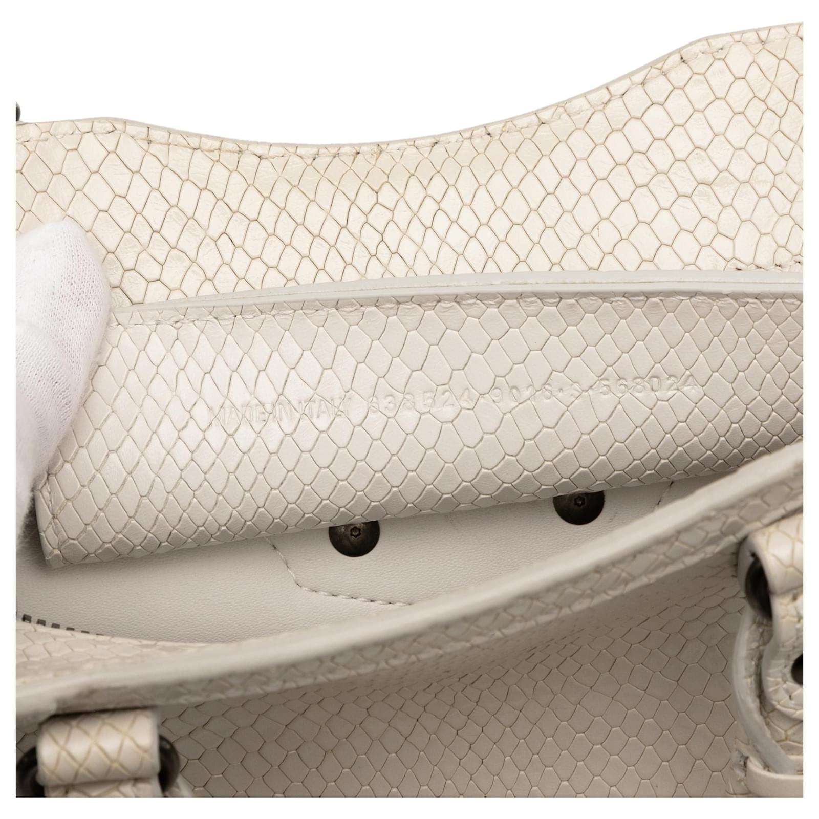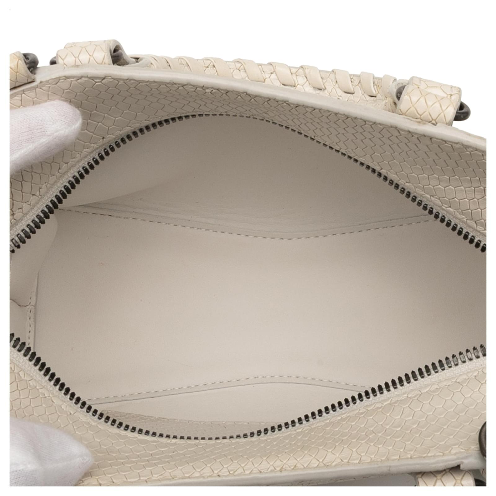 Balenciaga White Mini Python Embossed Calfskin Neo Classic City Satchel Cream