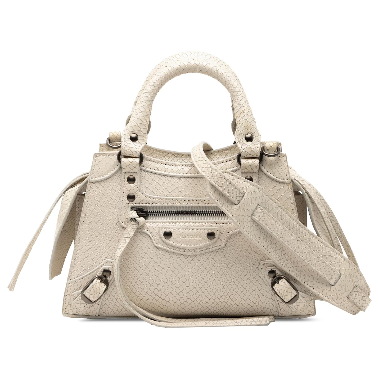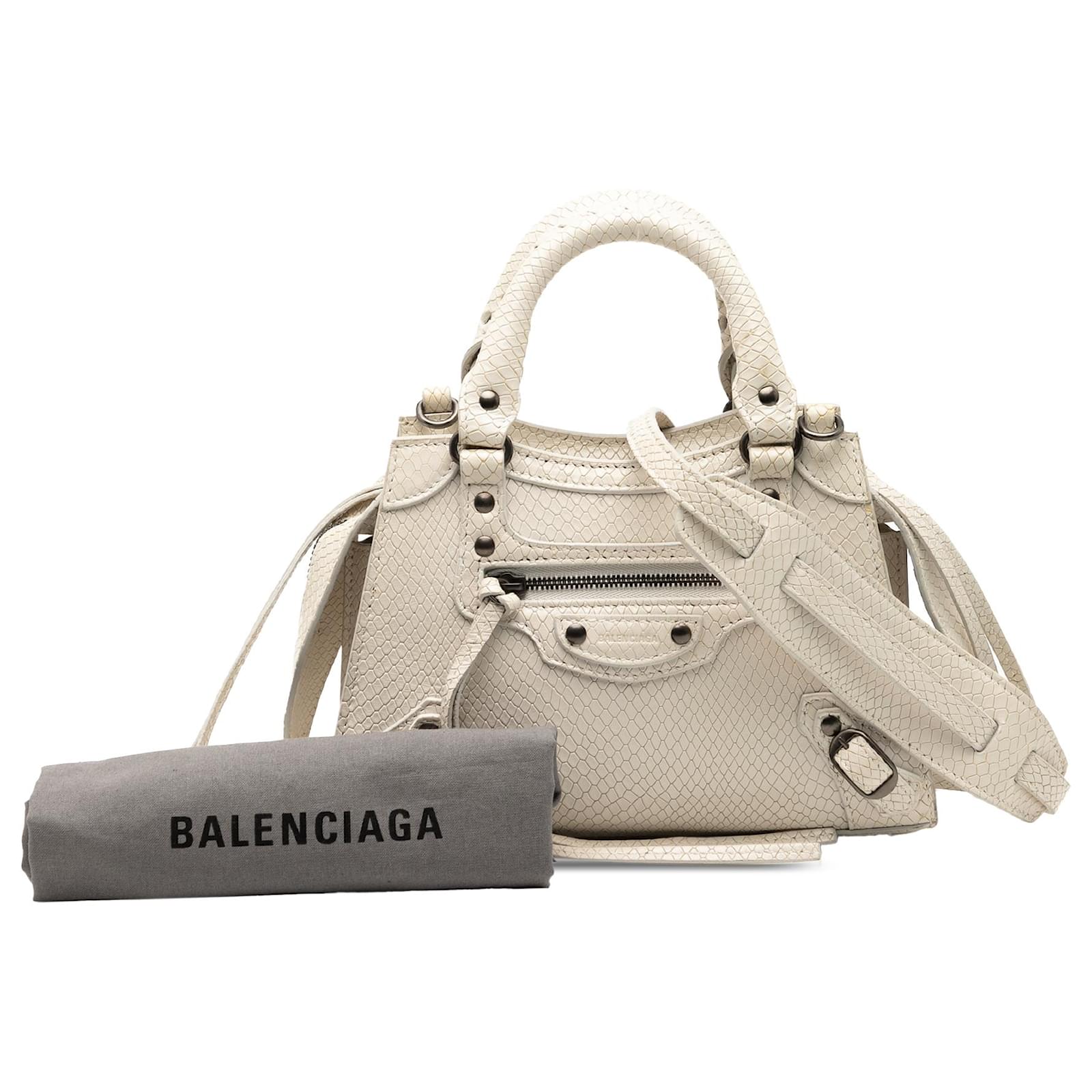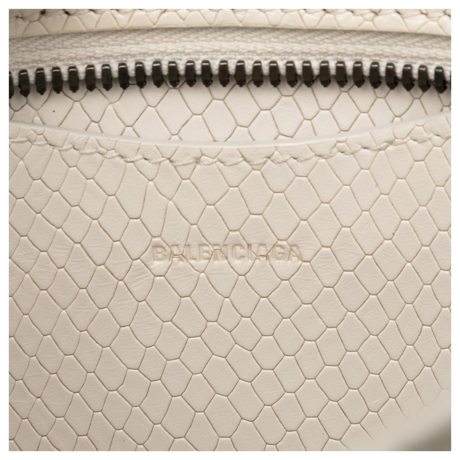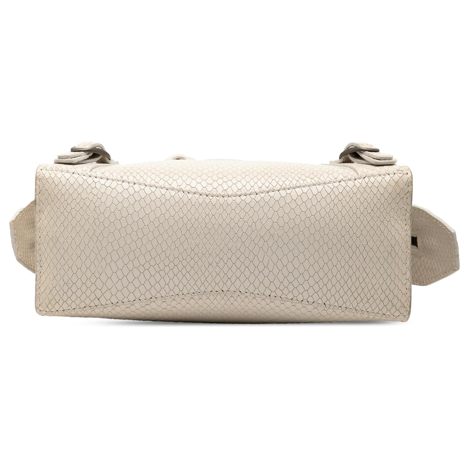 Balenciaga White Mini Python Embossed Calfskin Neo Classic City Satchel Cream