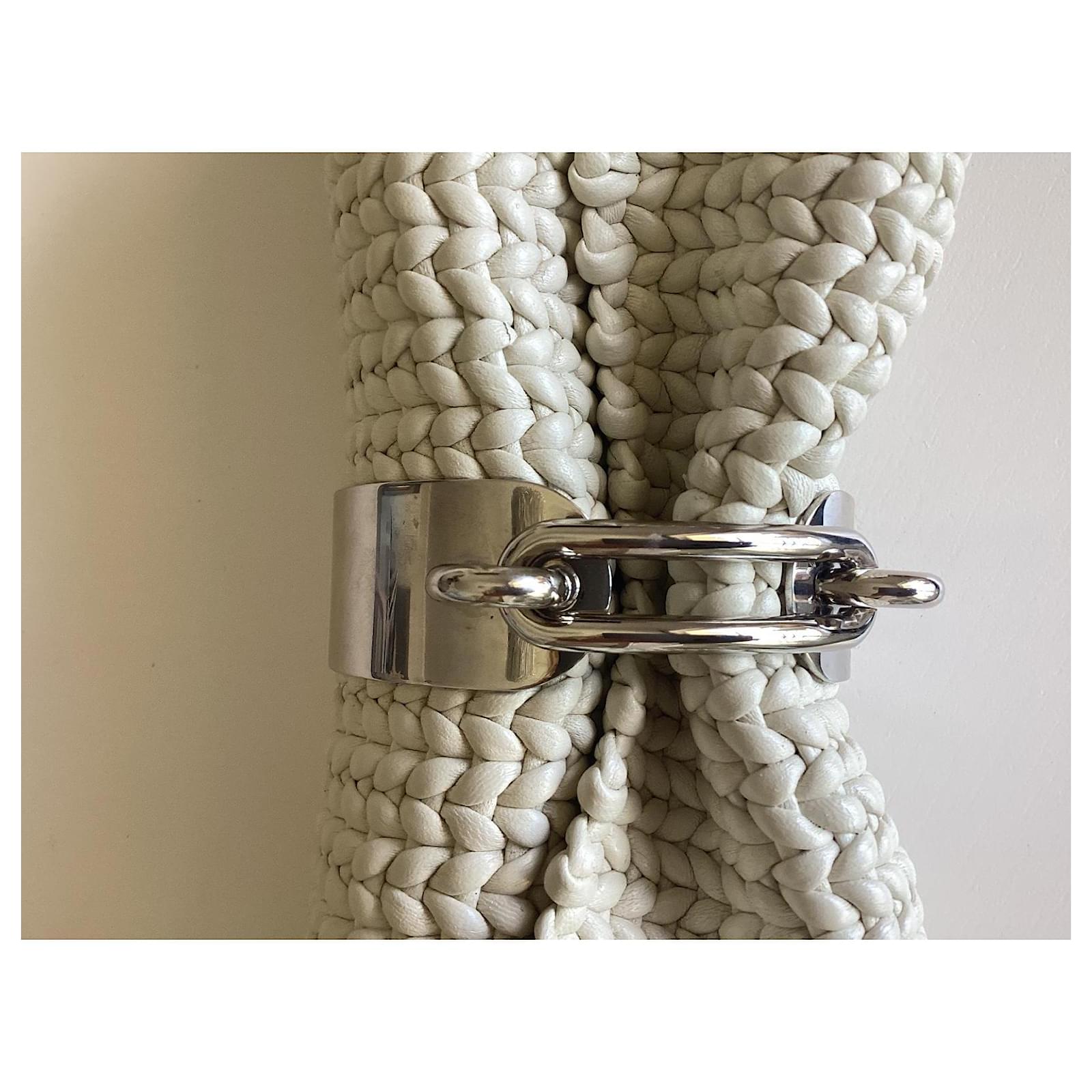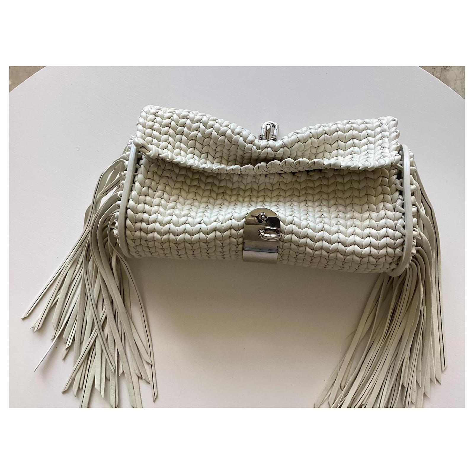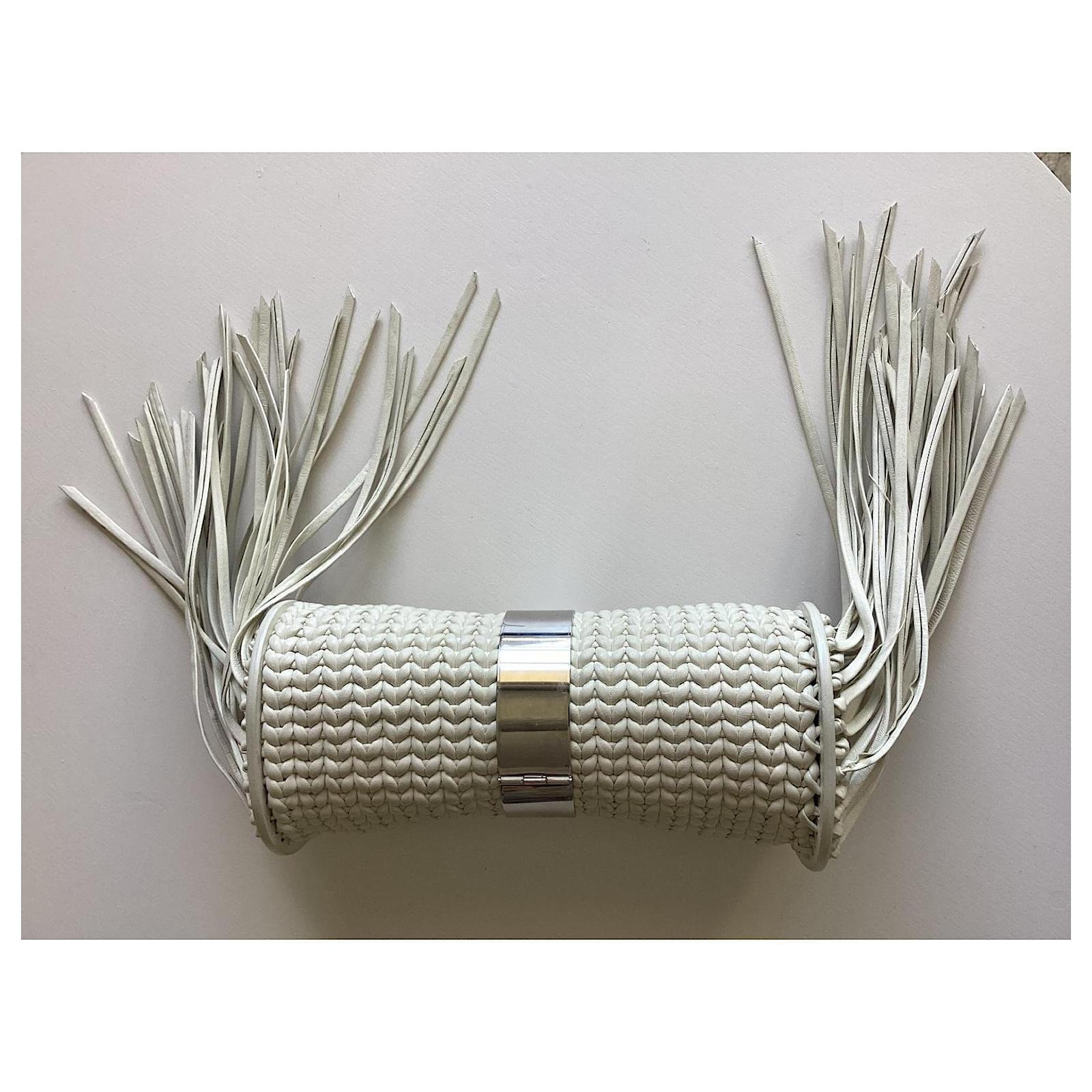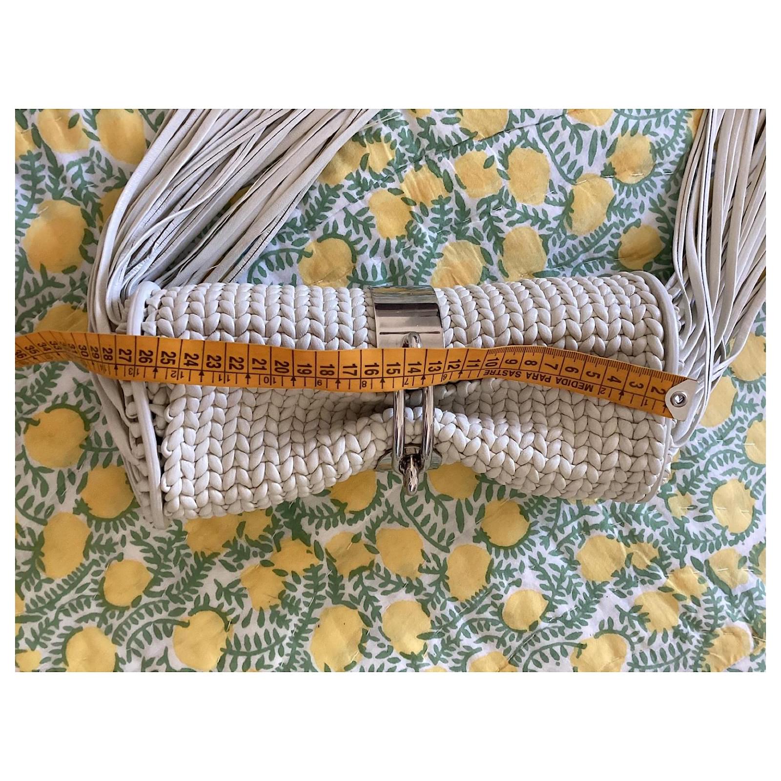 Spectacular cylindrical hand bag in braided leather with long side fringes from the latest collection of Alexander Wang for Balenciaga. Like new. Measurements in photos.