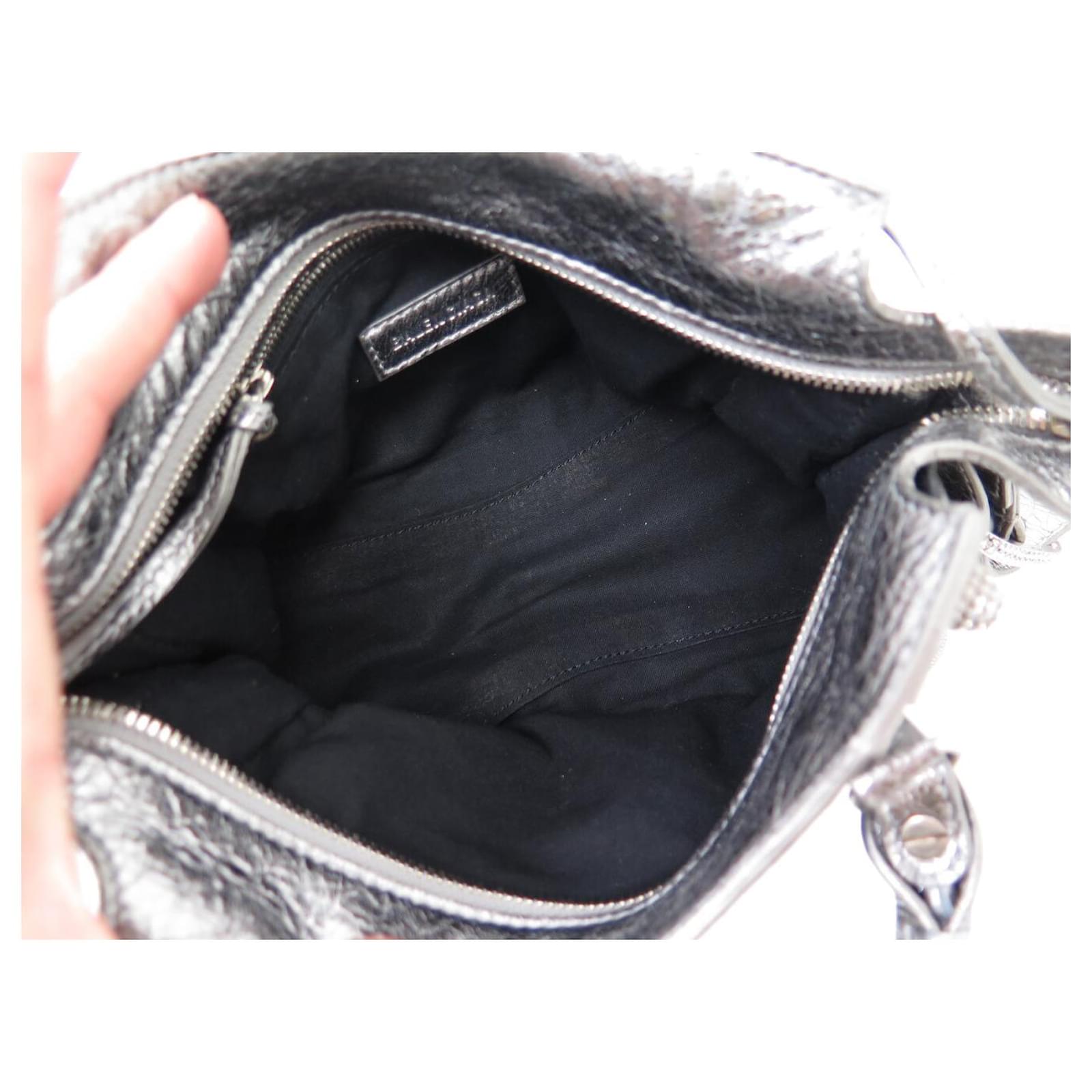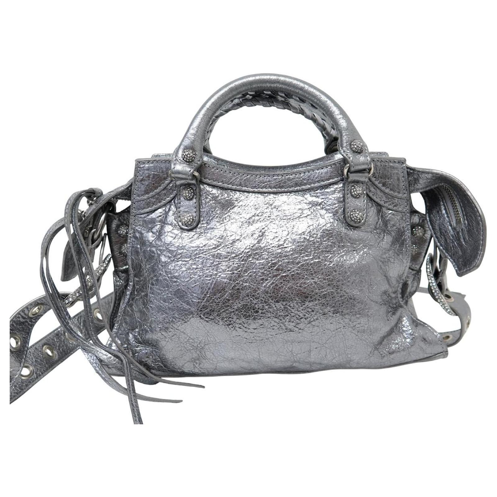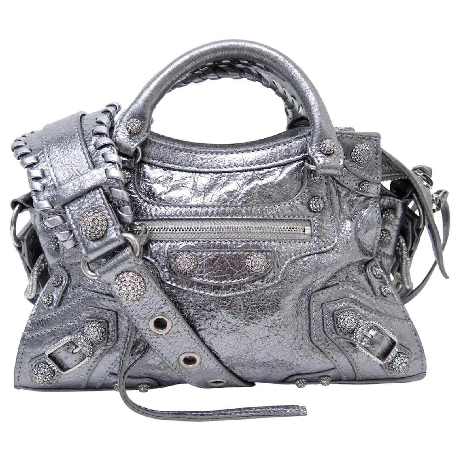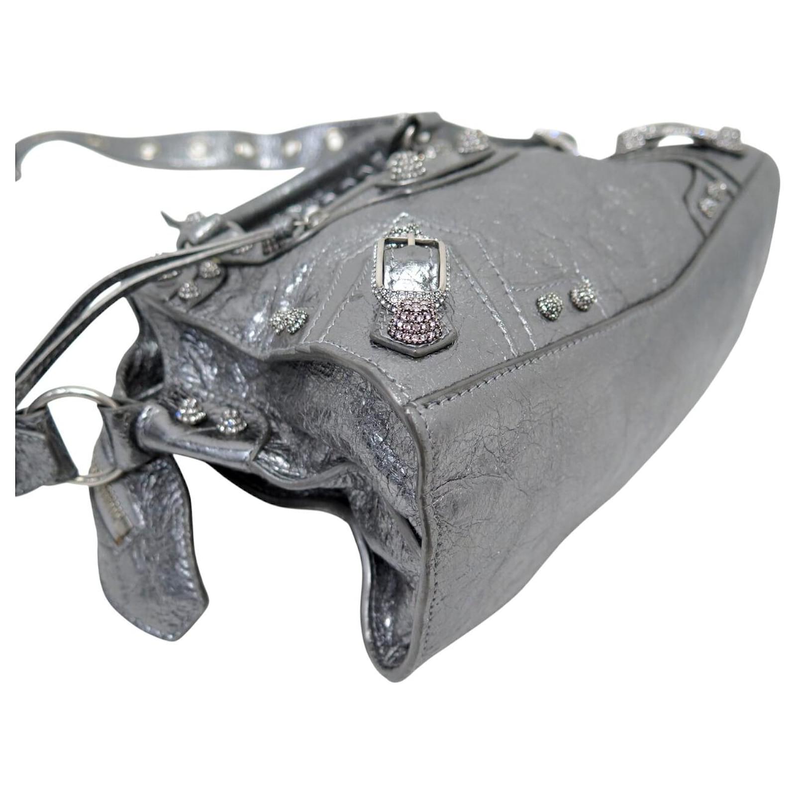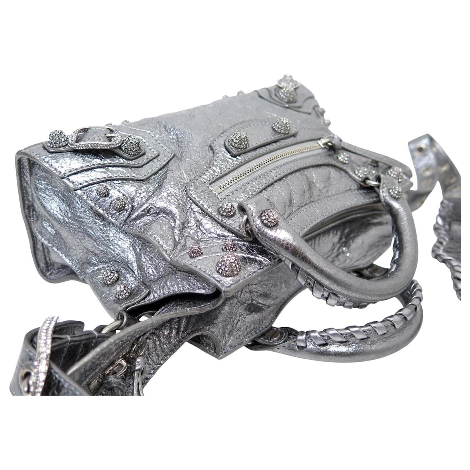 NEW BALENCIAGA NEO CAGOLE XS 700940 LEATHER SHOULDER BAG Silvery