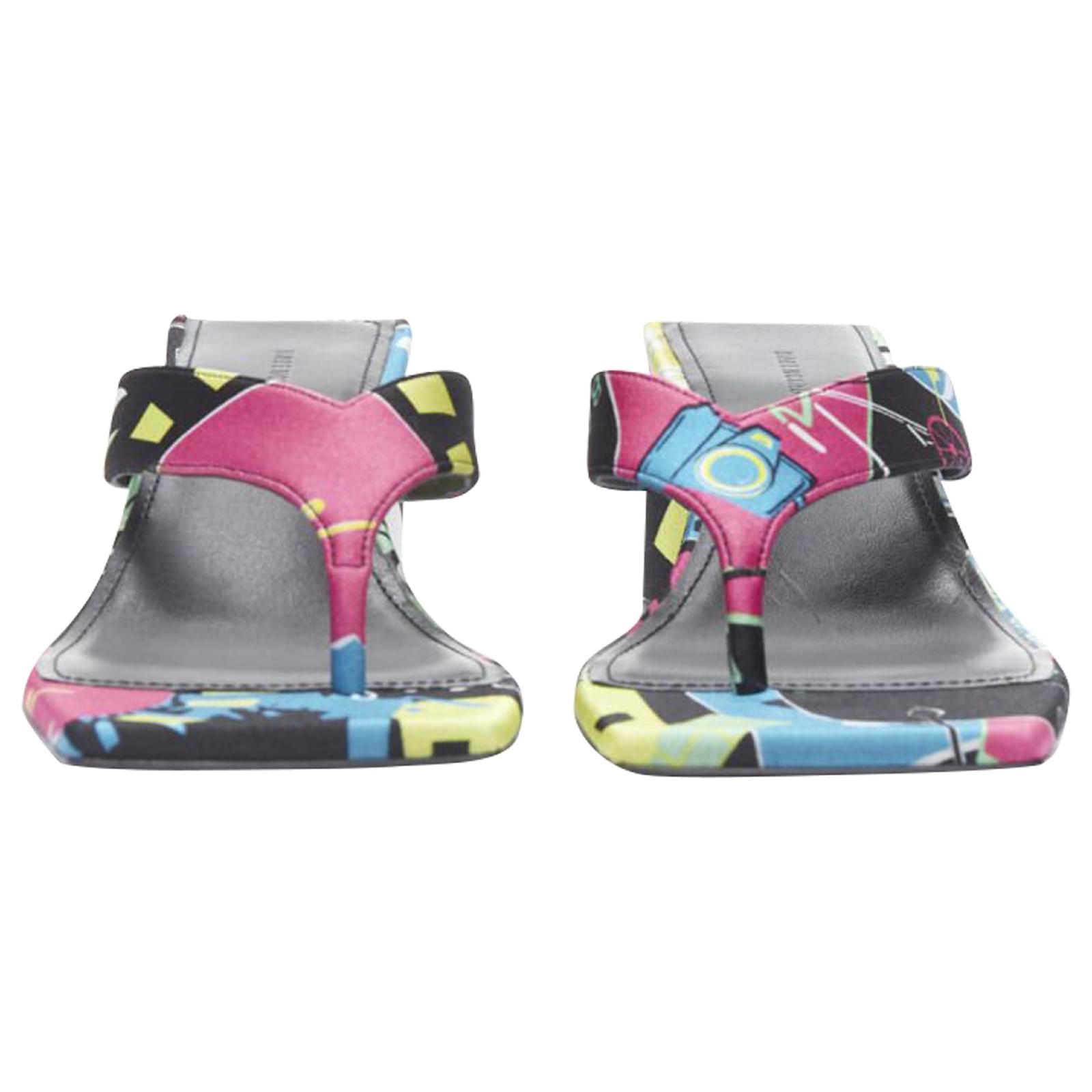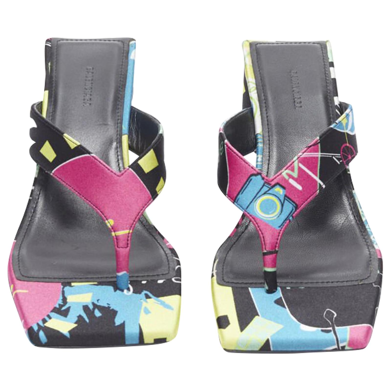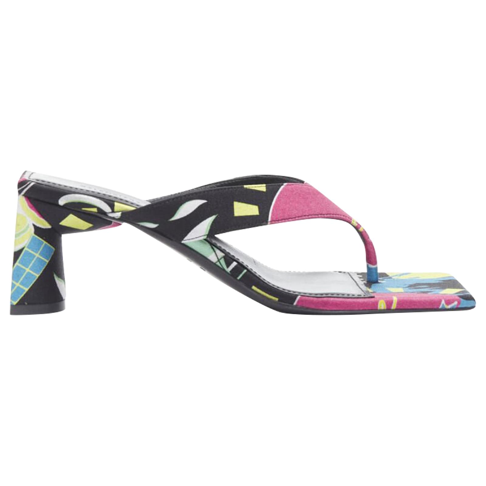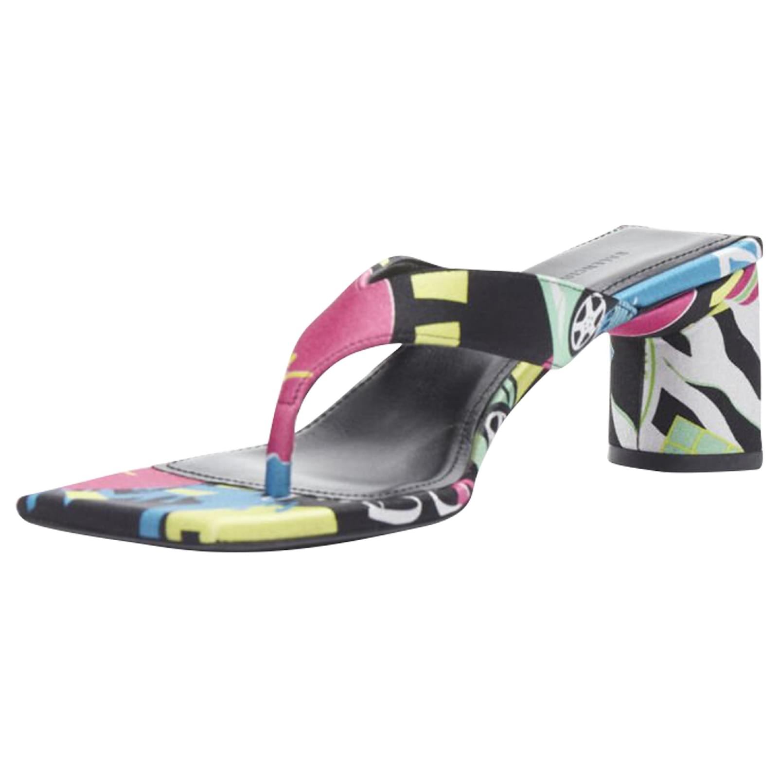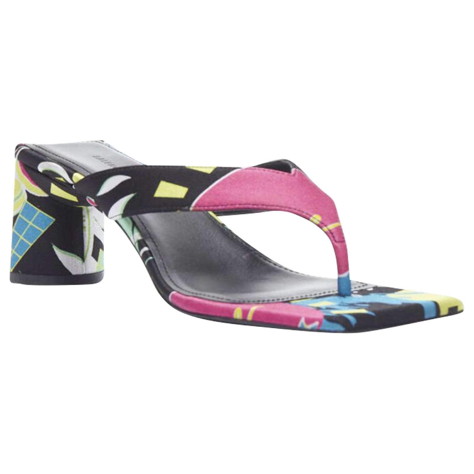 new BALENCIAGA 2020 floral satin square toe mid heel mule thong sandals EU35Reference: TGAS/B01328Brand: BalenciagaDesigner: DemnaModel: Floral thong muleMaterial: SilkColor: MulticolourPattern: FloralLining: LeatherExtra Details: Abstract floral satin. Thong sandals. Semi circle heel.Estimated Retail Price: USD 900Made in: ItalyCONDITION:Condition: New without tags. Comes with: Designer tags. One dust bag. Order will NOT be shipped with original box, but the original box is available if shipping cost is paid separately. Please contact us directly to get a shipping quote with box. SIZINGDesigner size: EU35Size reference: EU35 / US5 / UK2 / JP22.5MEASUREMENTS: Heel height: 7cm / 2.7"Measurments: