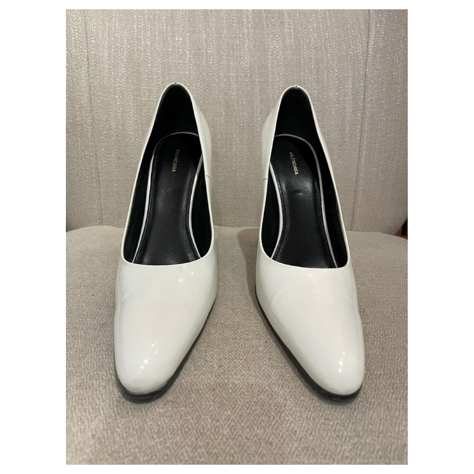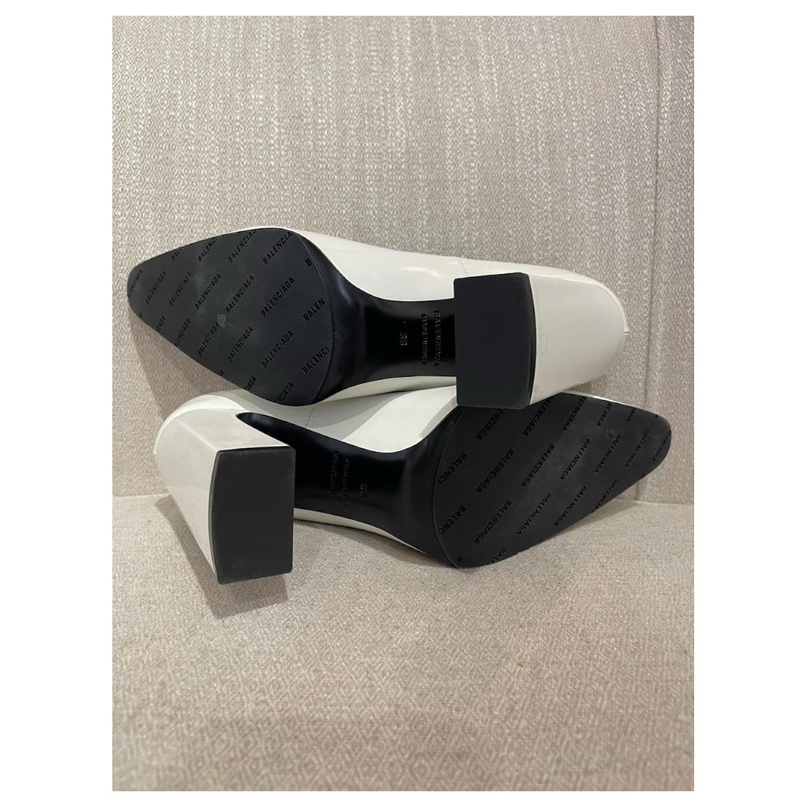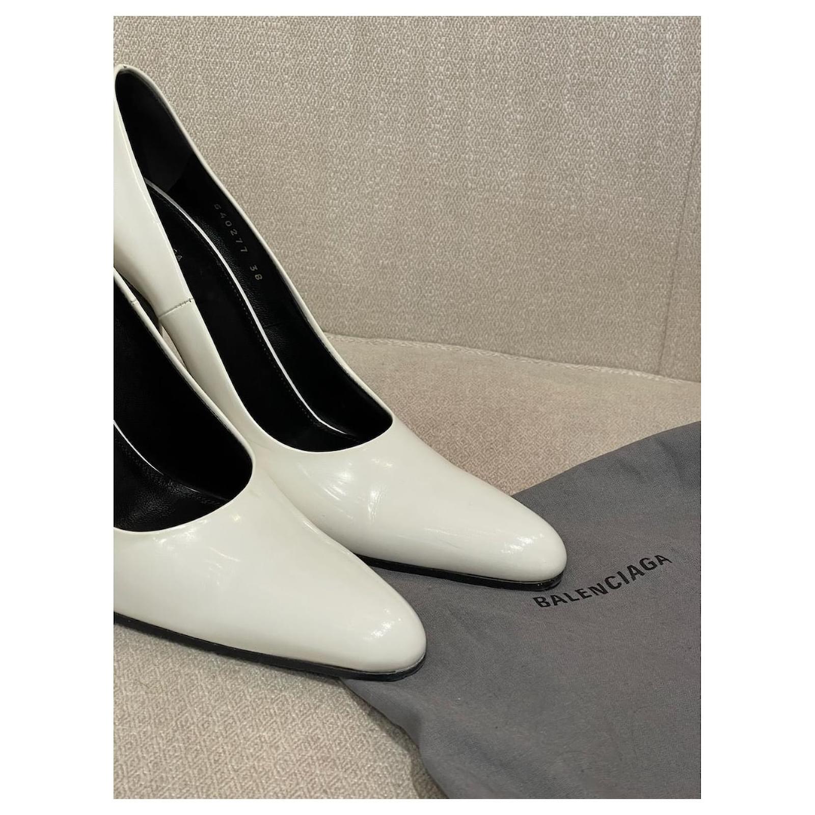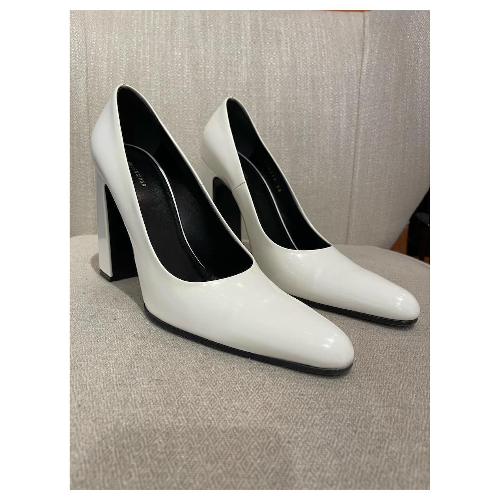 Balenciaga pumps, Size 38. Bank leather pumps with pointed toes and thick heels.Very good condition, please note small marks (see photos).Heel height: 11 cm