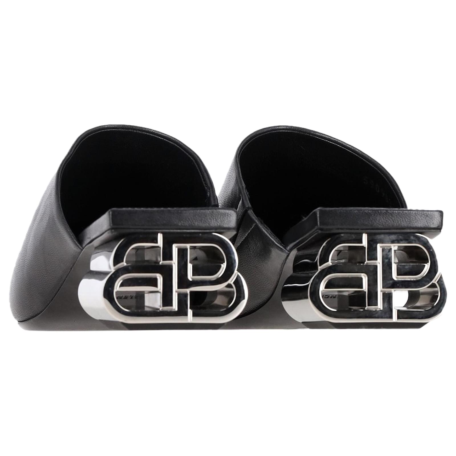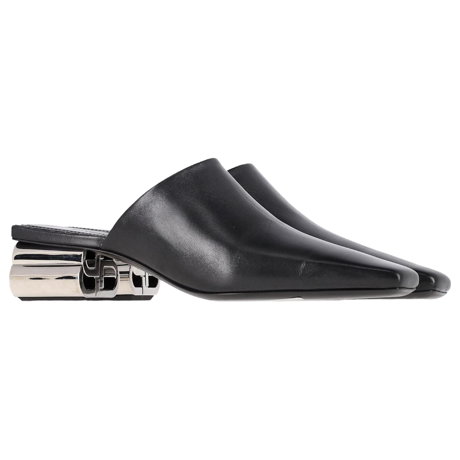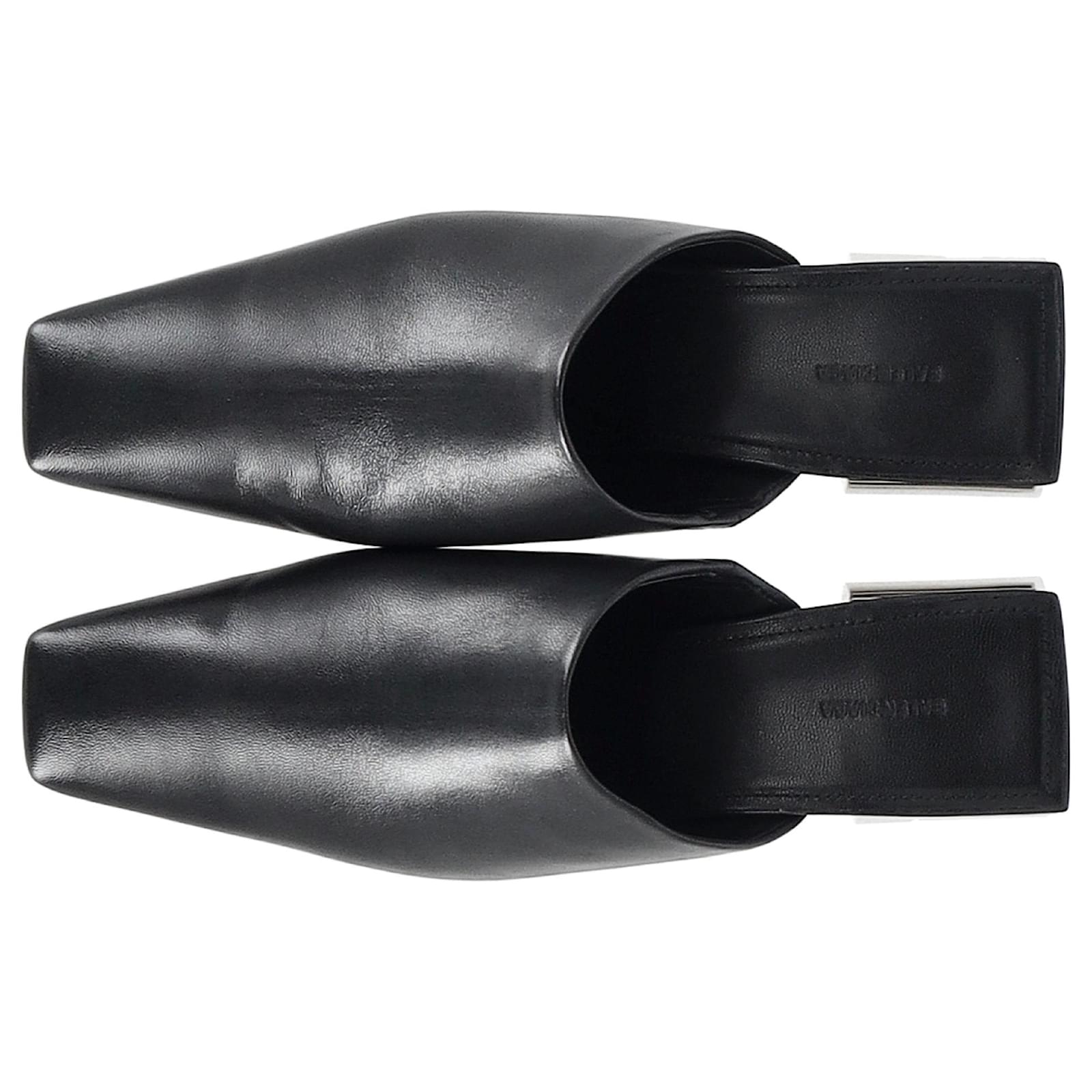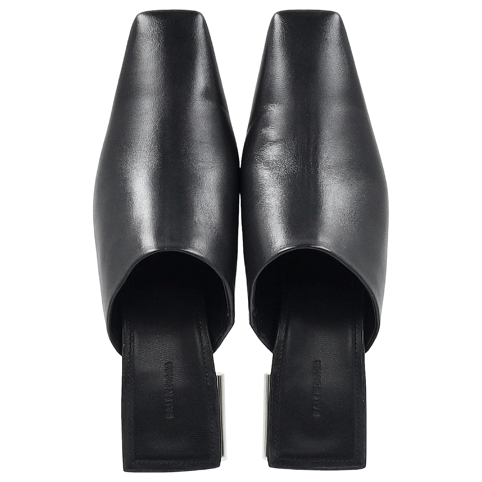 Balenciaga Typo Chrome Heel Mules in Black Leather
