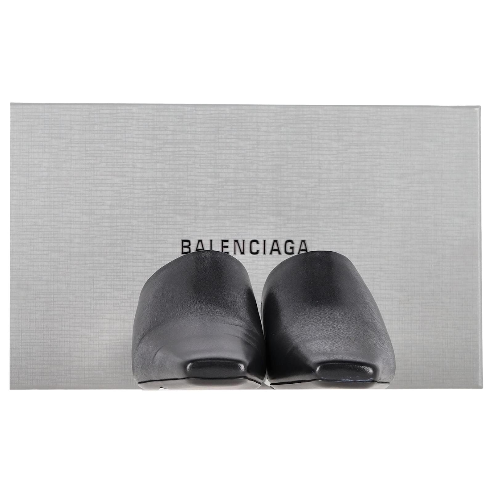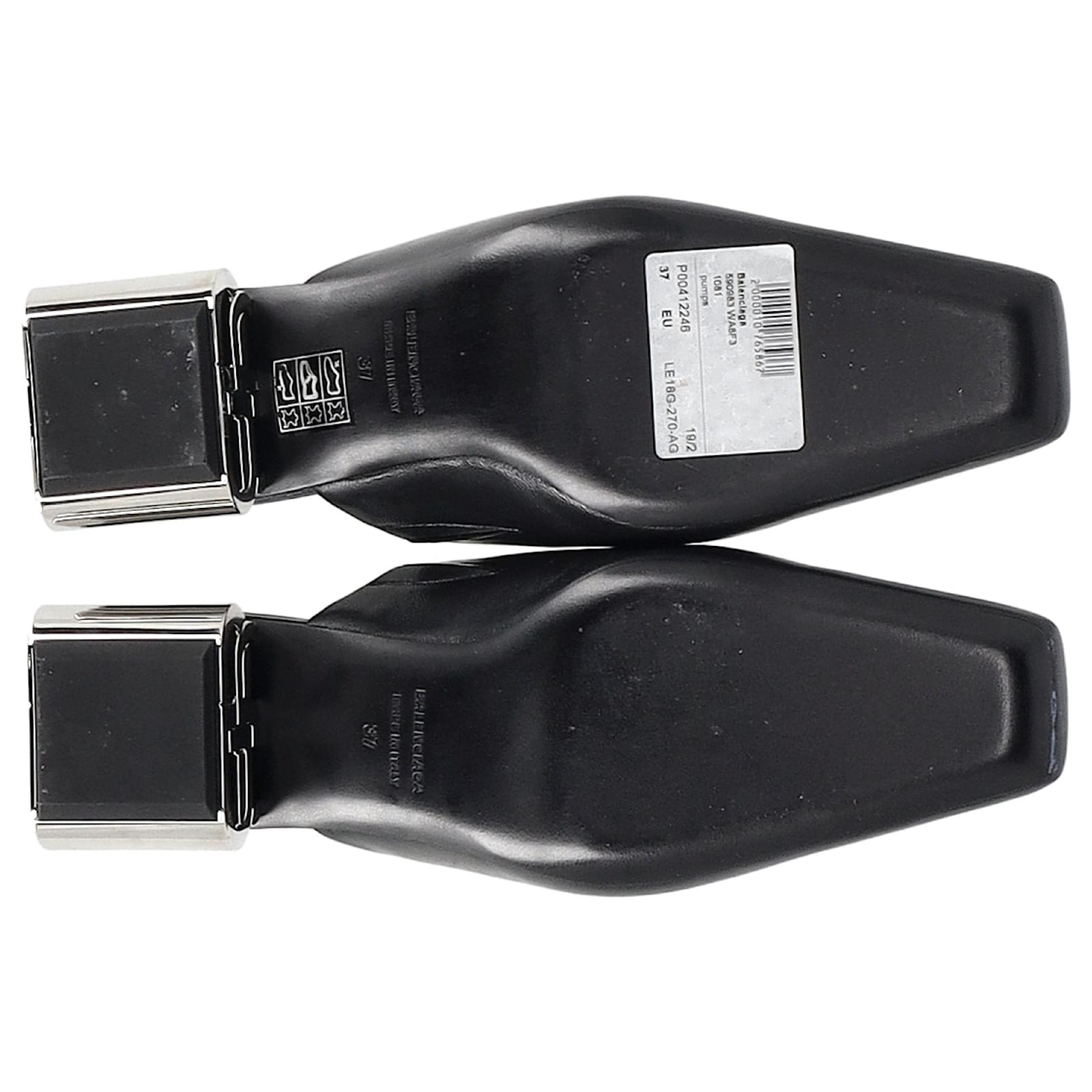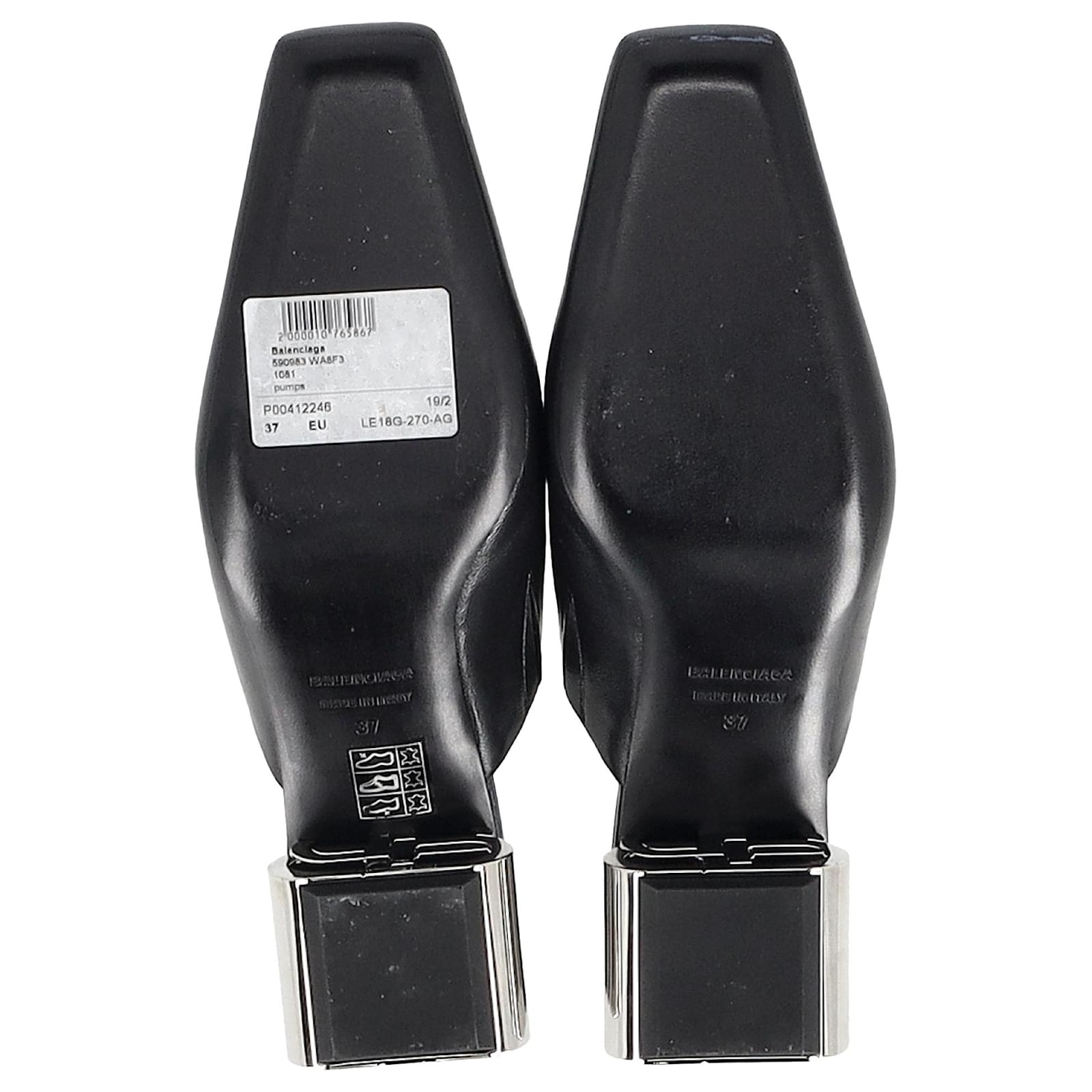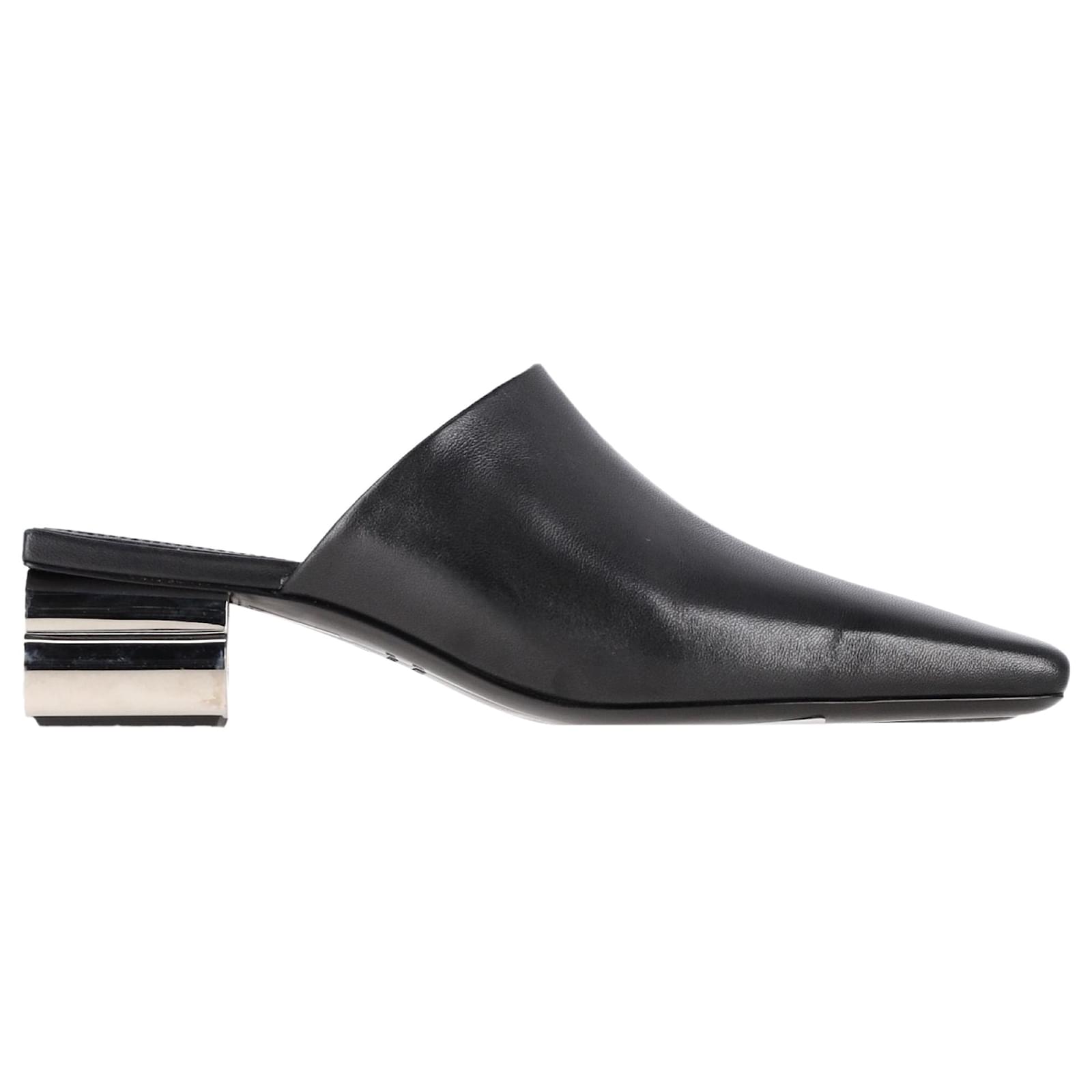Balenciaga Typo Chrome Heel Mules in Black Leather