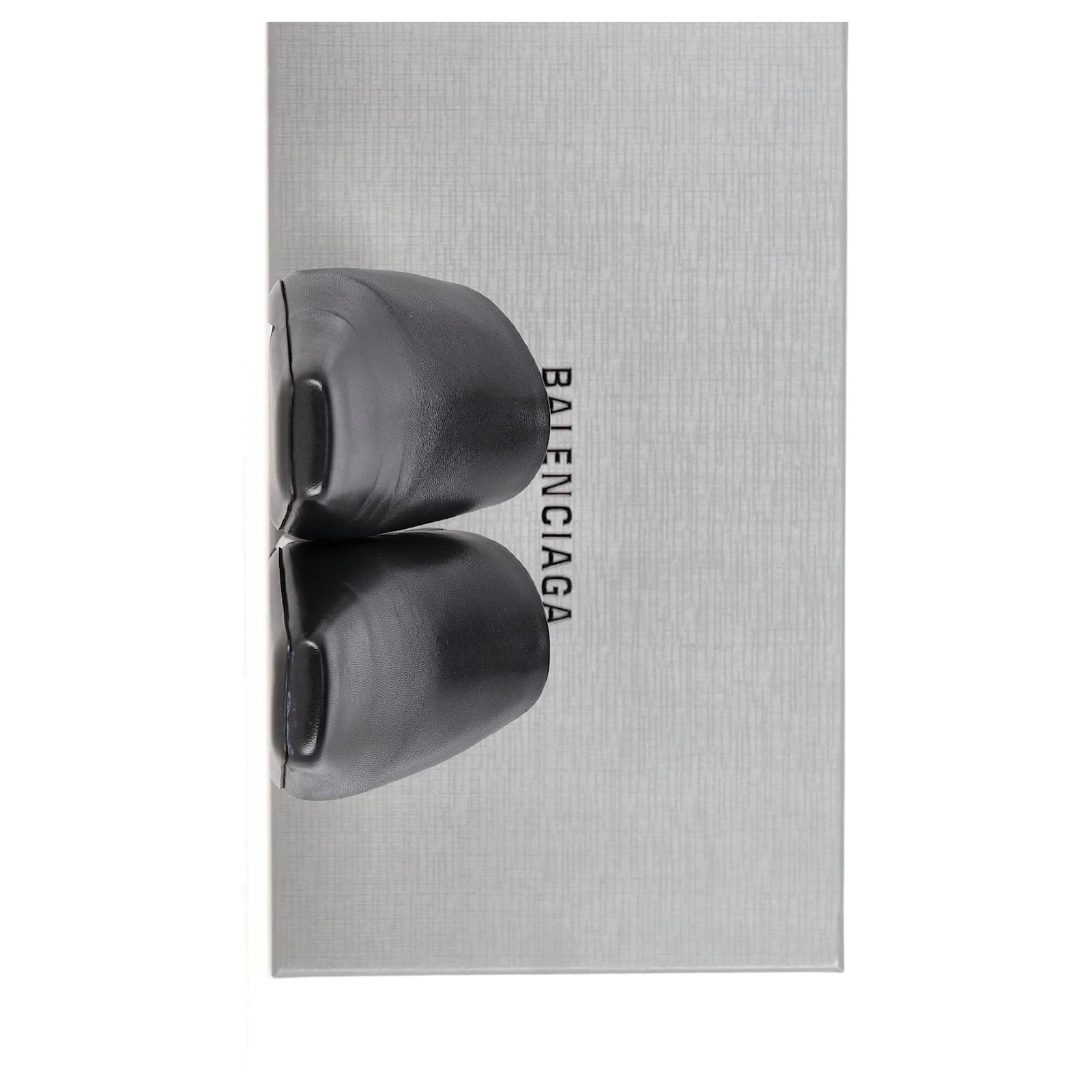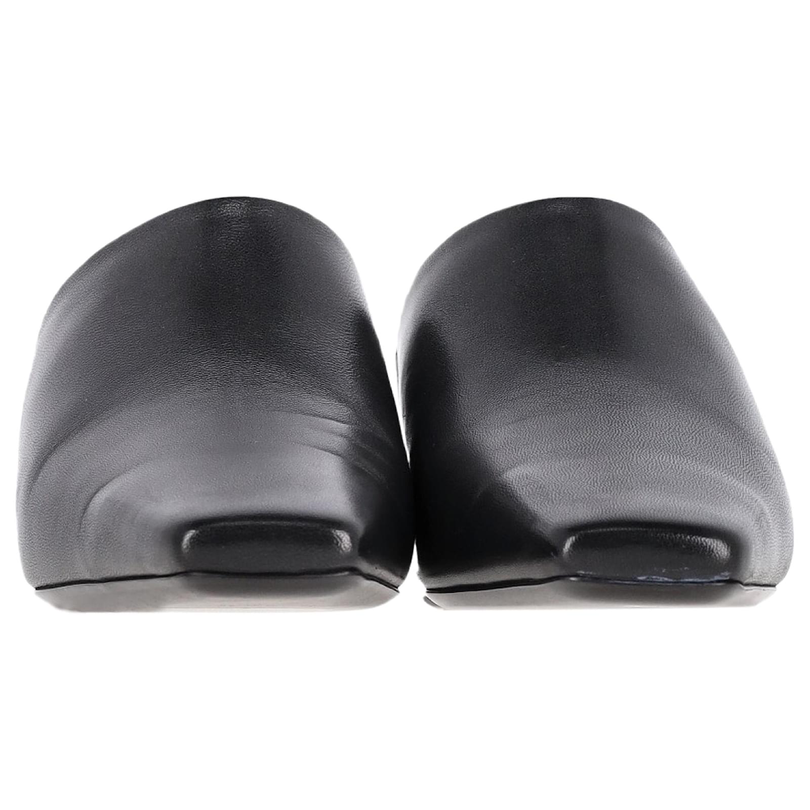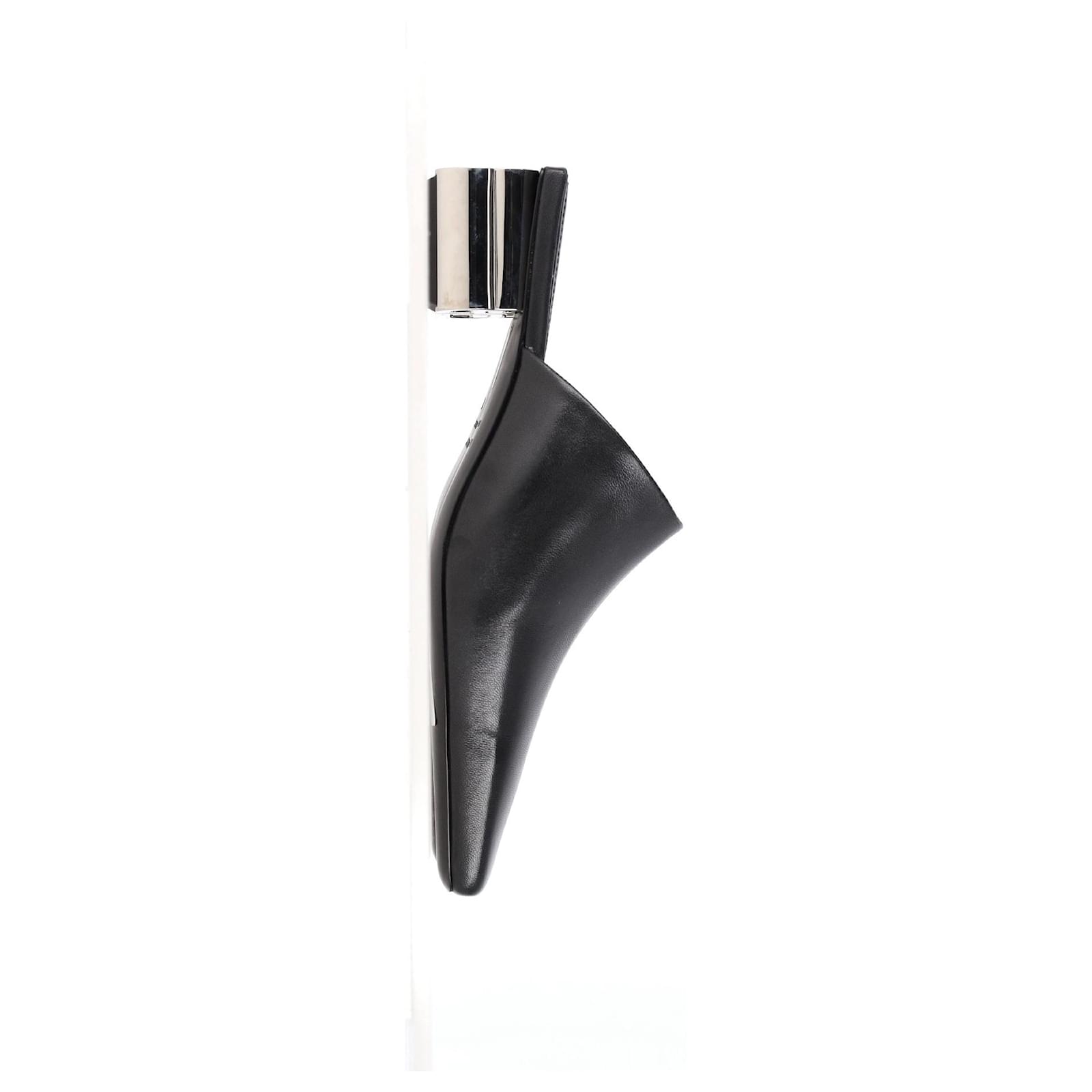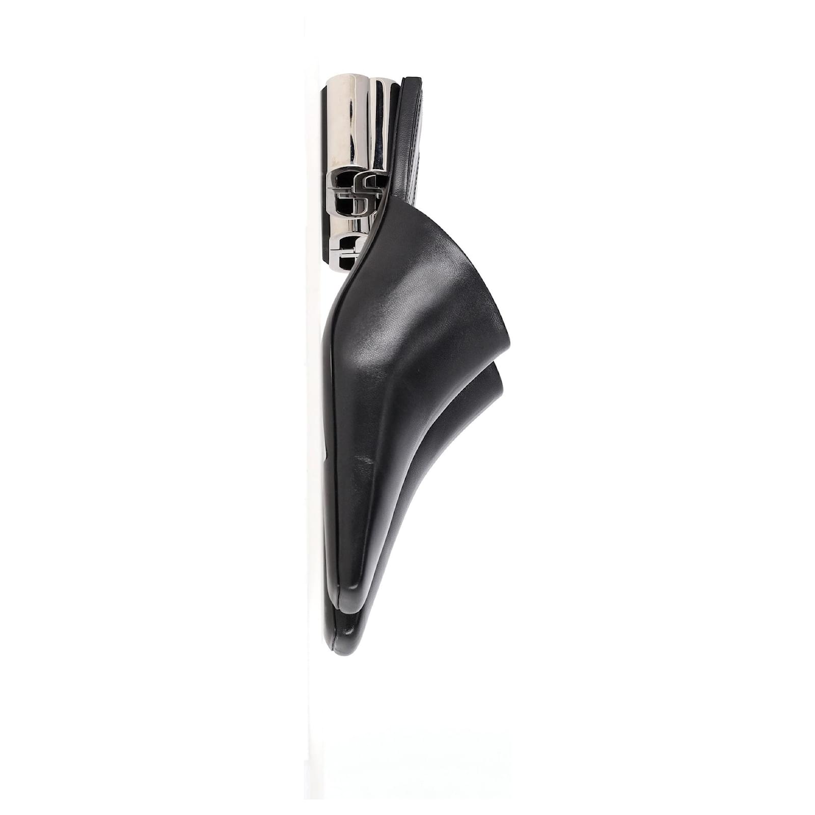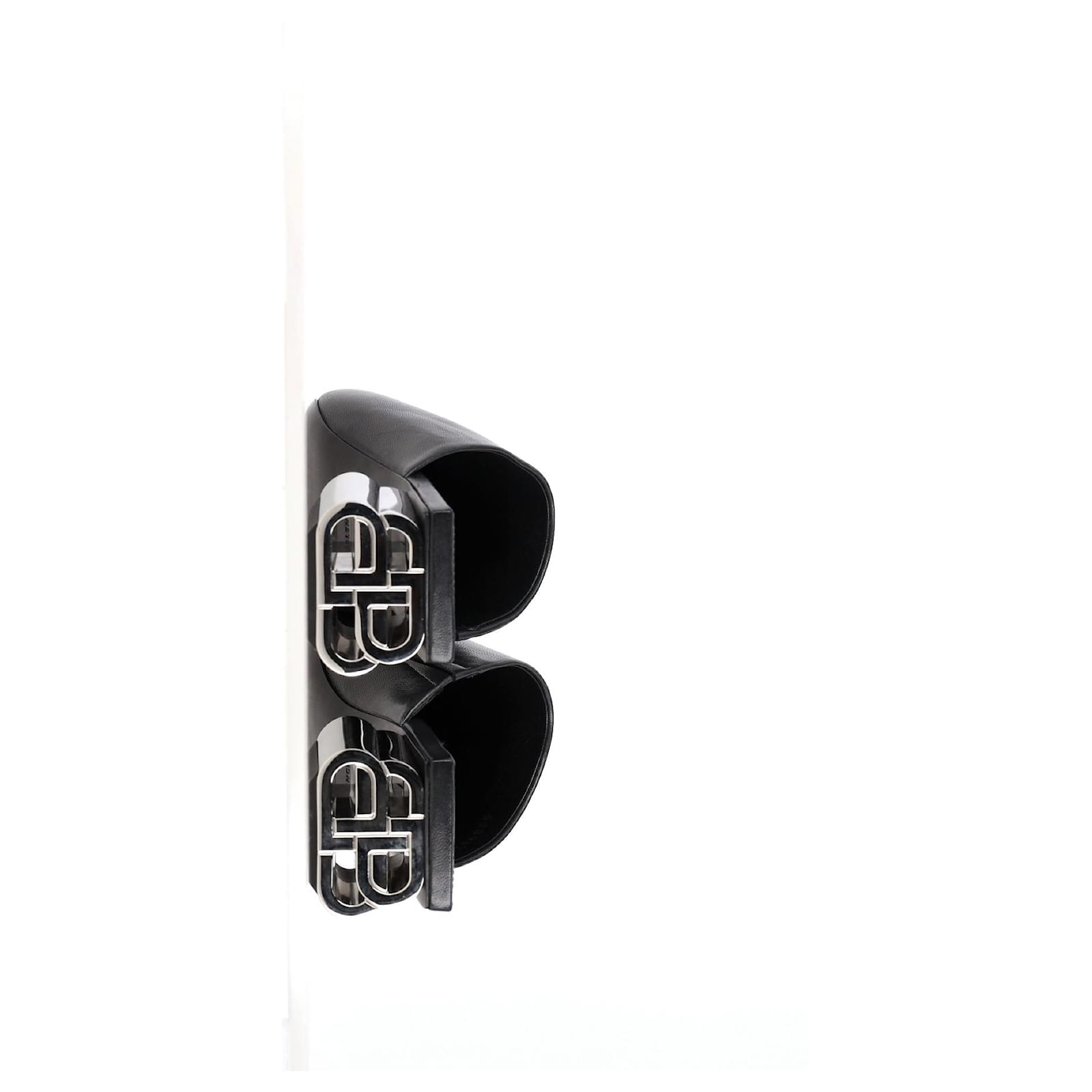 Make a powerful statement with the Balenciaga Typo Chrome Heel Mules in Black Leather. The sleek black leather design and square toe offer an understated elegance, while the chrome BB logo heel introduces an element of bold sophistication. These mules are a perfect choice for those who want to combine luxury with standout design in one effortlessly stylish shoe.