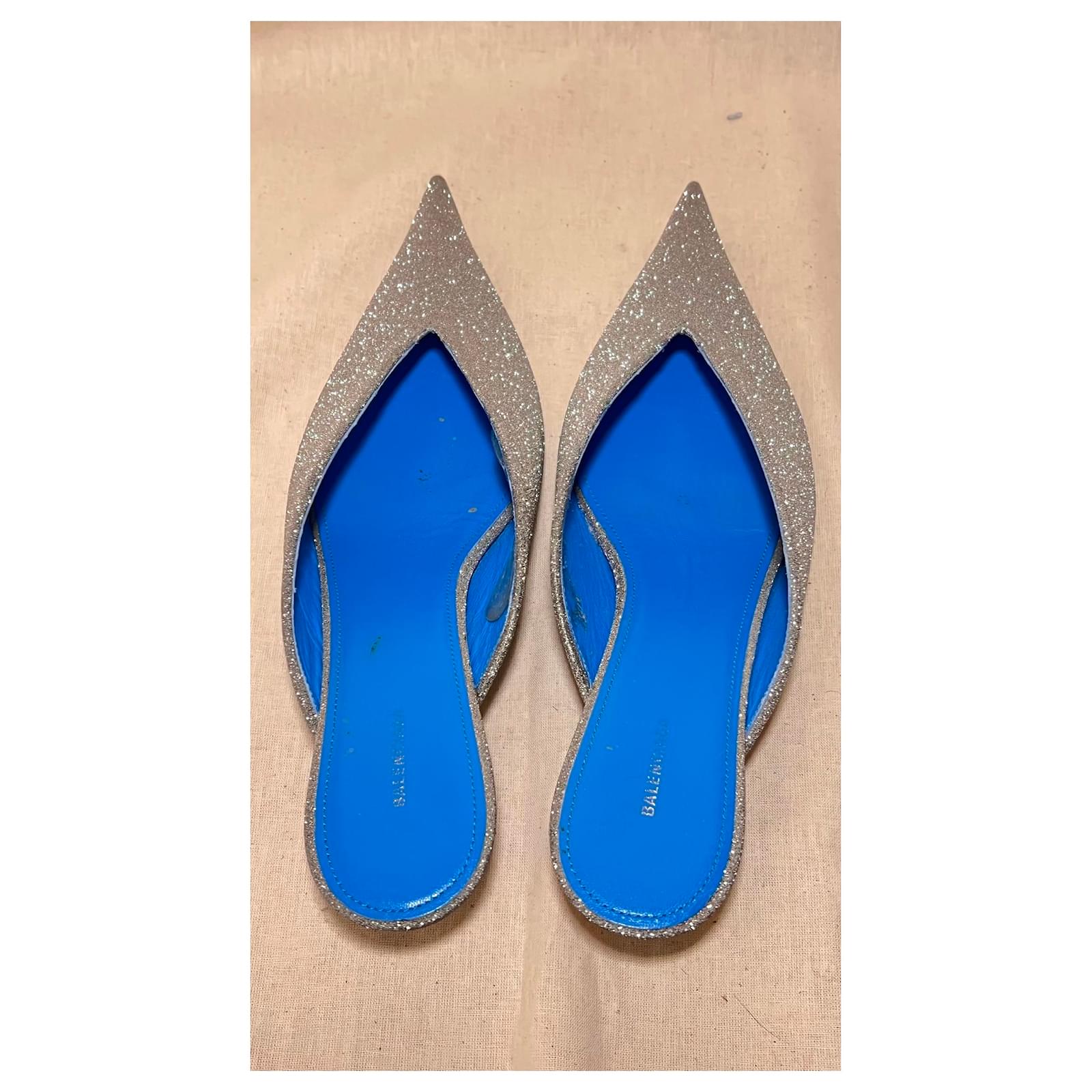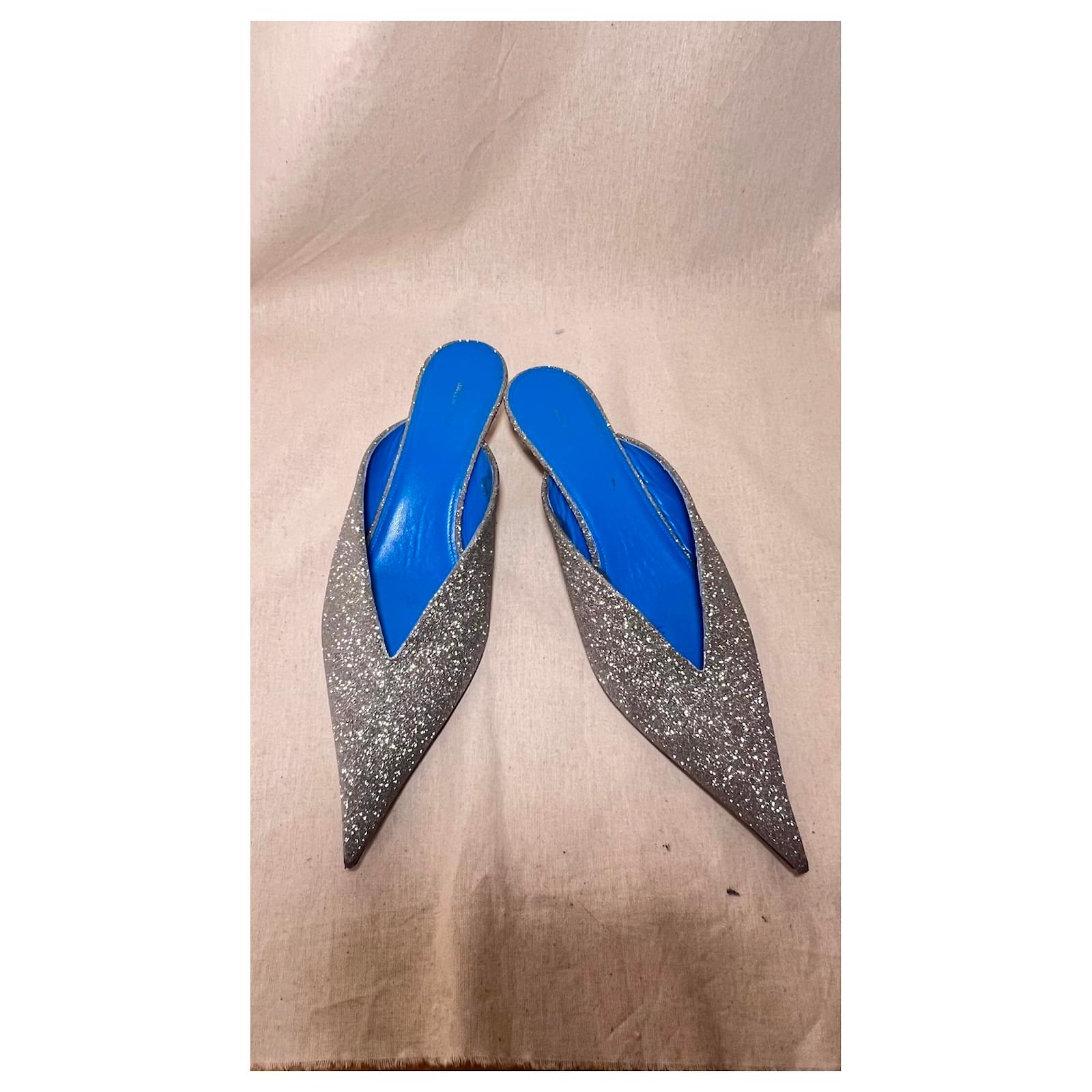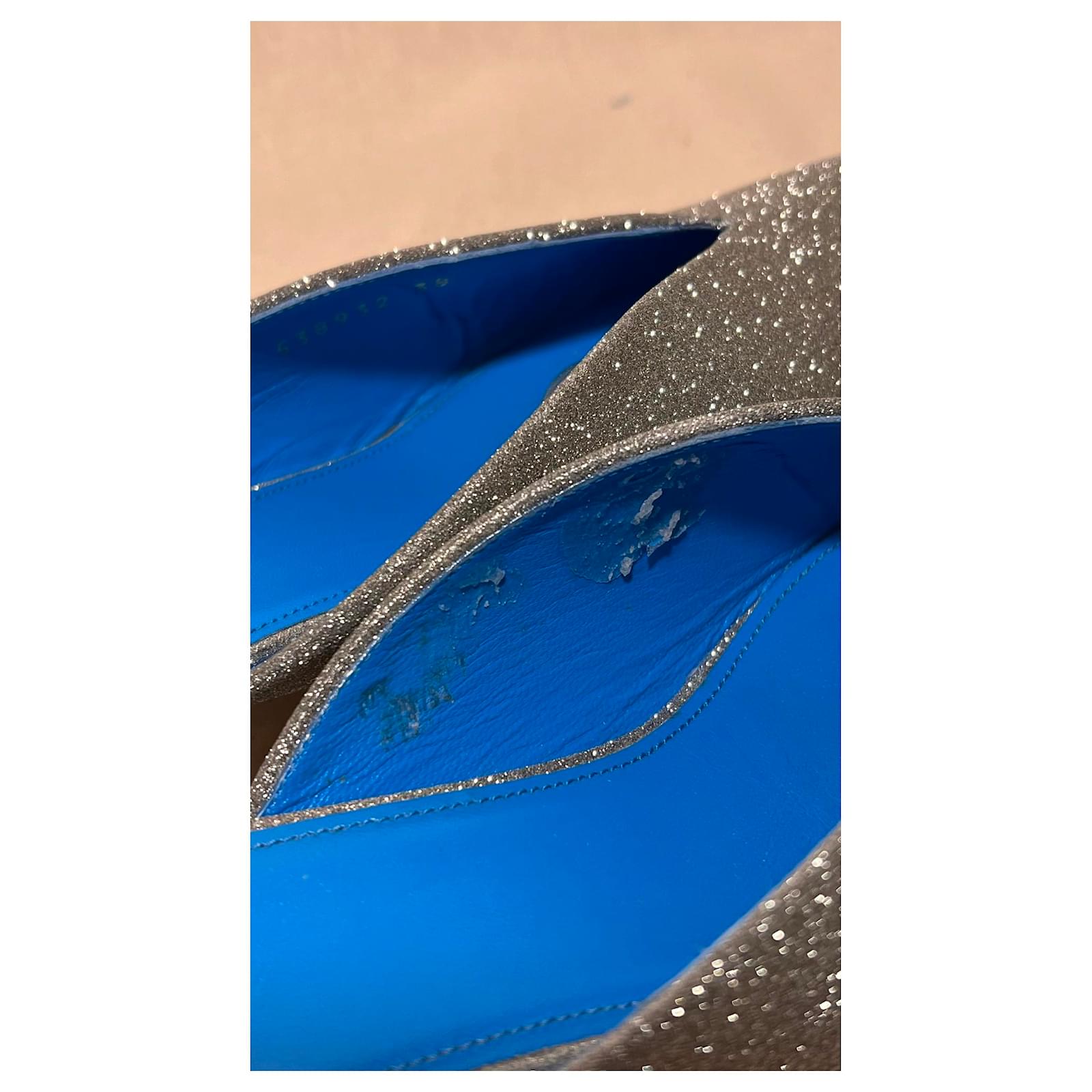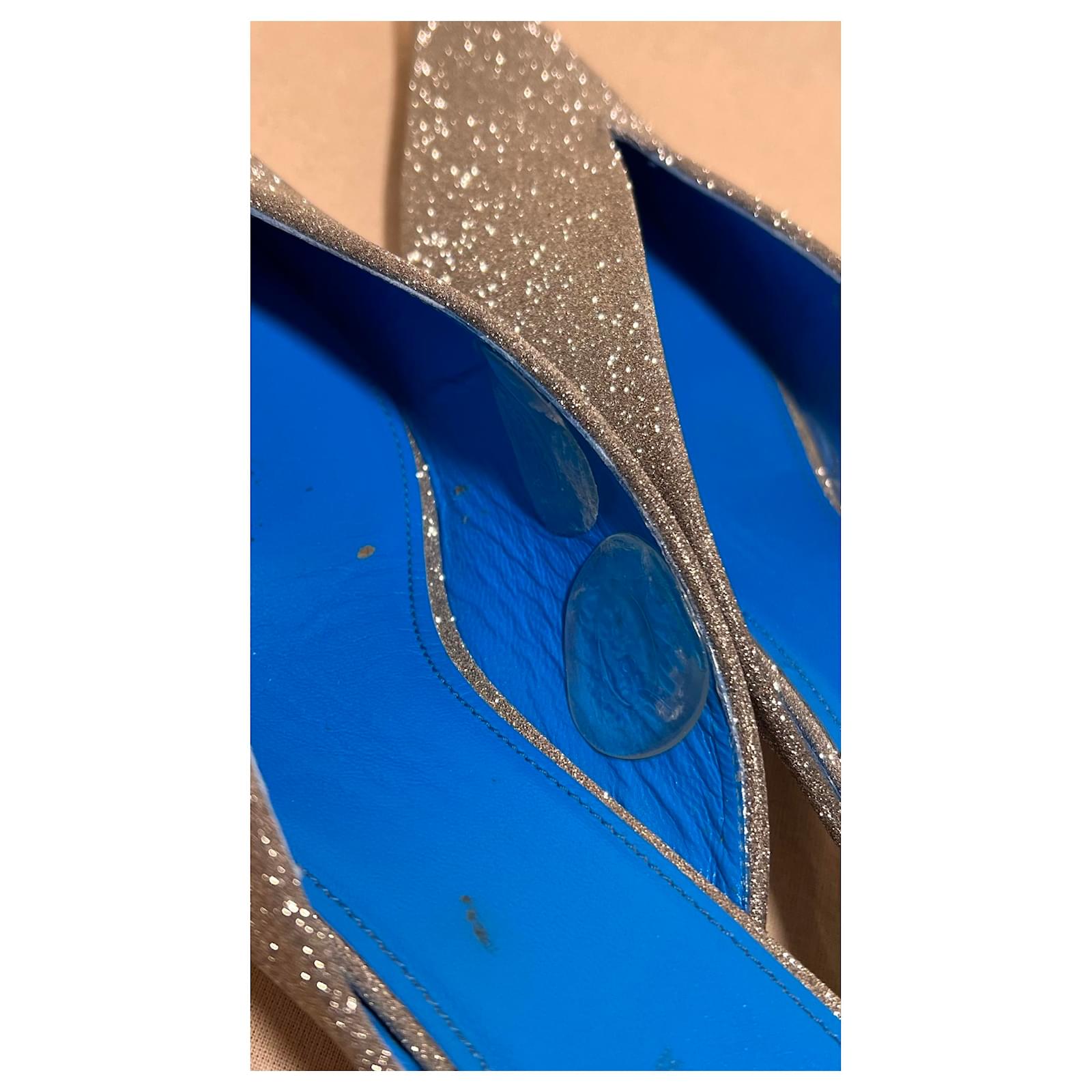 Heels 3cm Blue leather interior with Glittery exterior Slightly scuffed on the inside of the blue leather. overall good condition