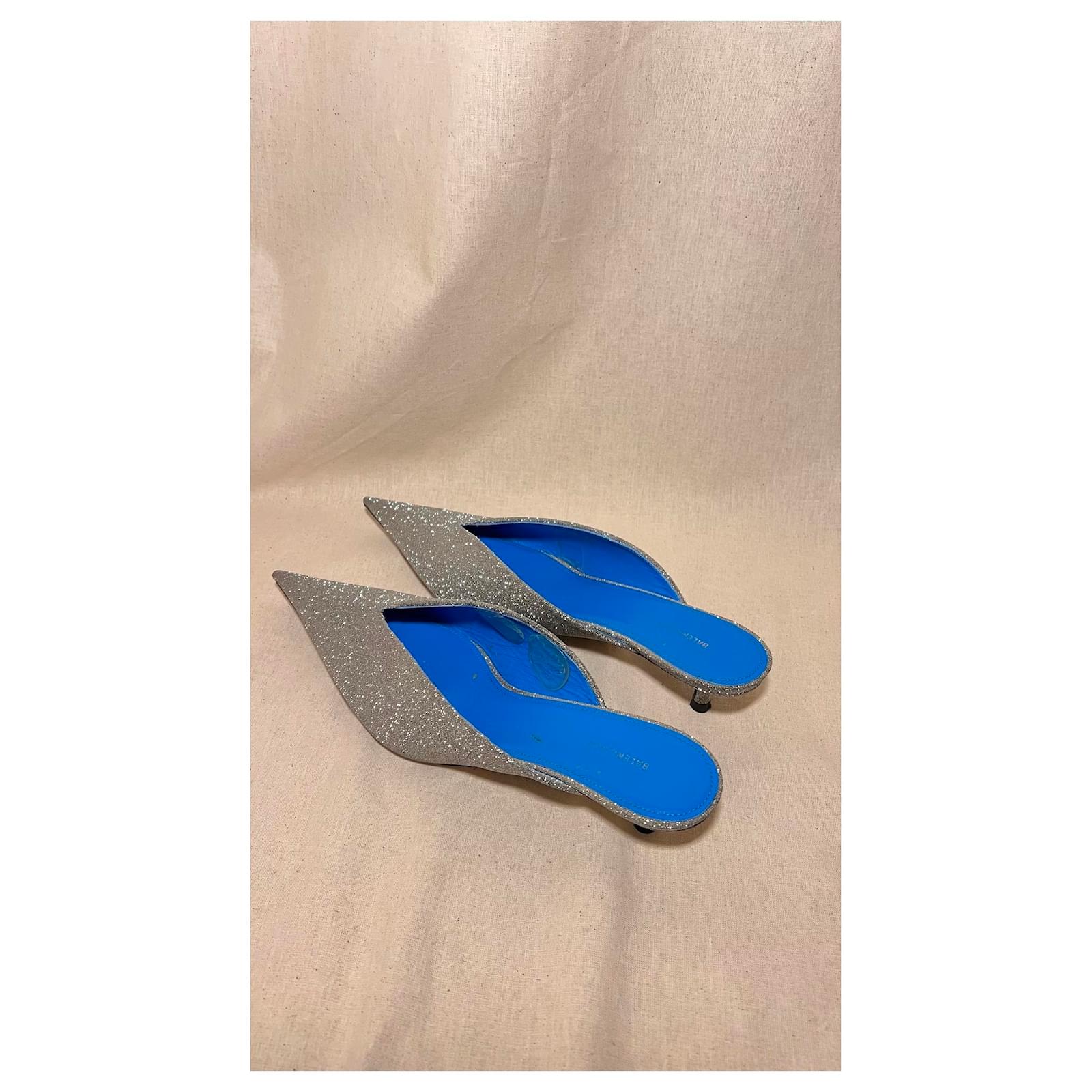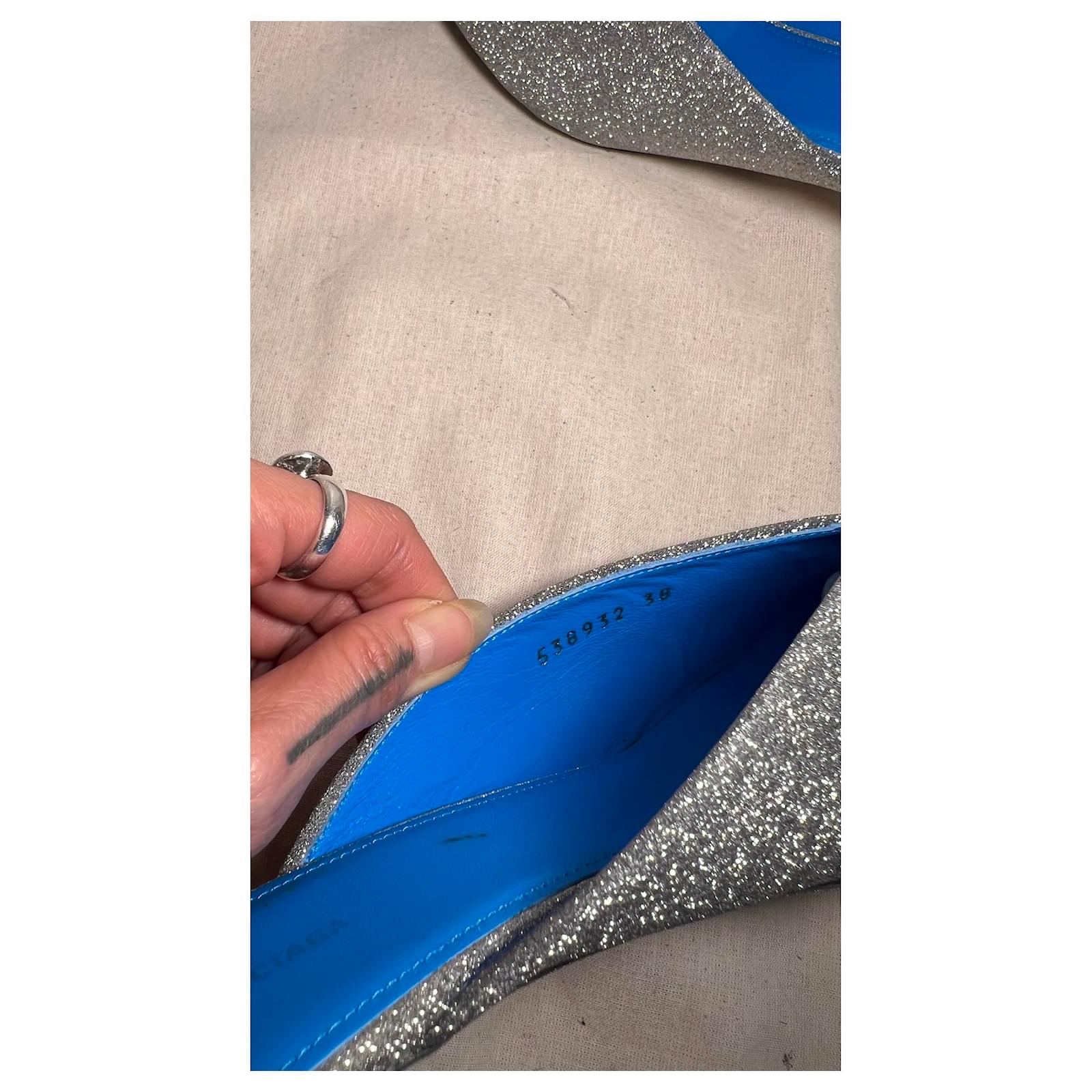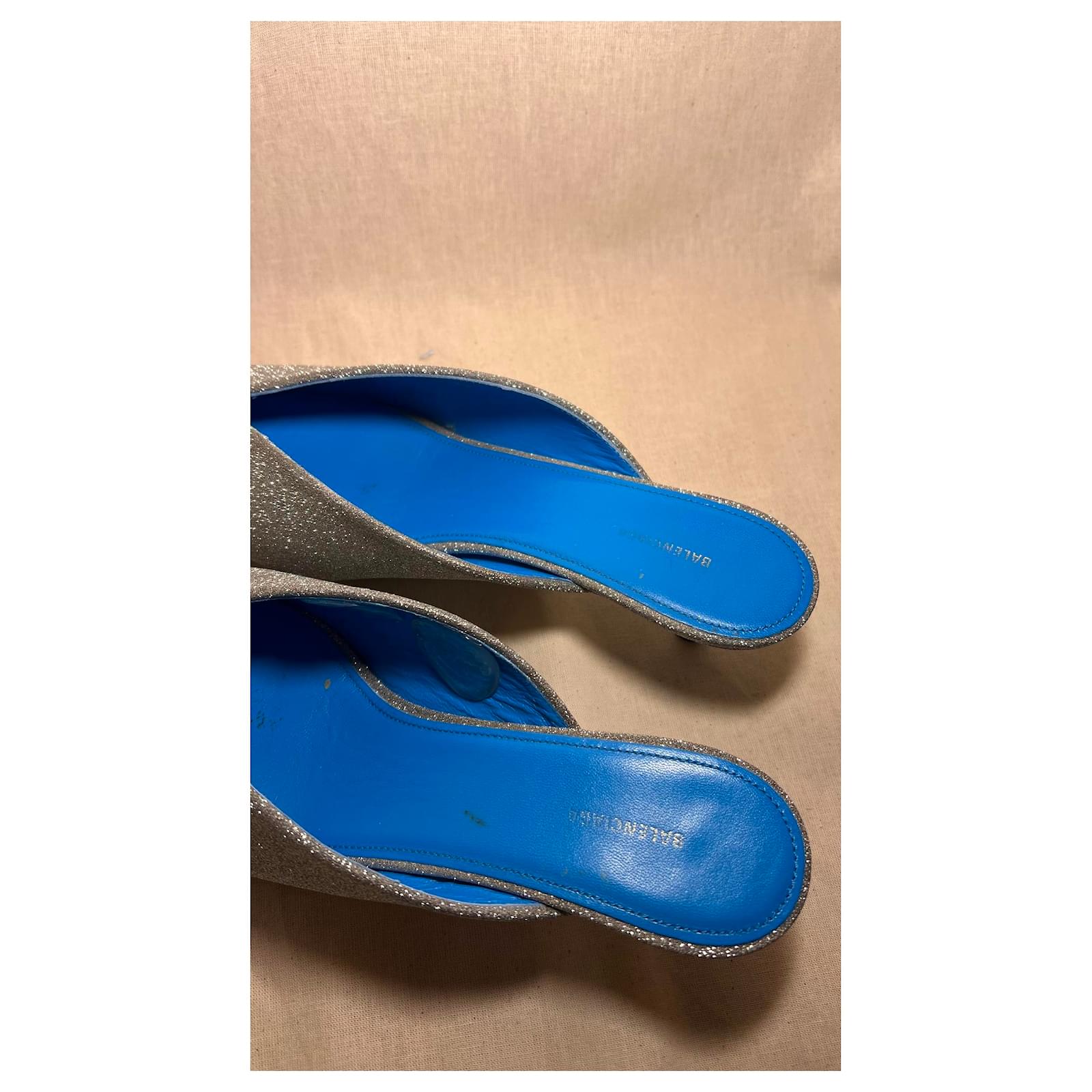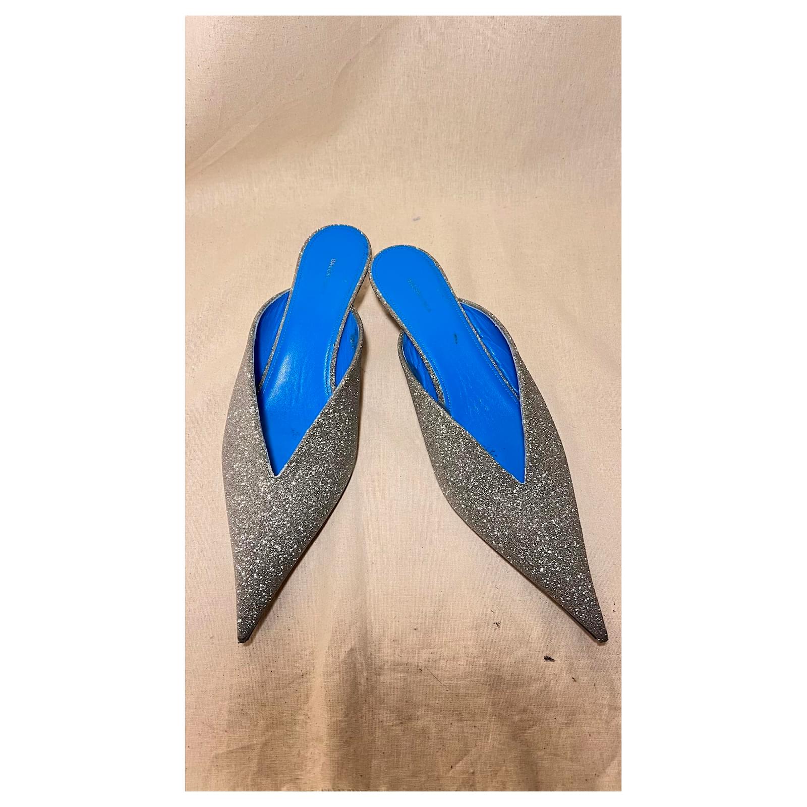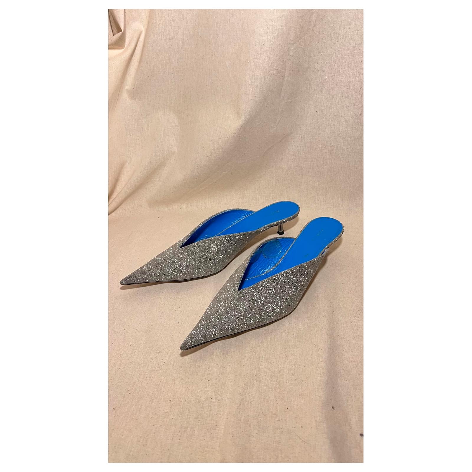 Heels 3cm Blue leather interior with Glittery exterior Slightly scuffed on the inside of the blue leather. overall good condition
