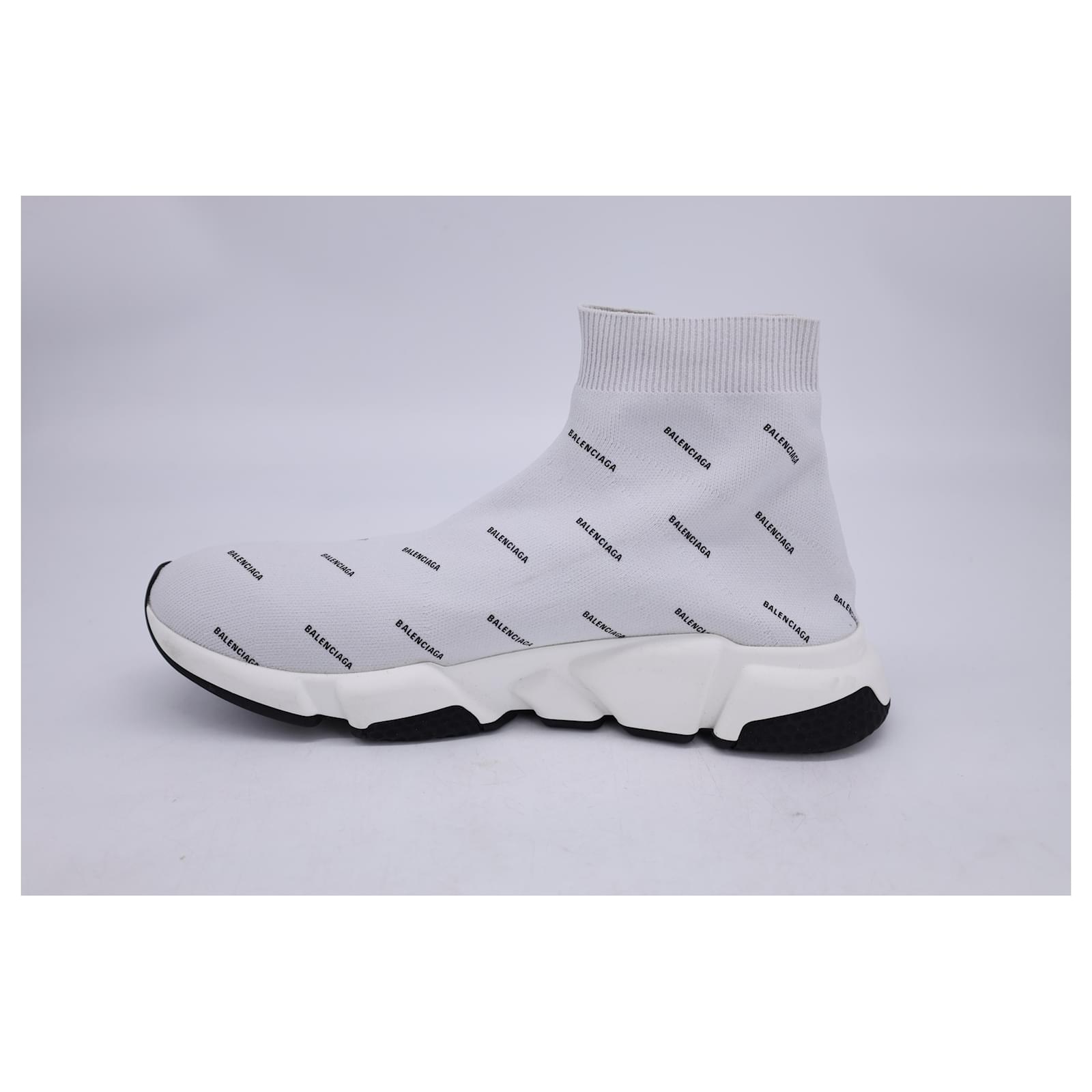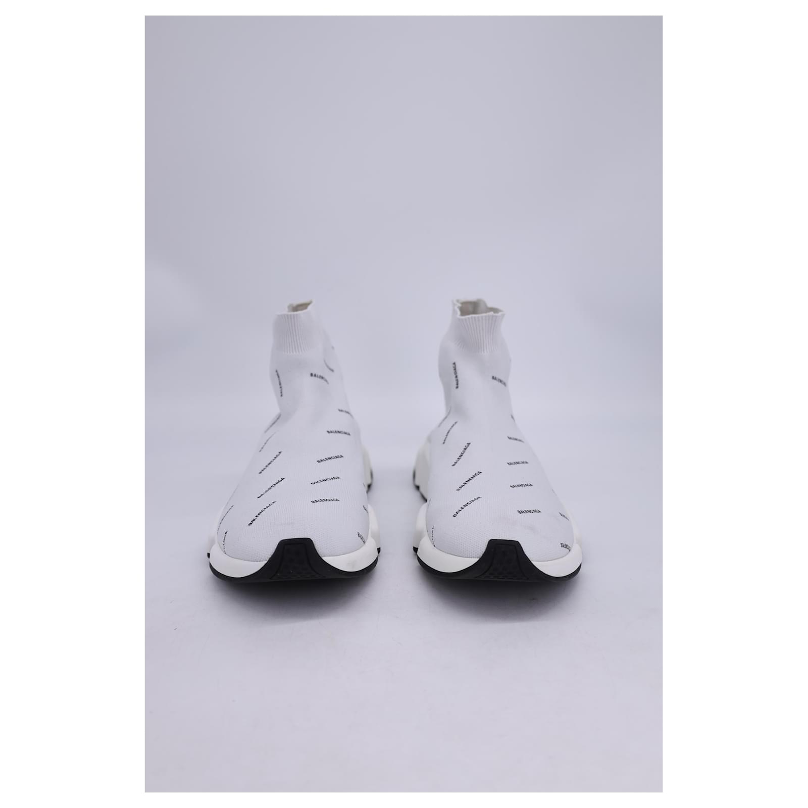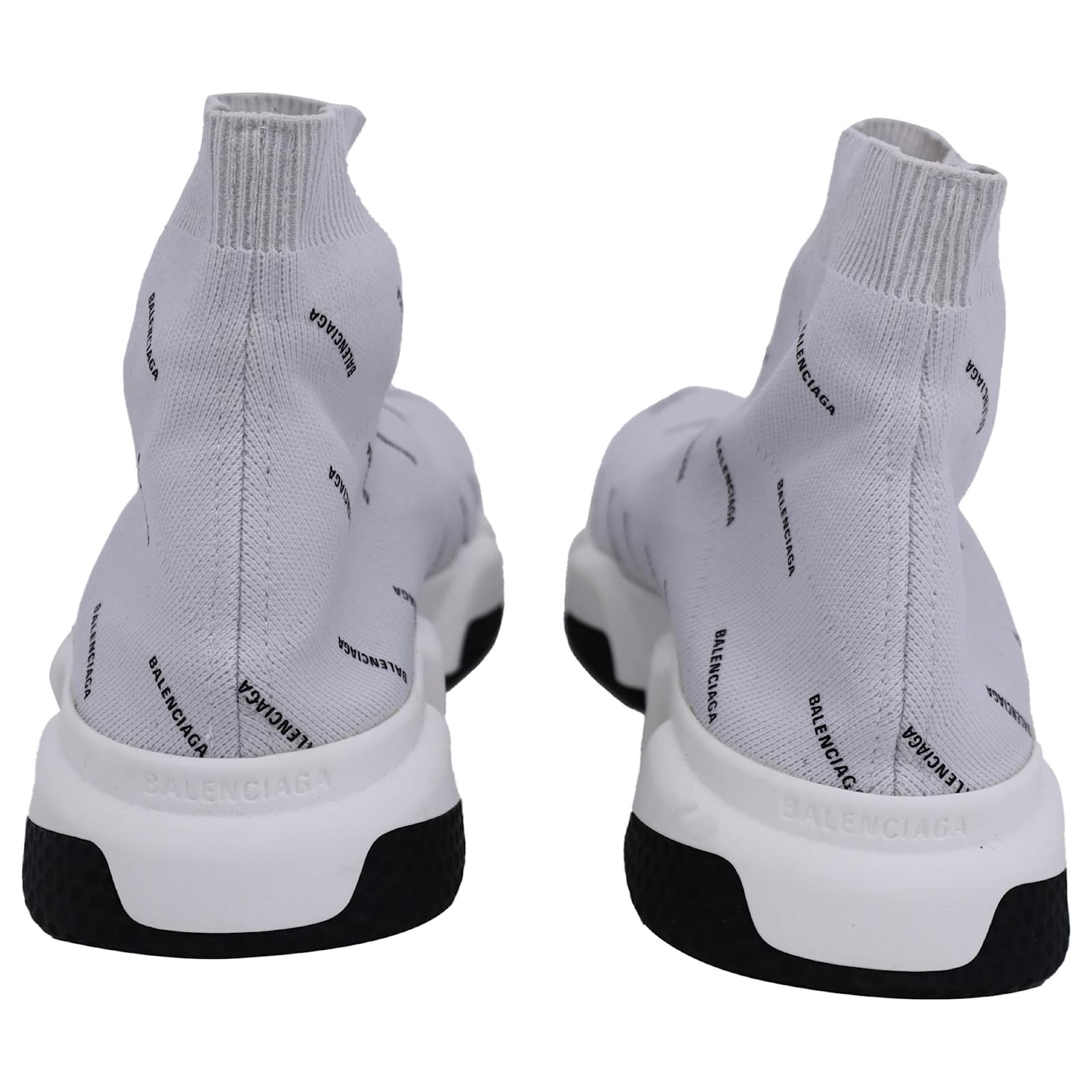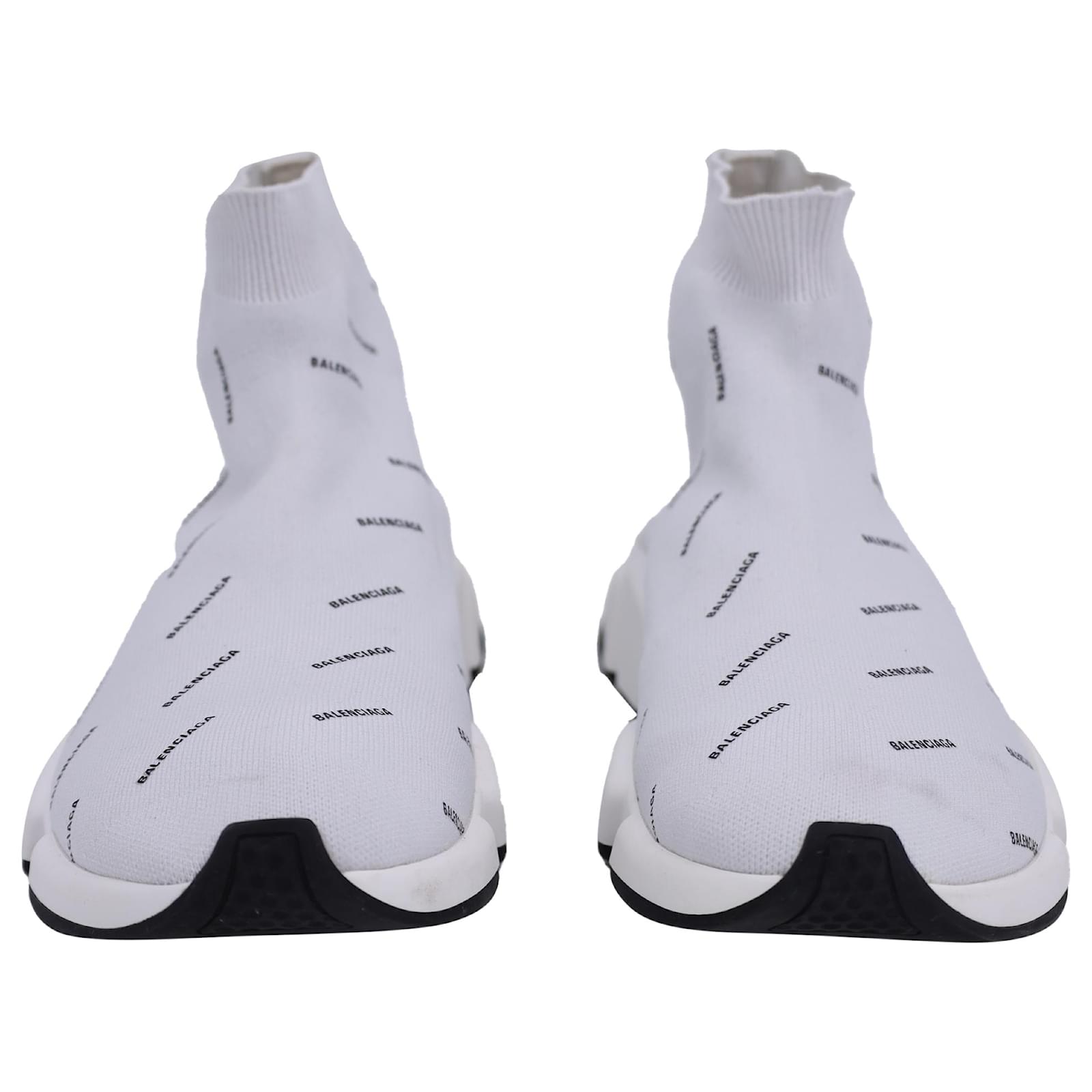 Balenciaga Speed All Over Logo Knitted High-Top Sneakers in White Polyester