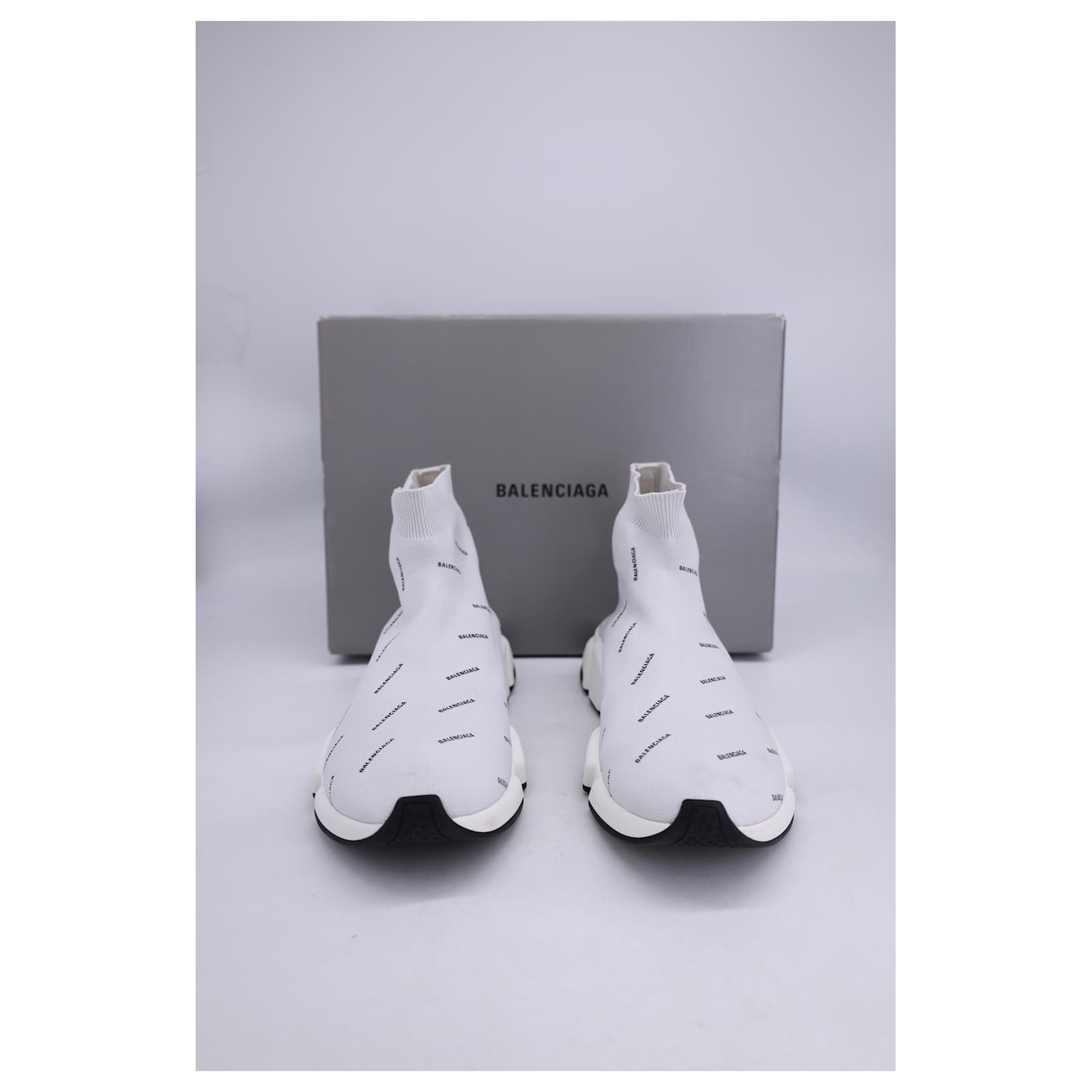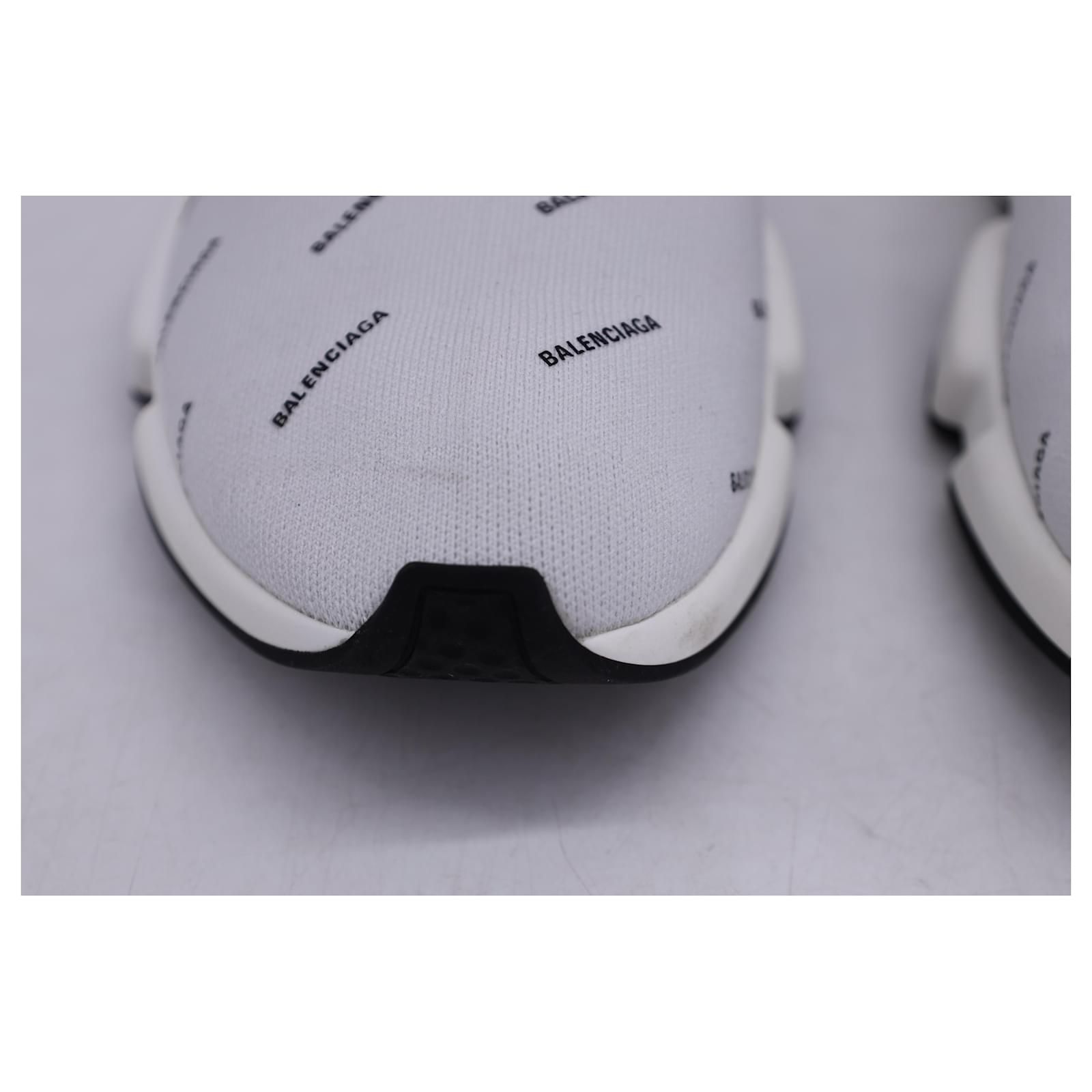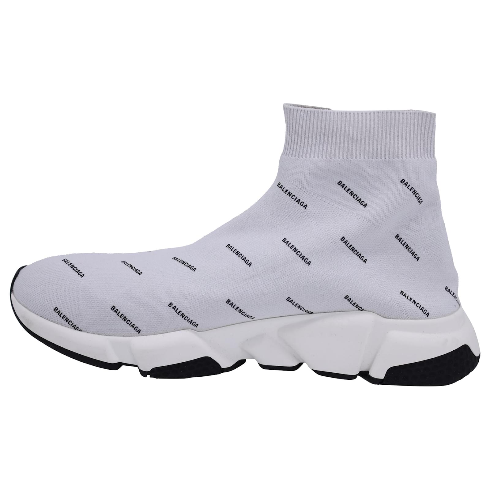 Balenciaga Speed All Over Logo Knitted High-Top Sneakers in White Polyester